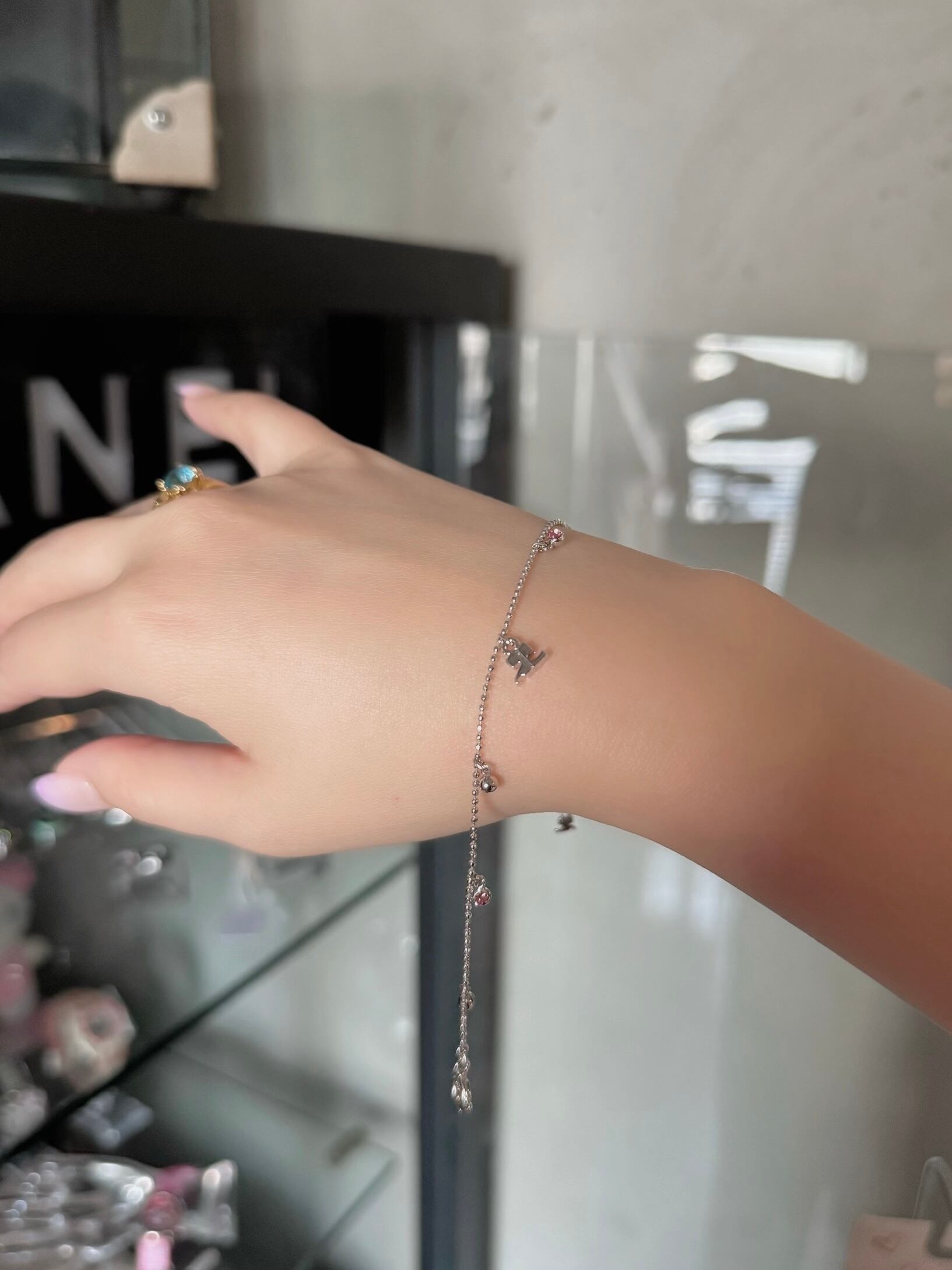 Courrèges pink rhinestone logo bracelet