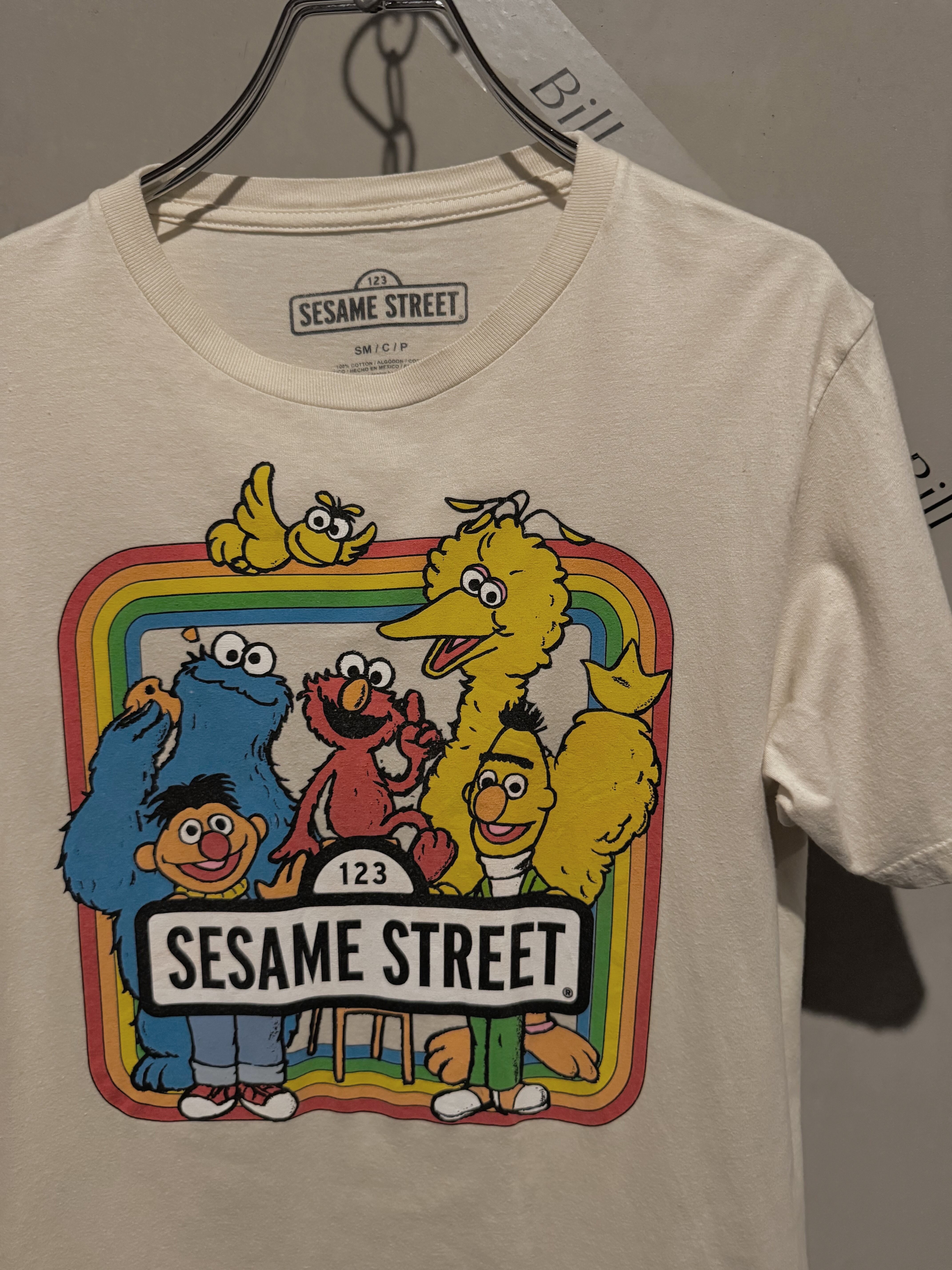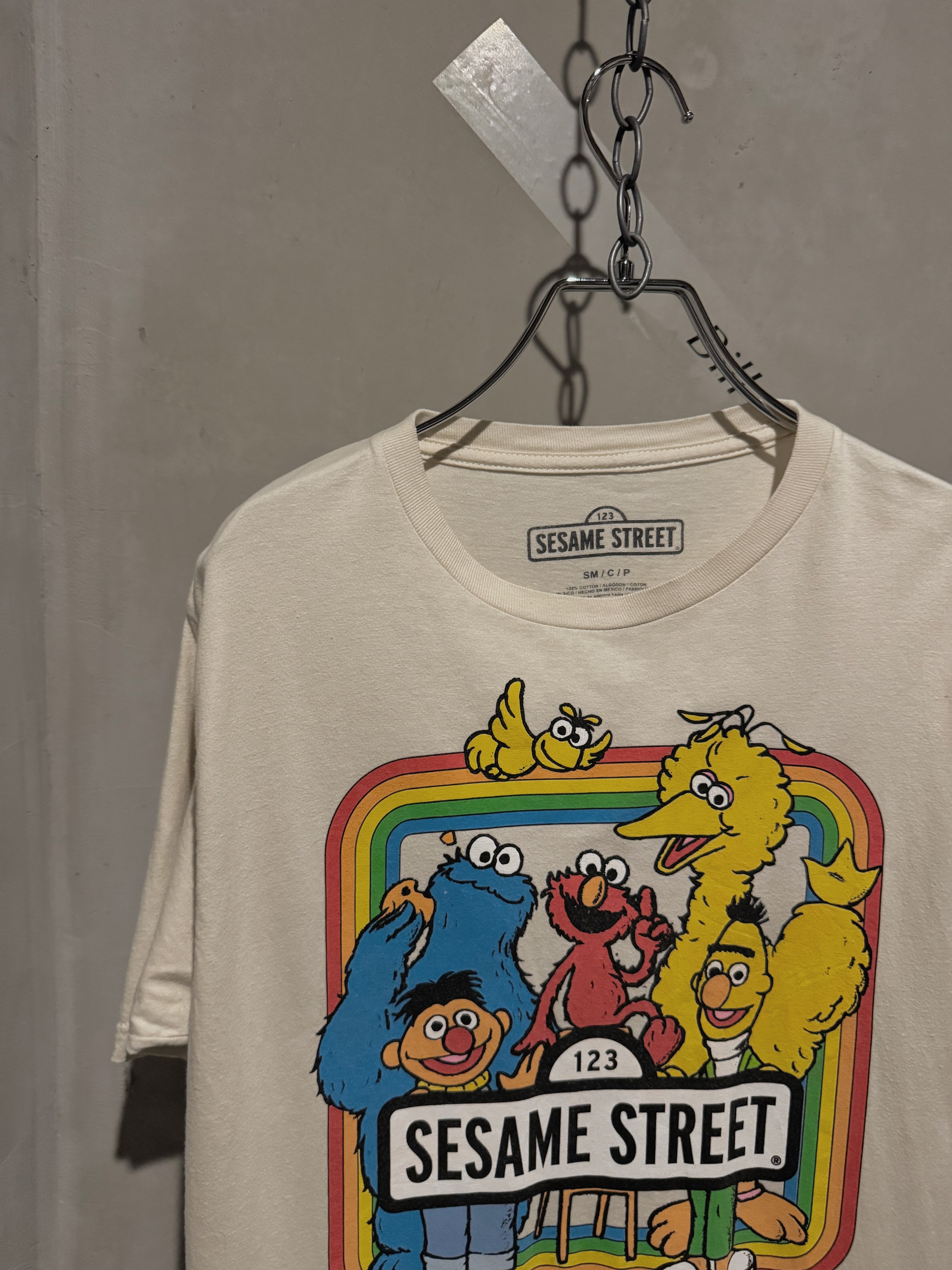 薄いクリームベージュのお色味のsesame streetの可愛いTシャツです♪バックプリントも◎