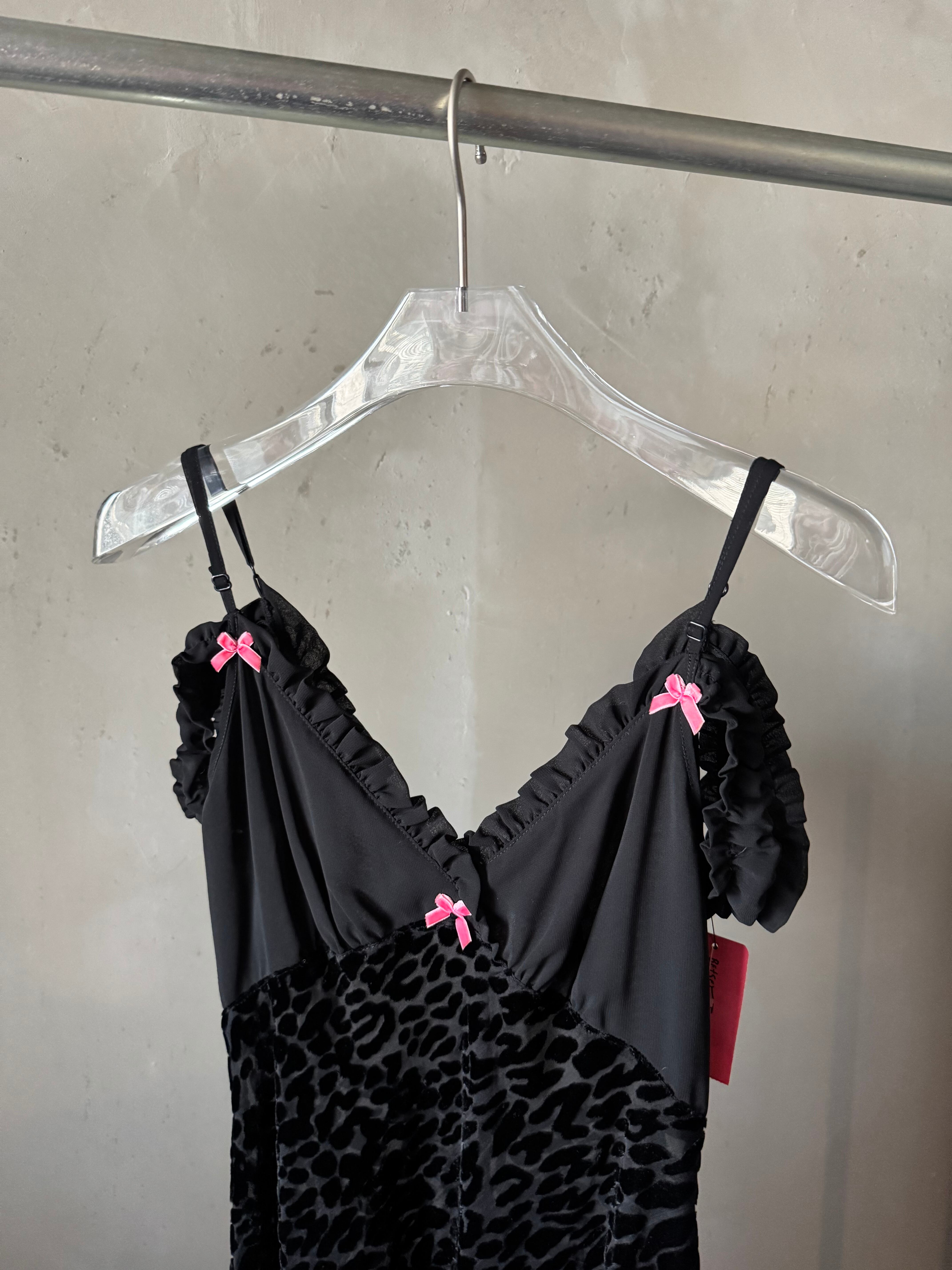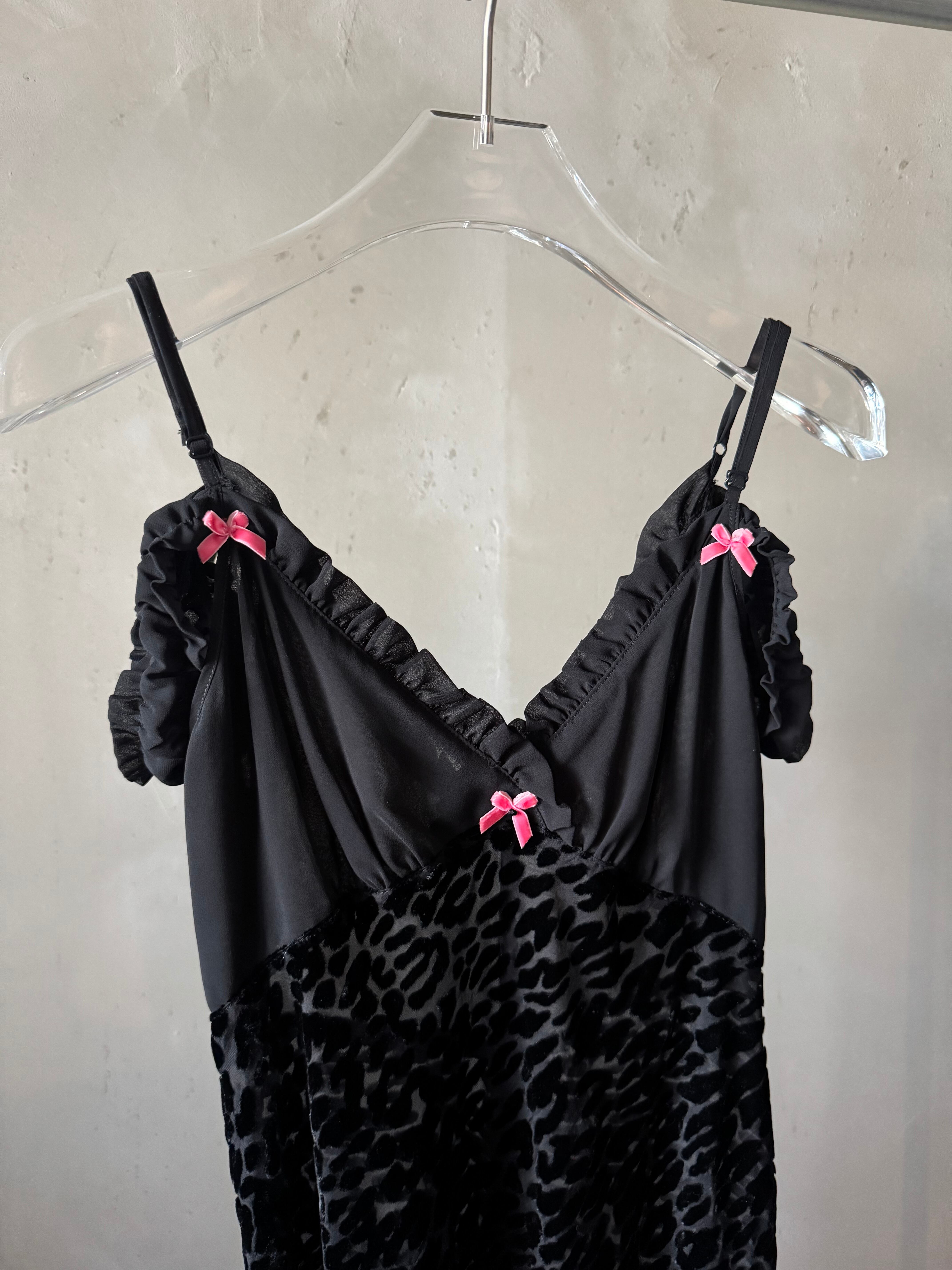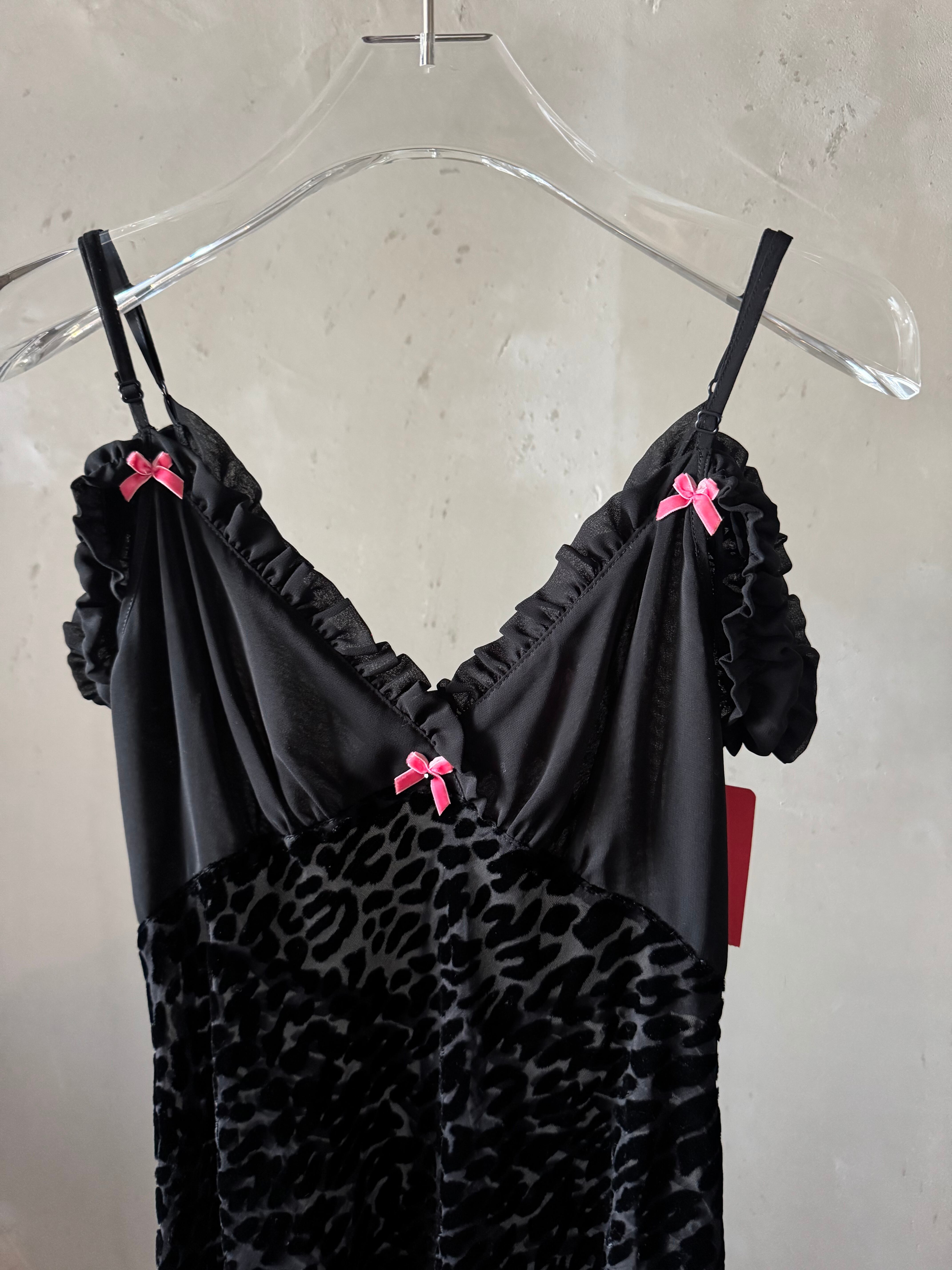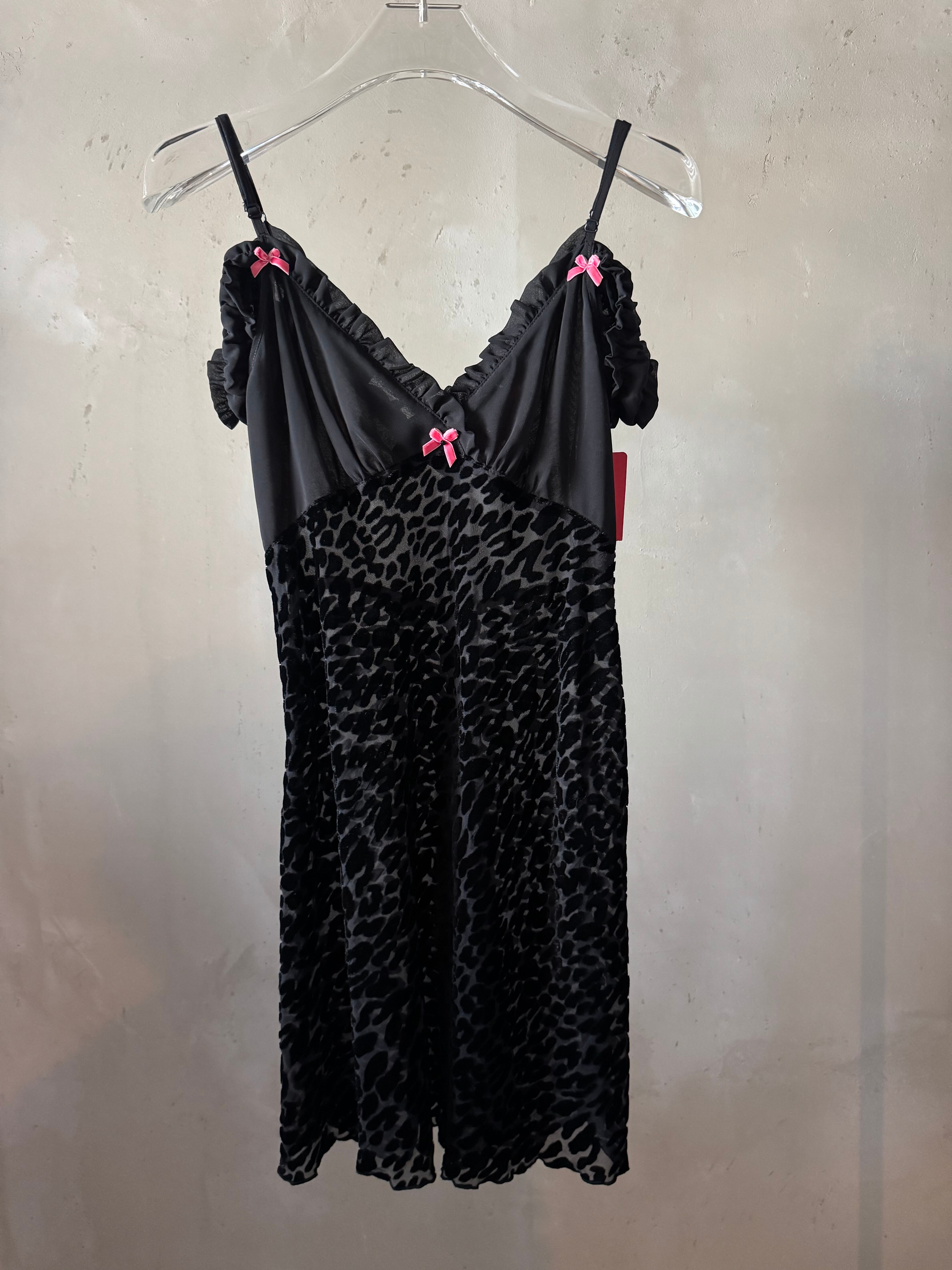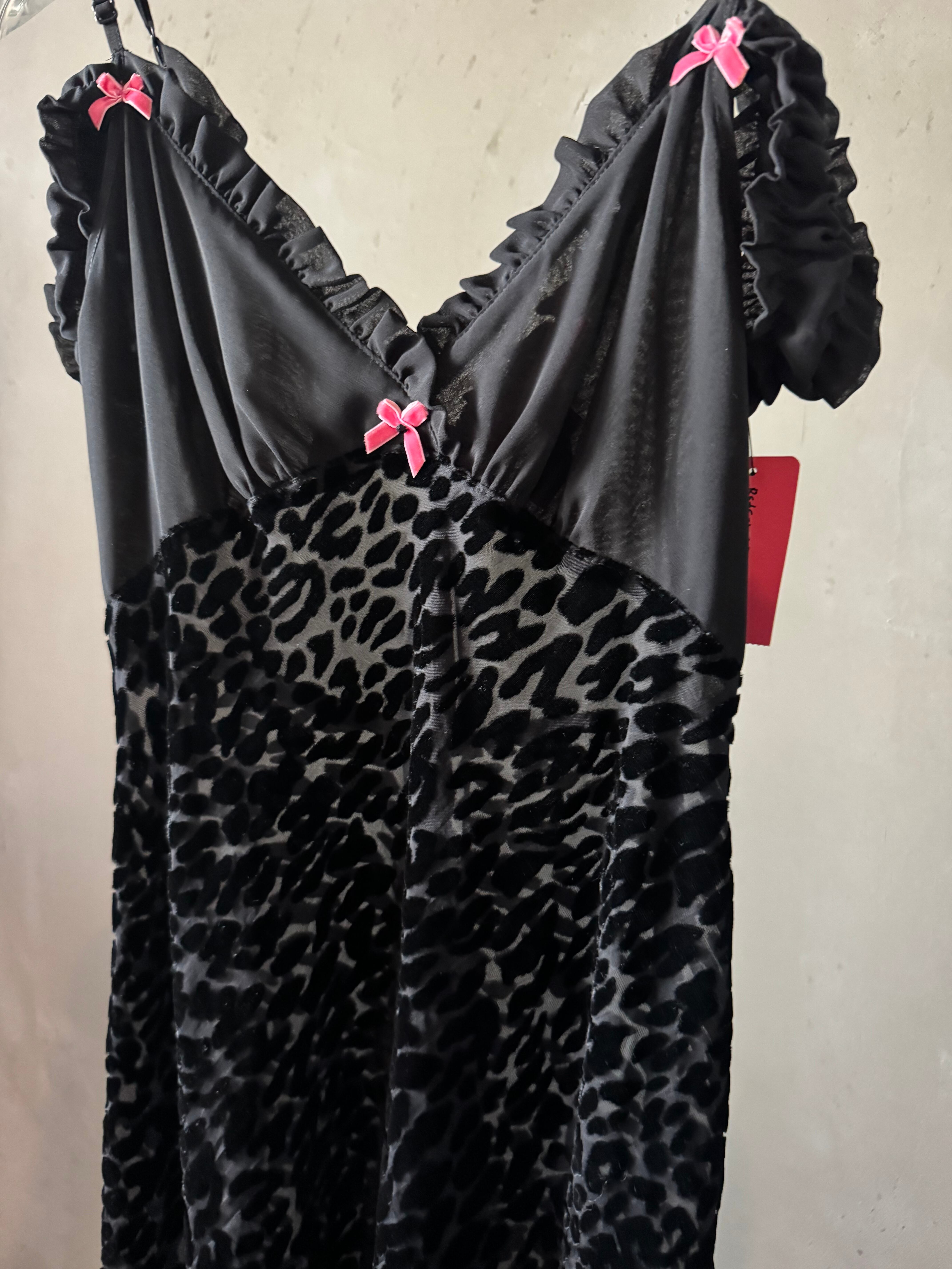 BETSY JOHNSON velours ribbon see-through leopard baby doll (dead stock)