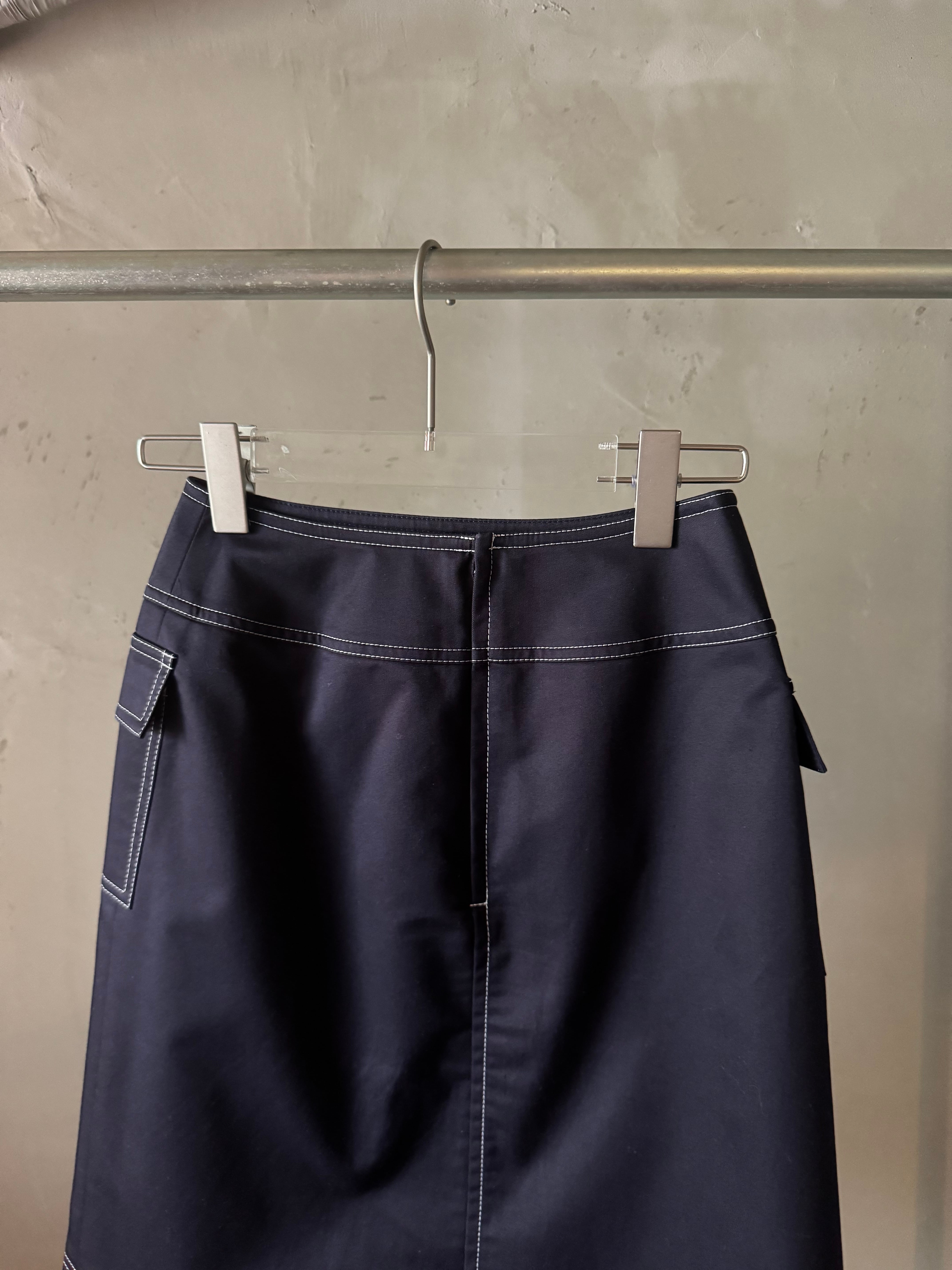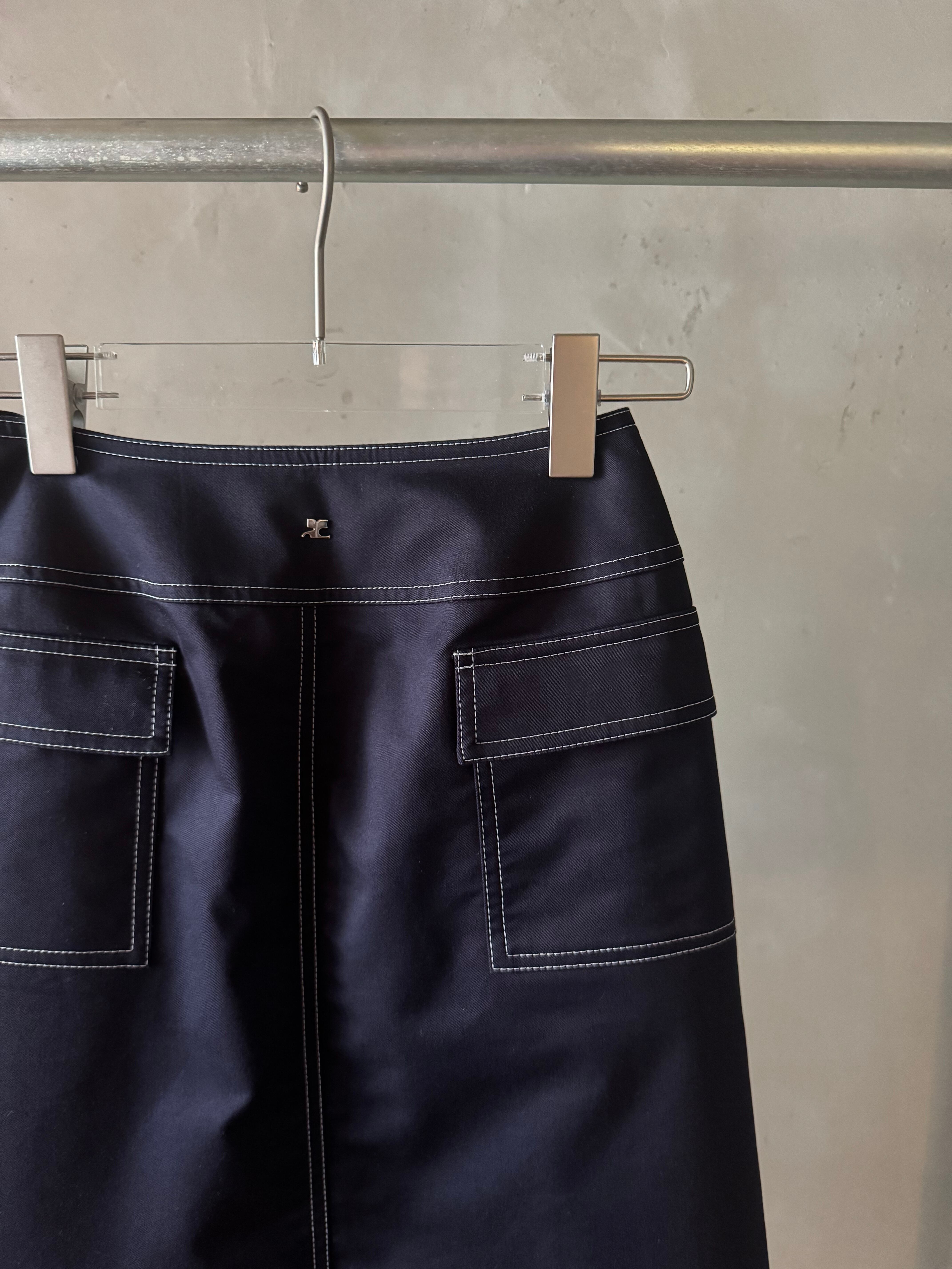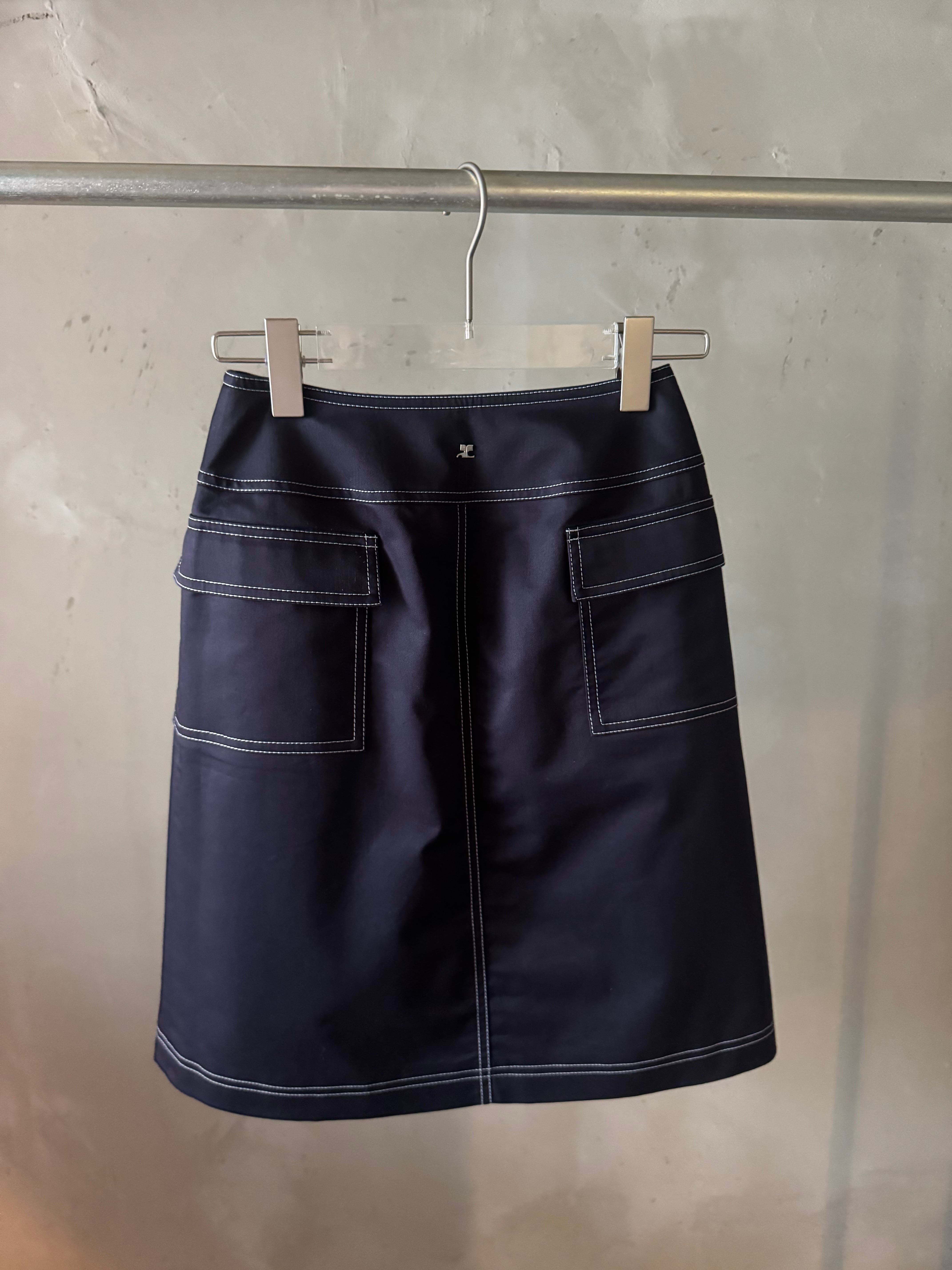 Courrèges silver logo navy skirt