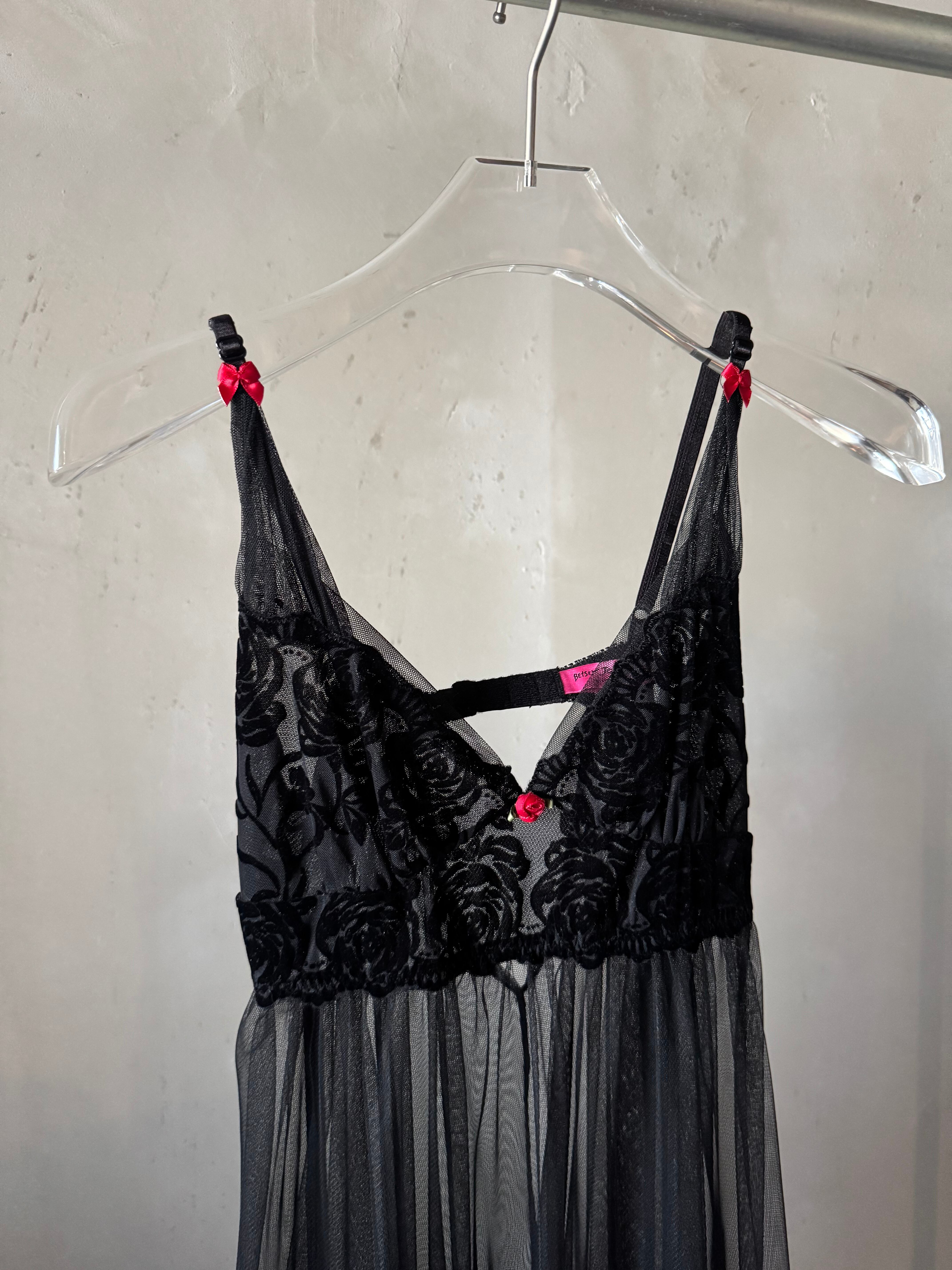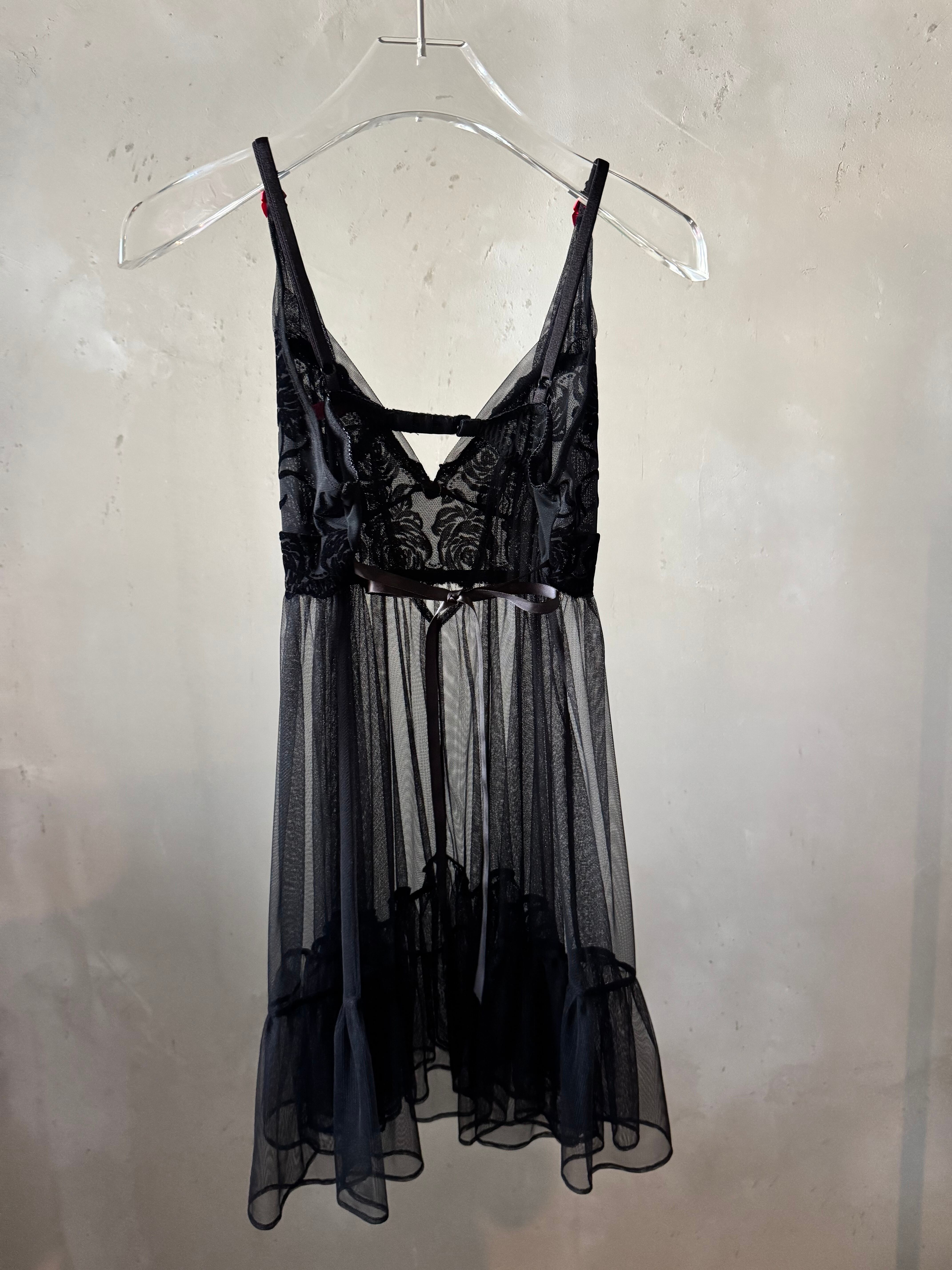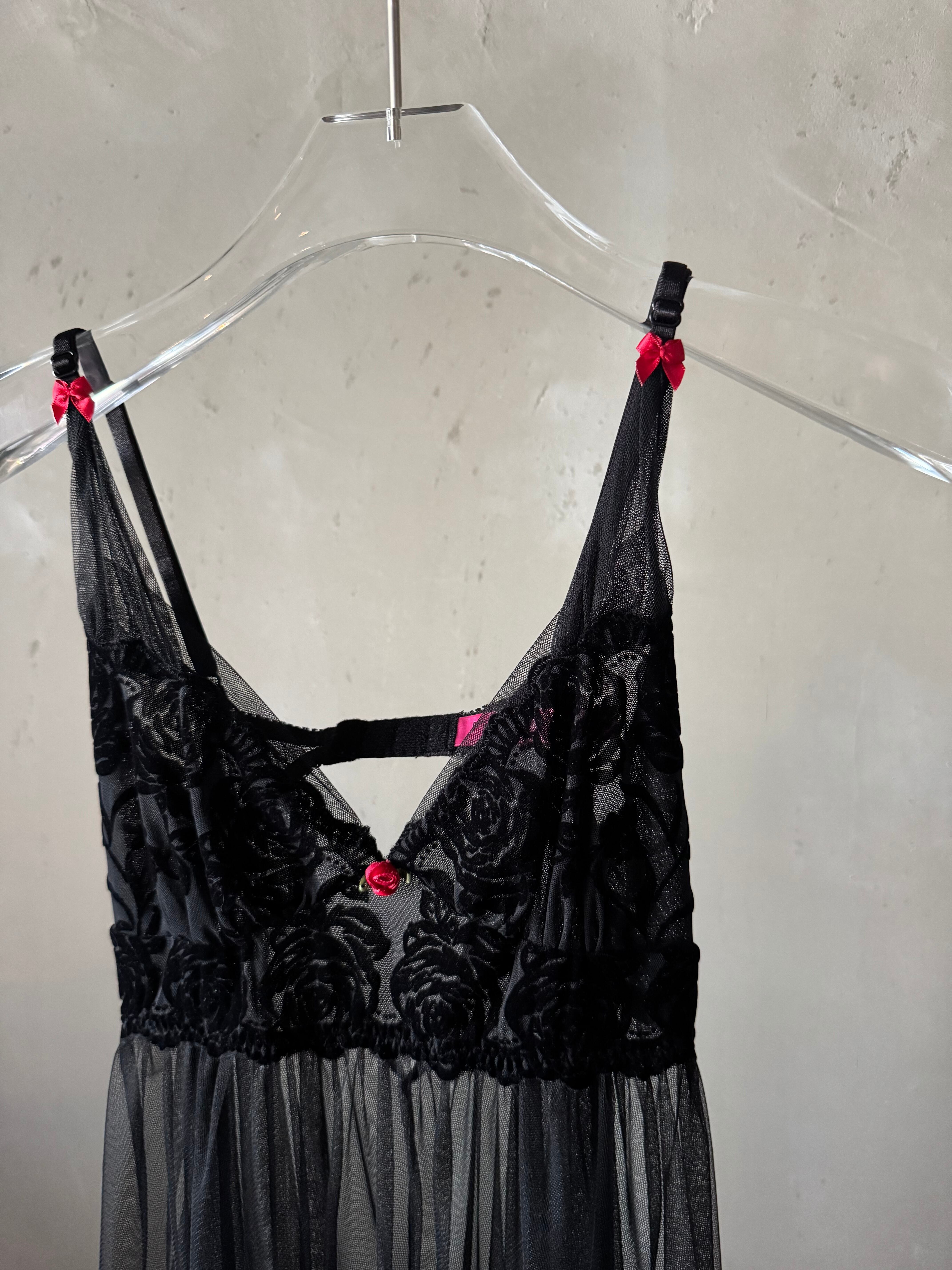 BETSY JOHNSON rose point velours see-through baby doll