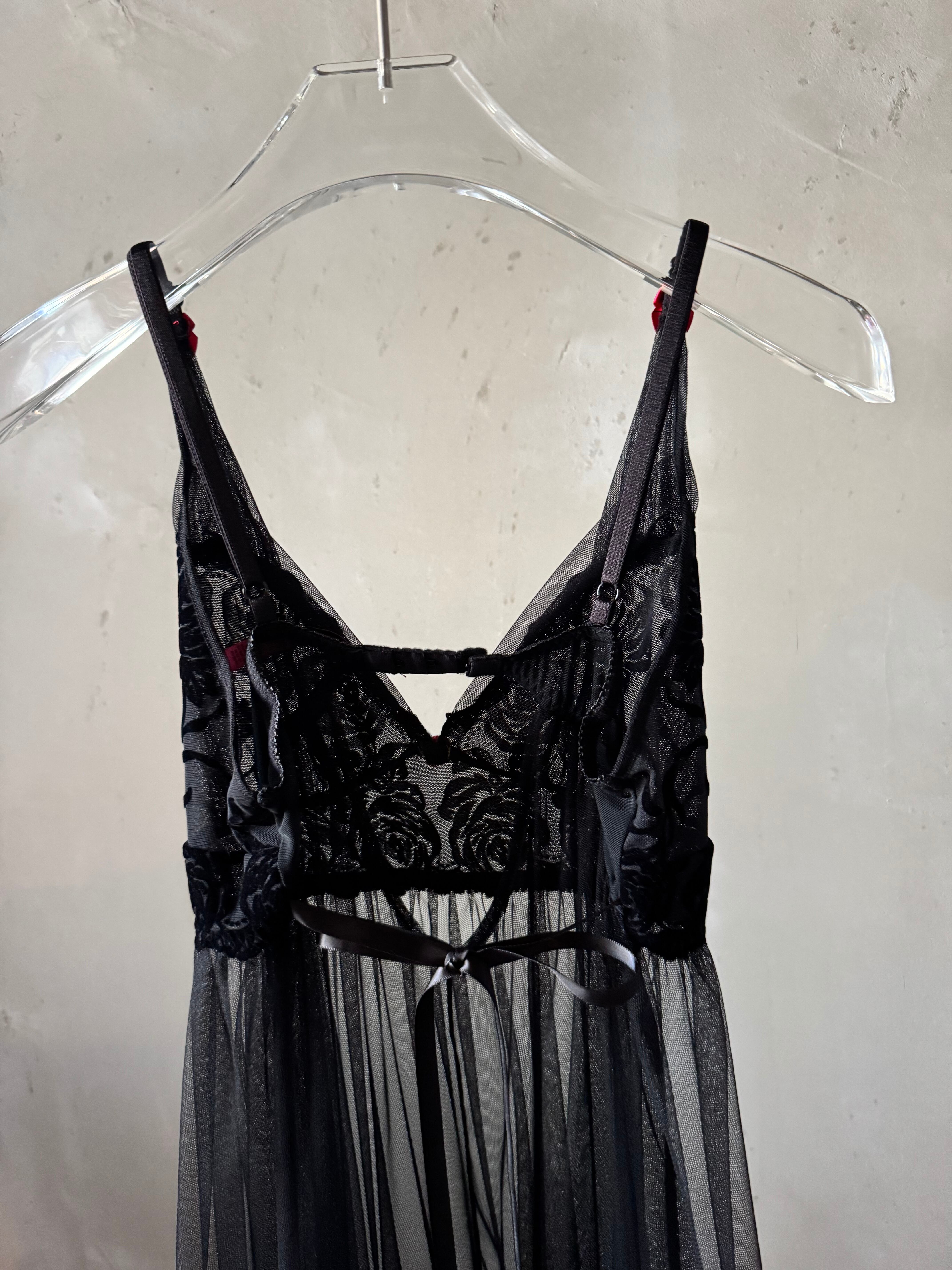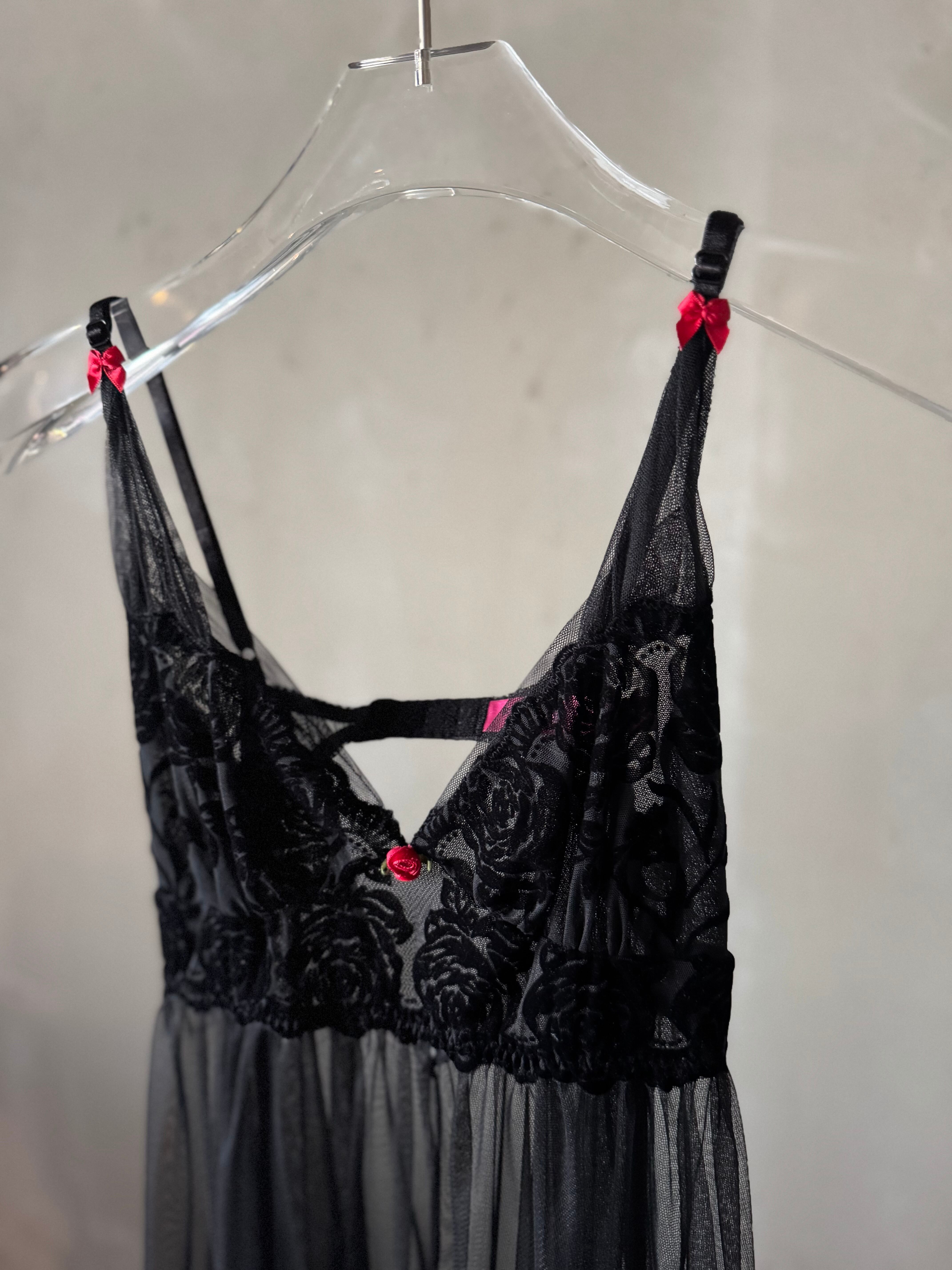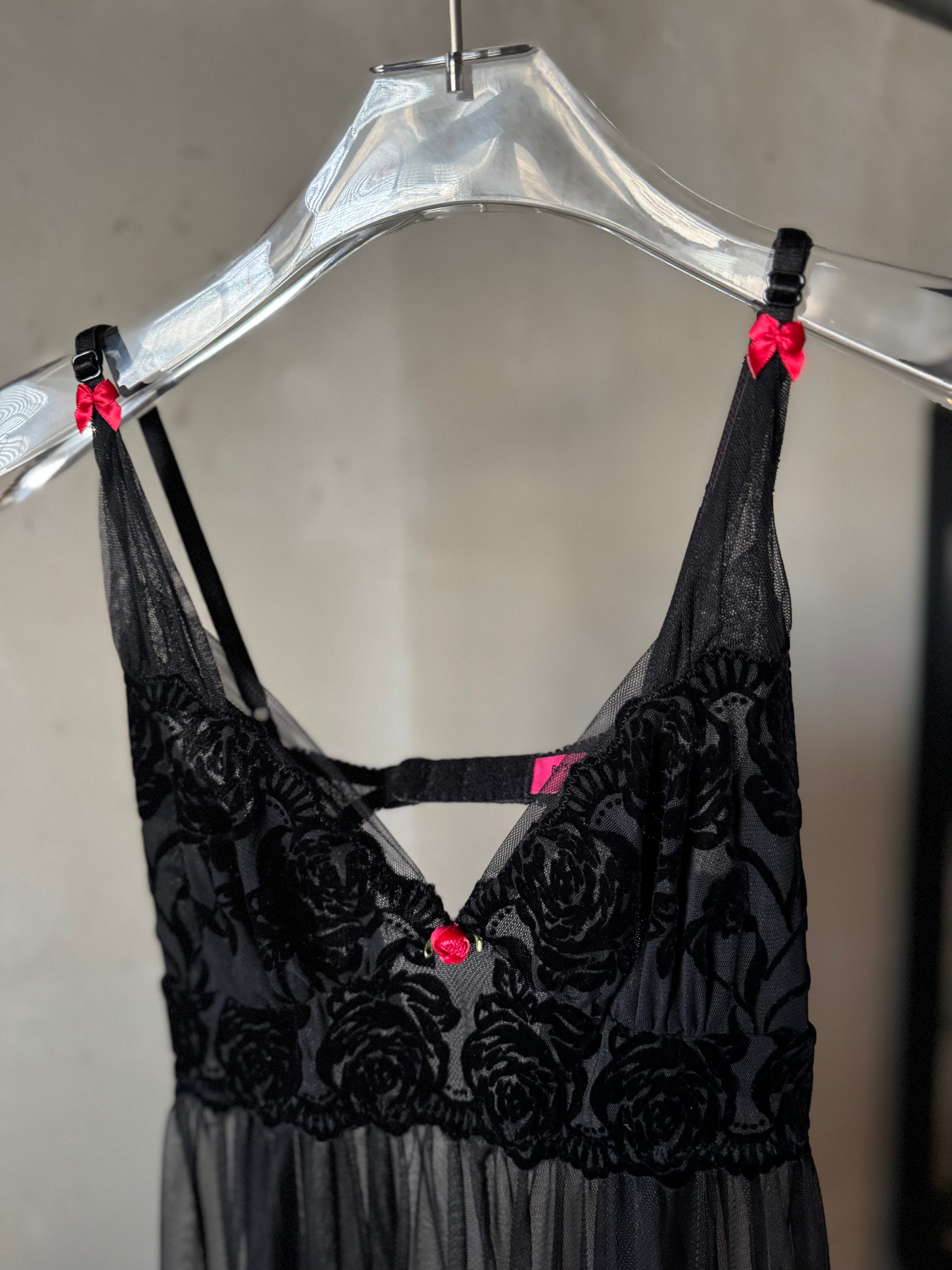 BETSY JOHNSON rose point velours see-through baby doll