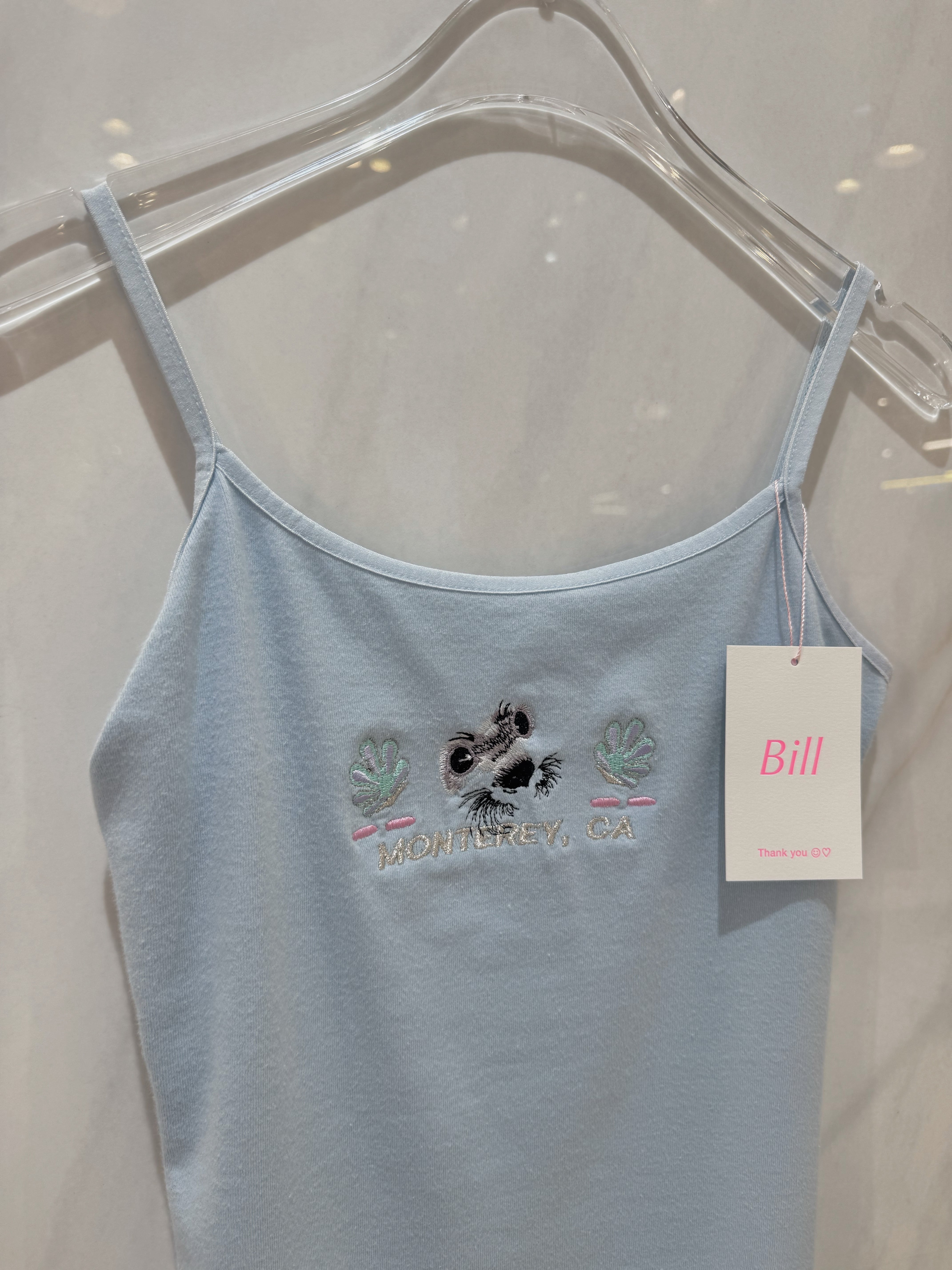 AZARASHI embroidery ice blue cami(Bill vintage)