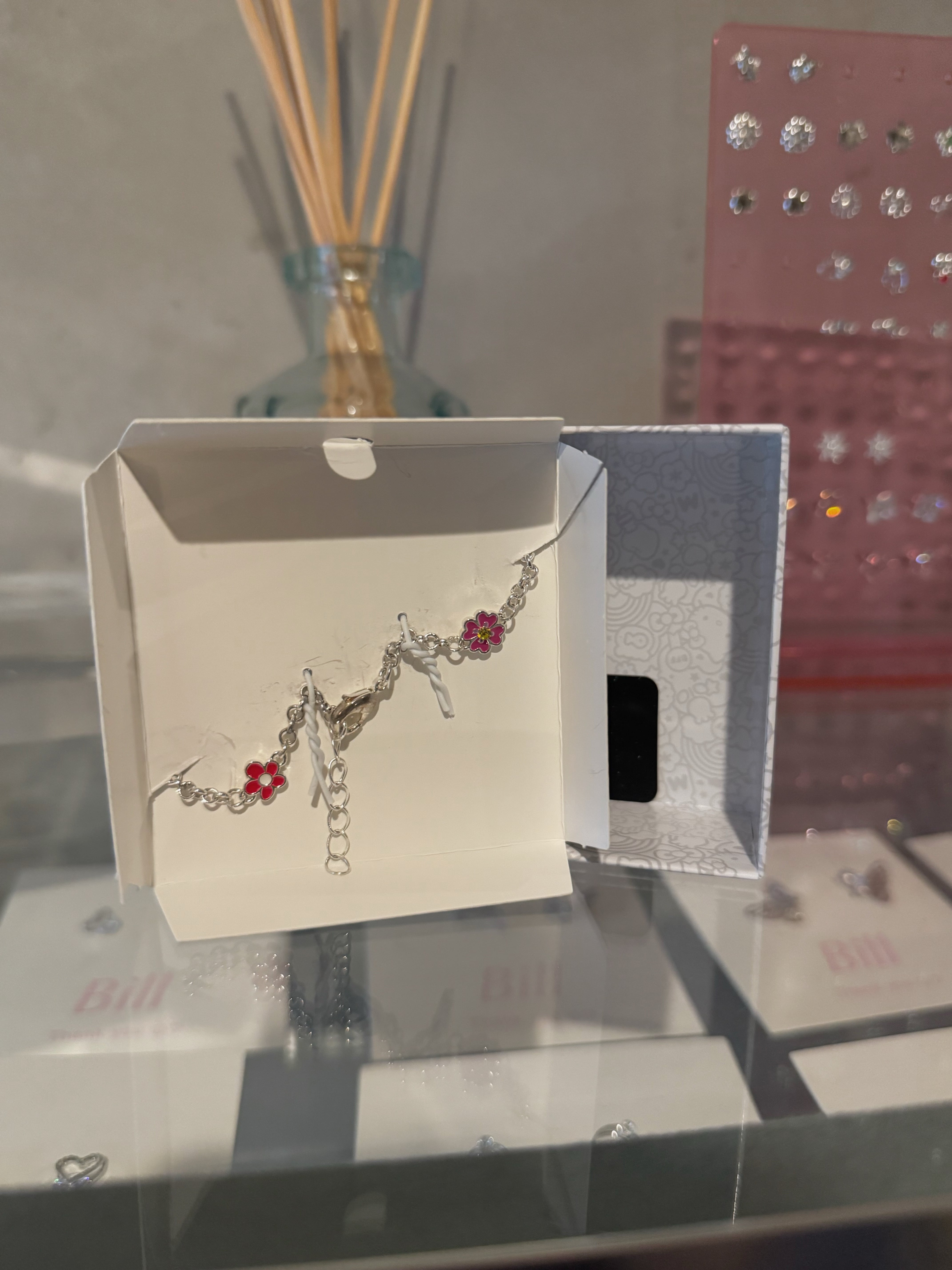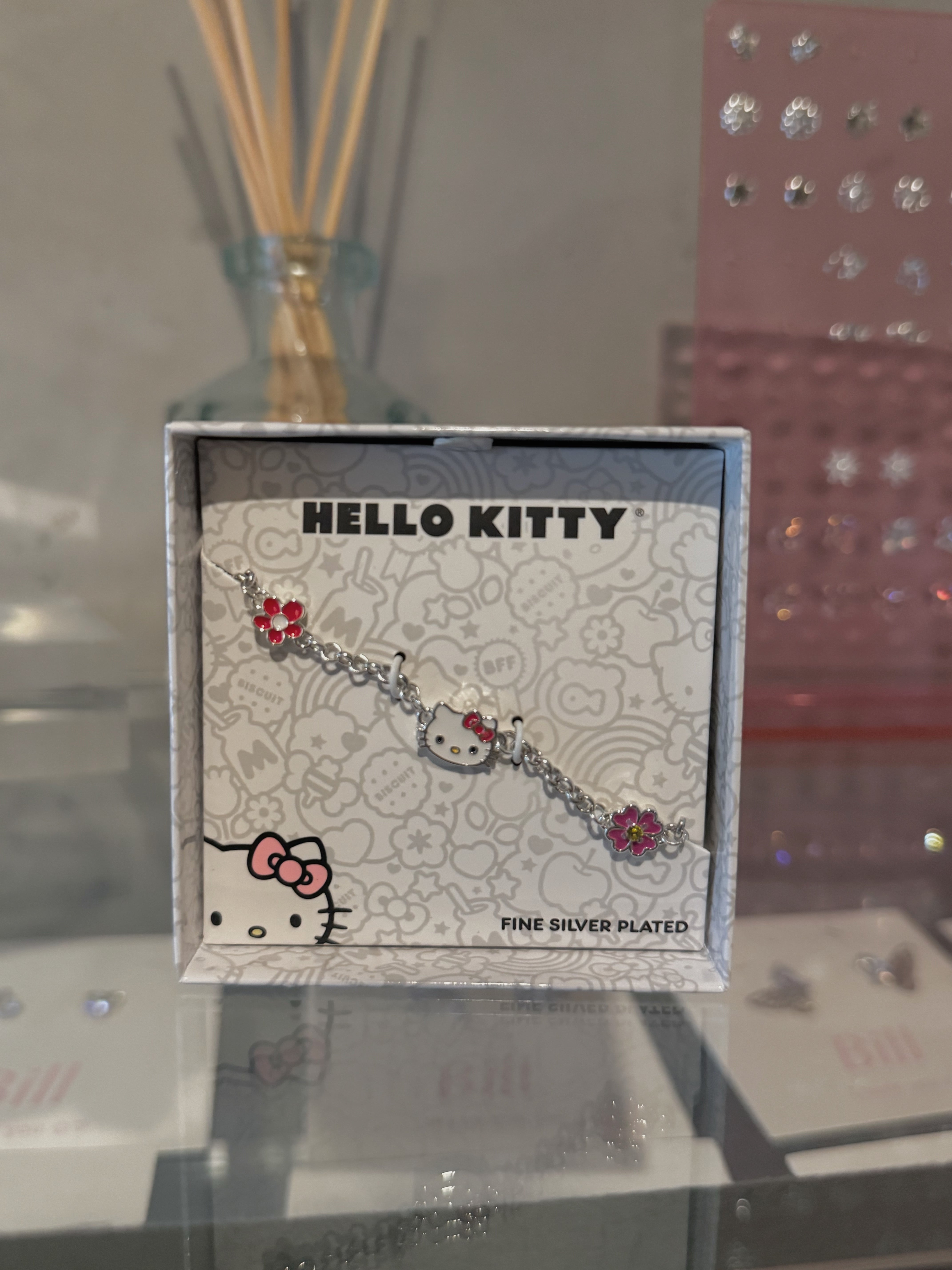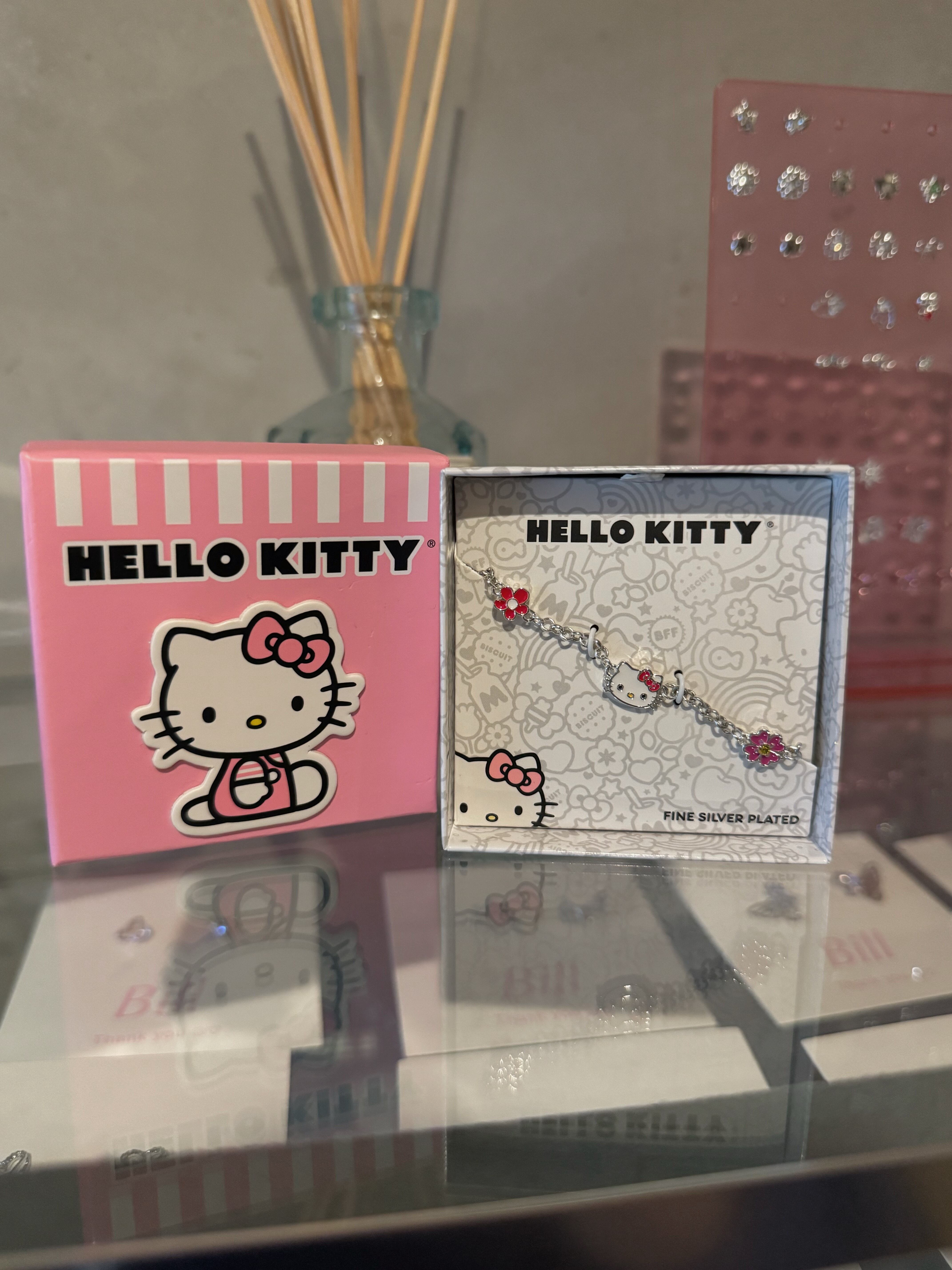USA Sanrio のHELLO KITTYキティちゃんのフェイスとお花が両サイドに付いたブレスレットになります♪