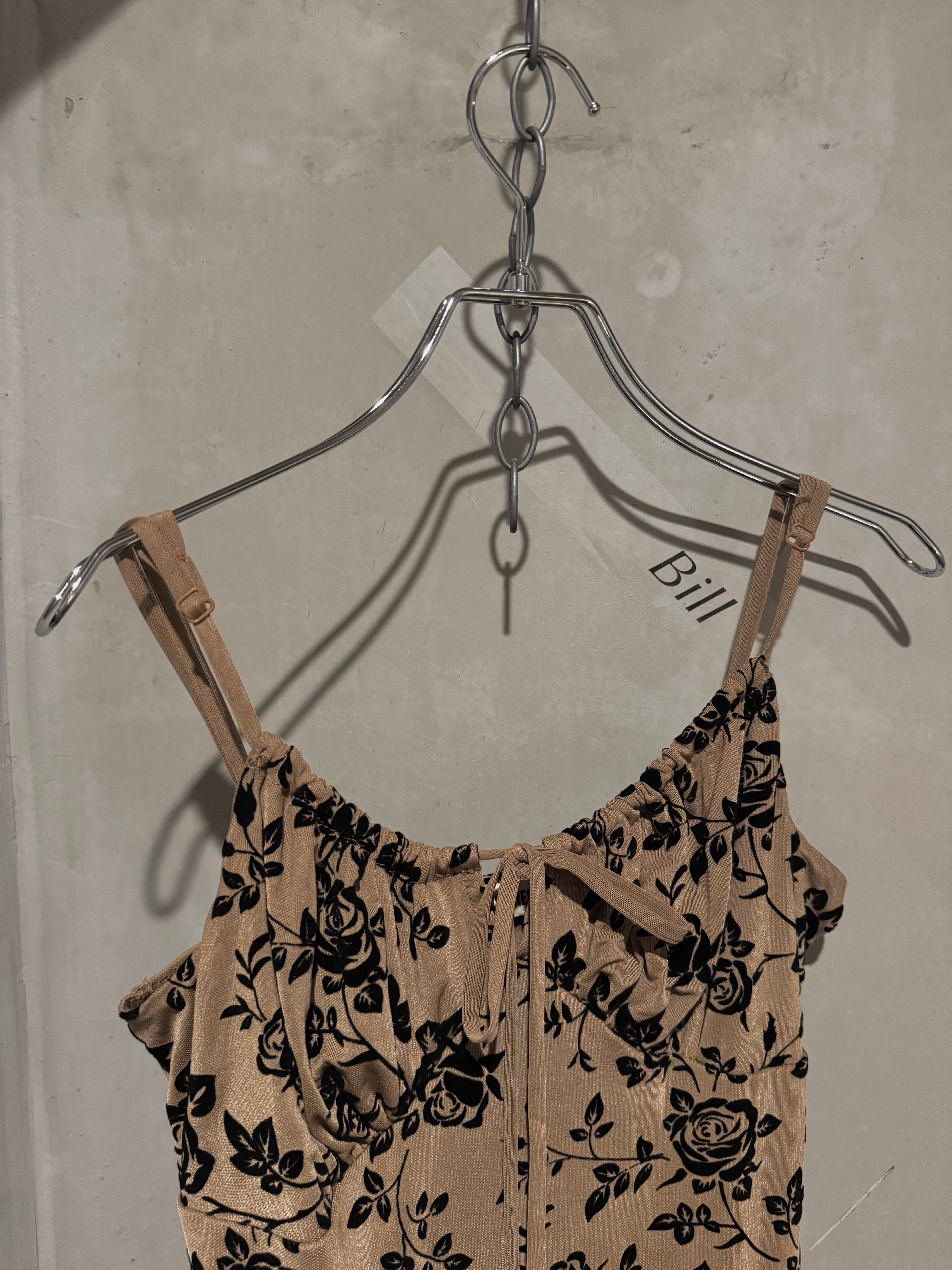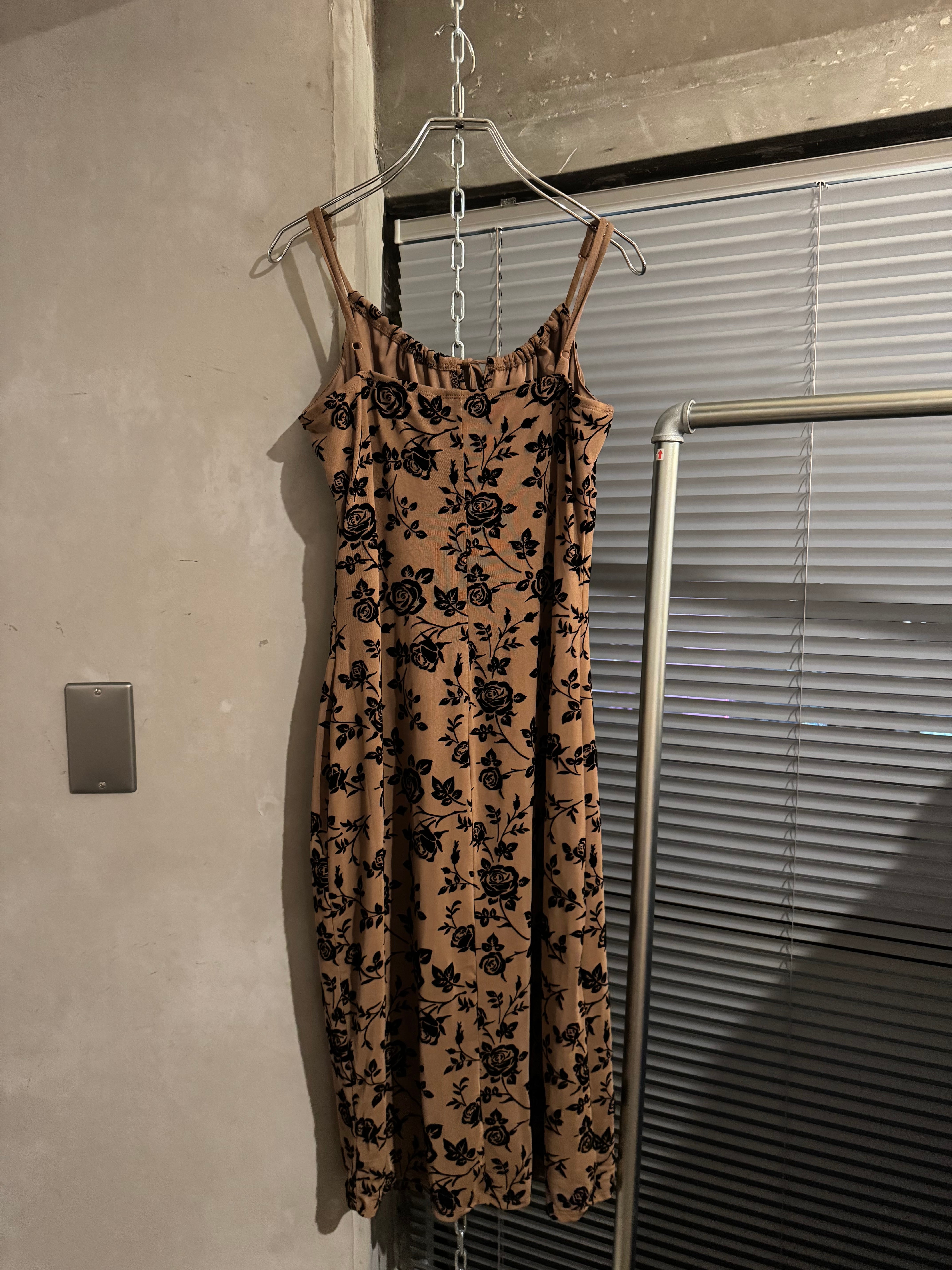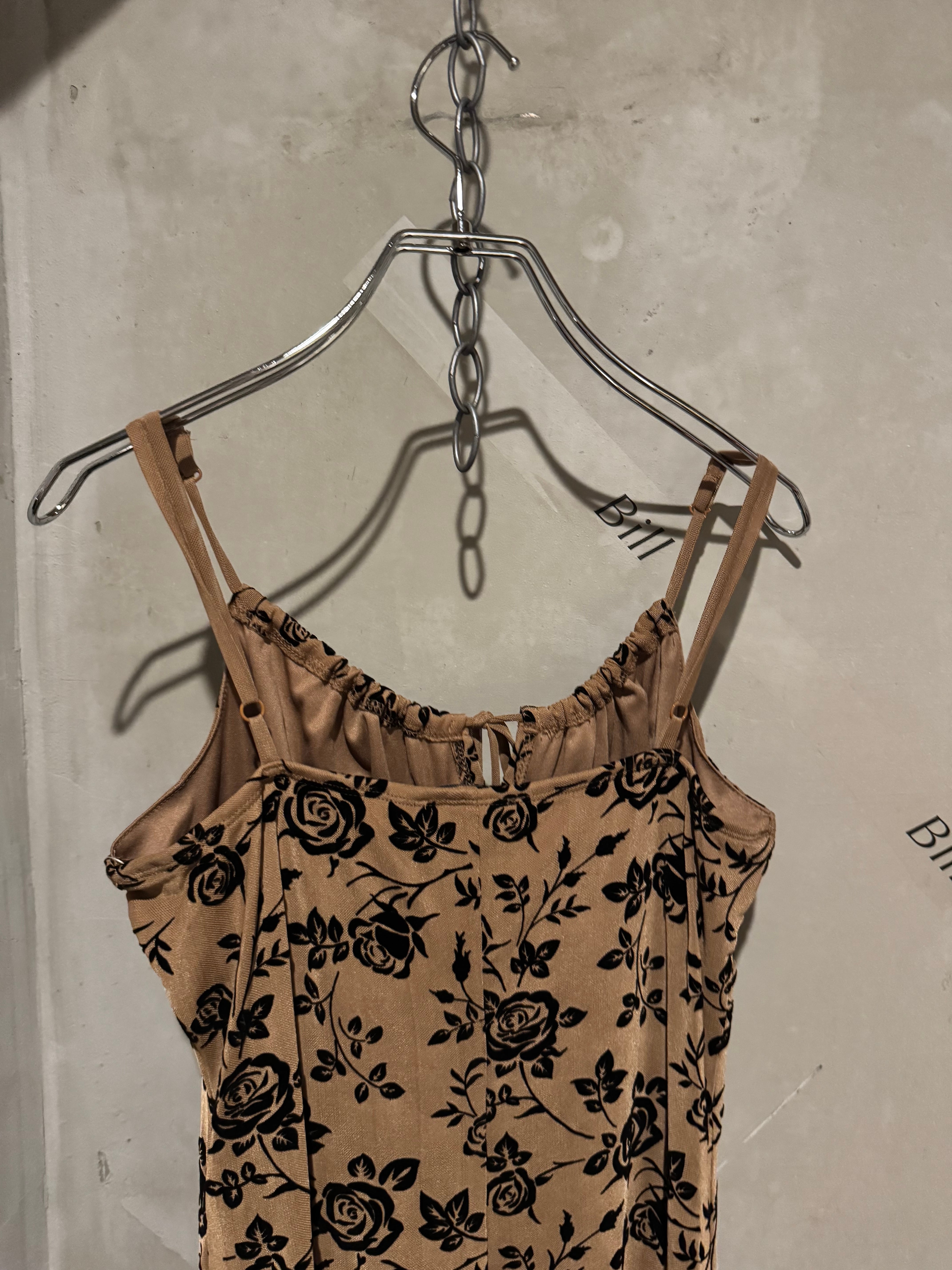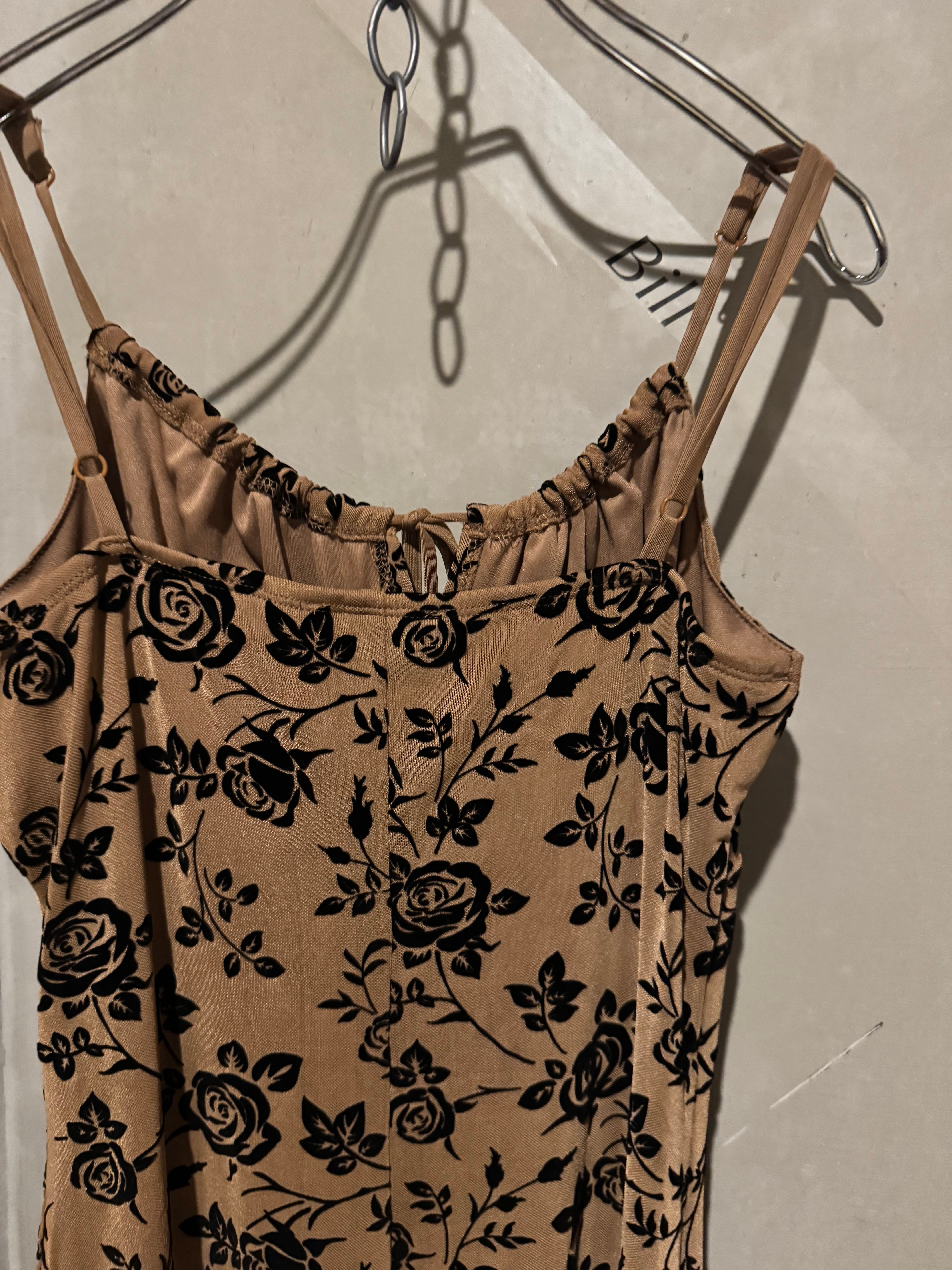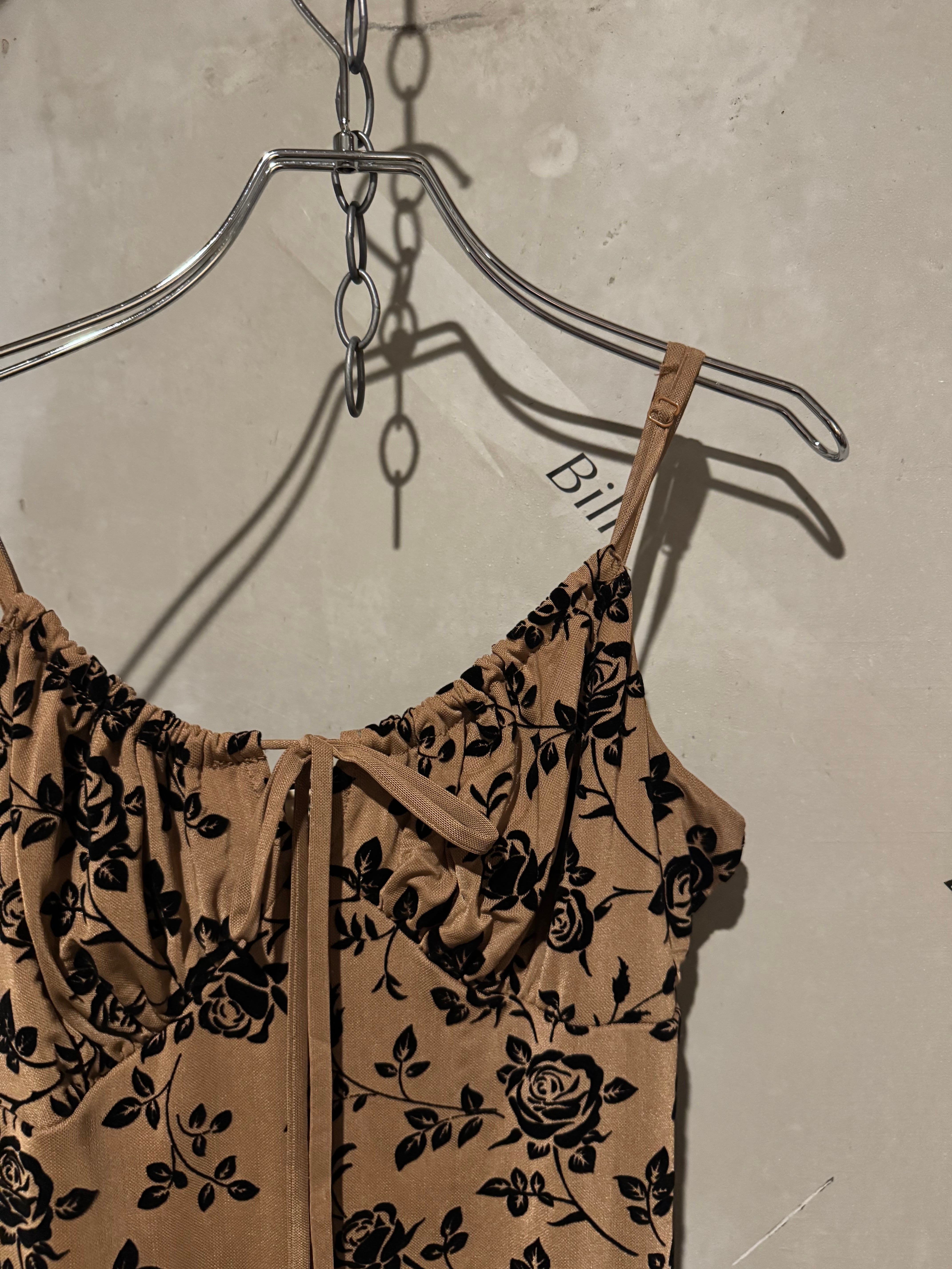velours rose ribbon cami slid dress