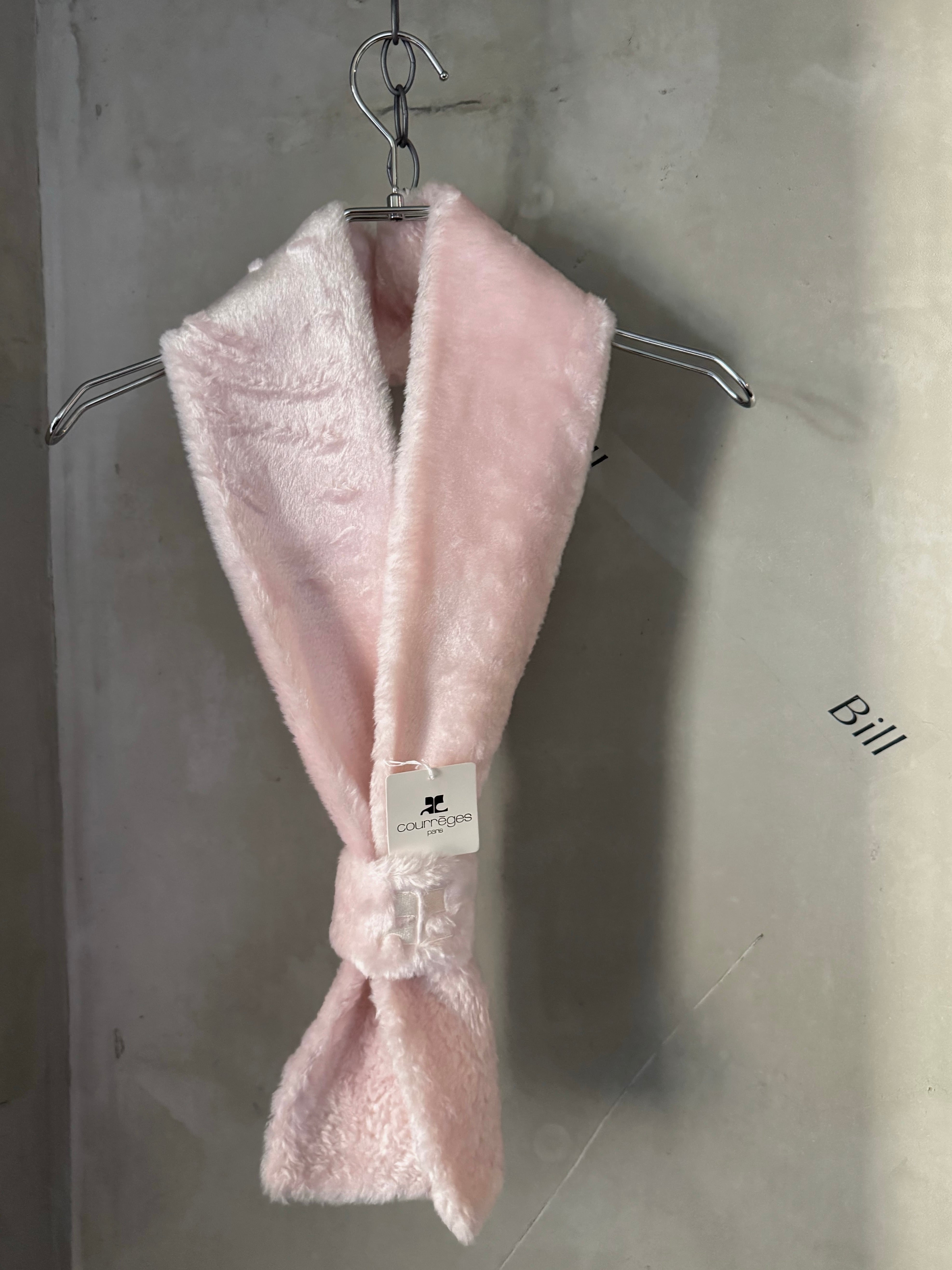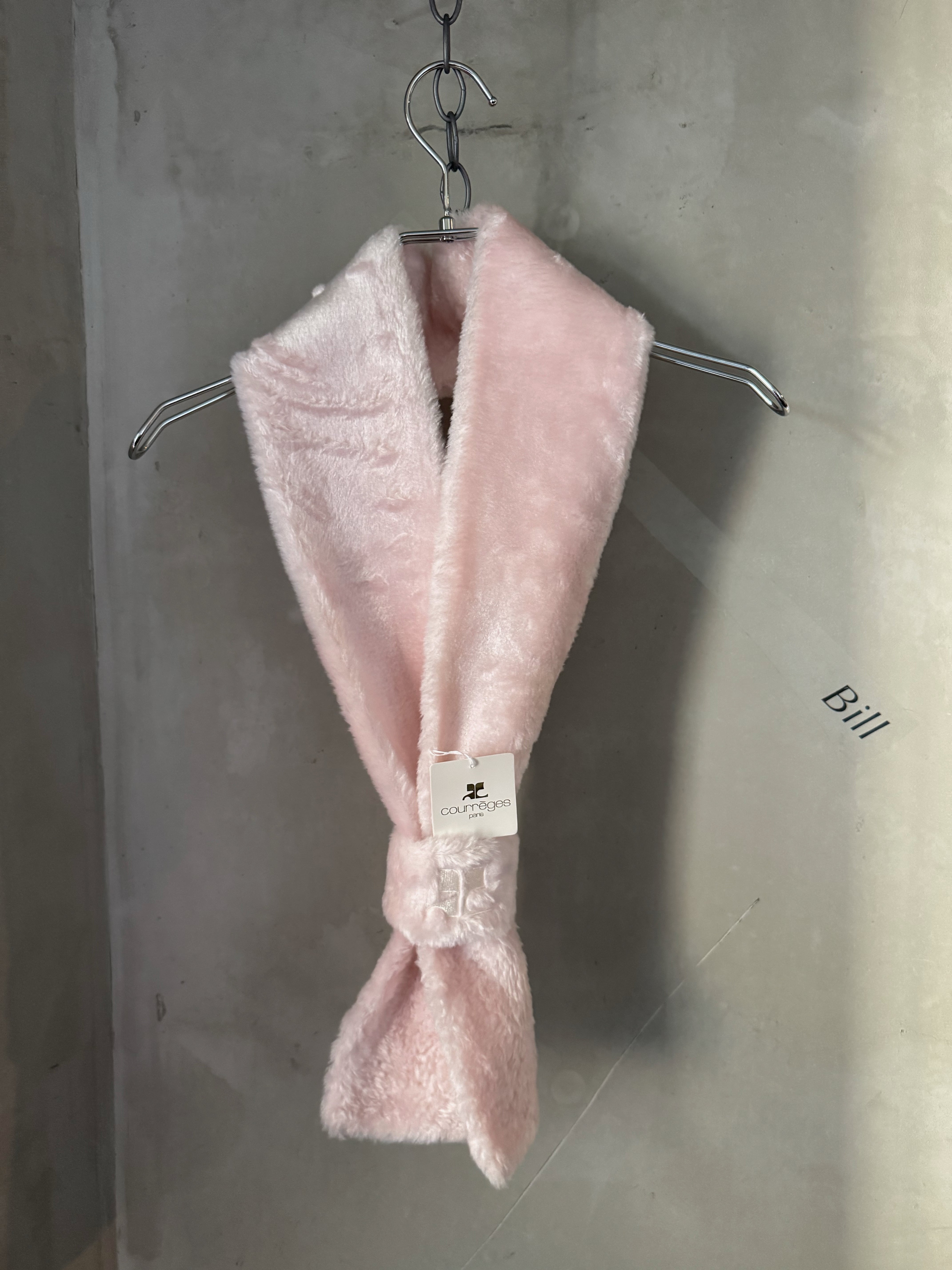 Courrèges embroidery logo baby pink fur muffler(dead stock)