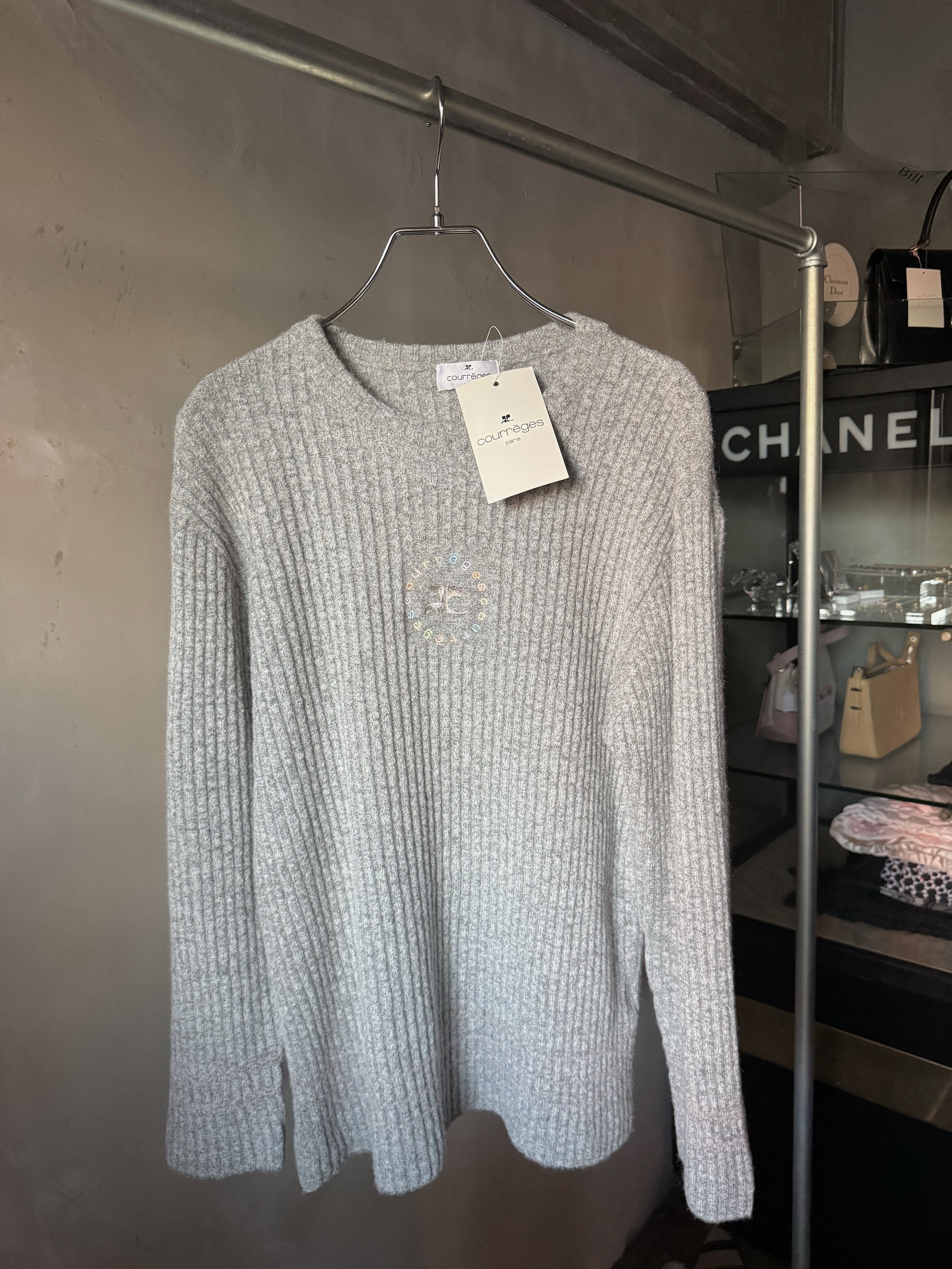 Courrèges rainbow embroidery logo gray knit (dead stock)