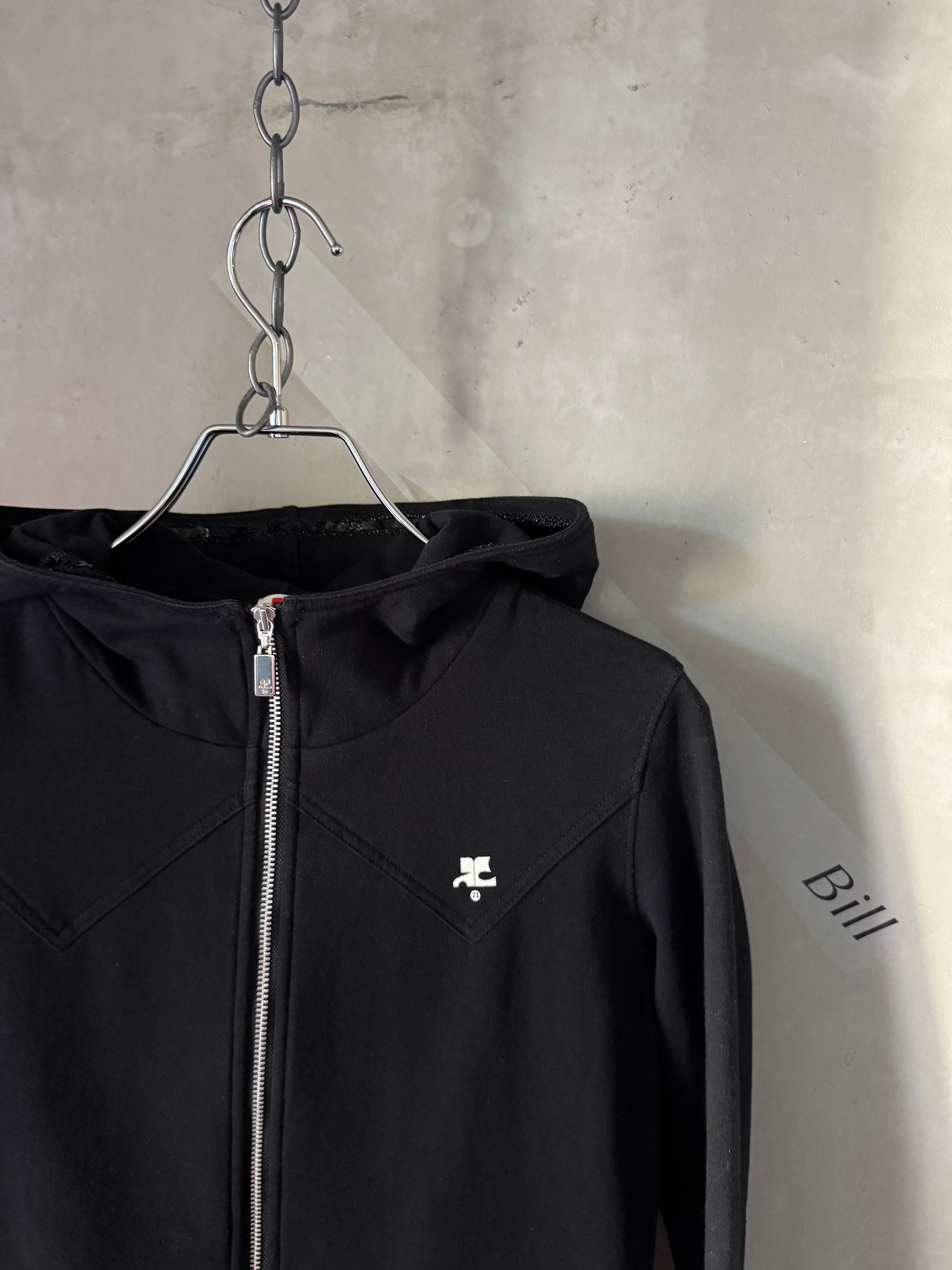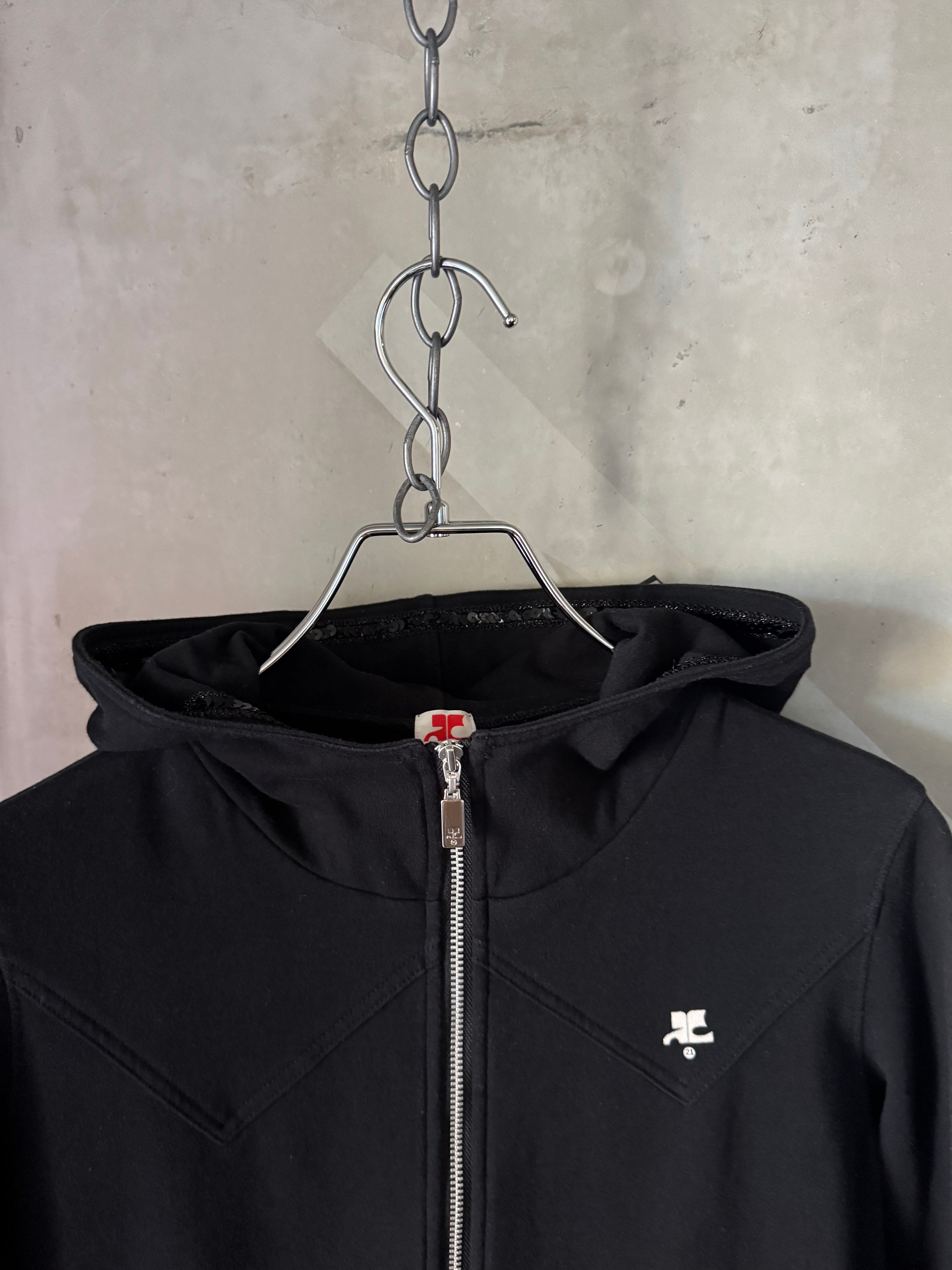 Courrèges kirakira sequins hoodie logo front black zipper