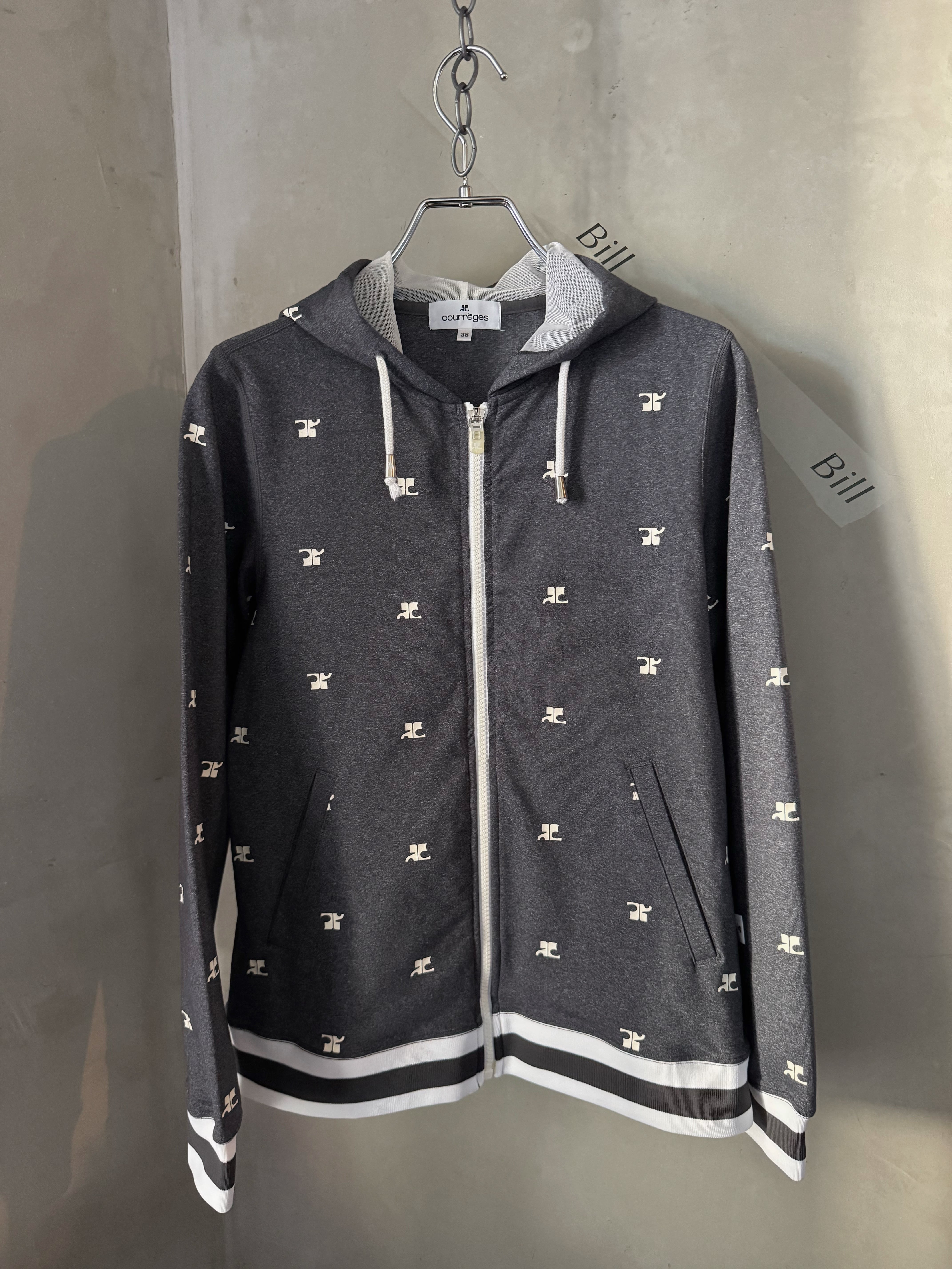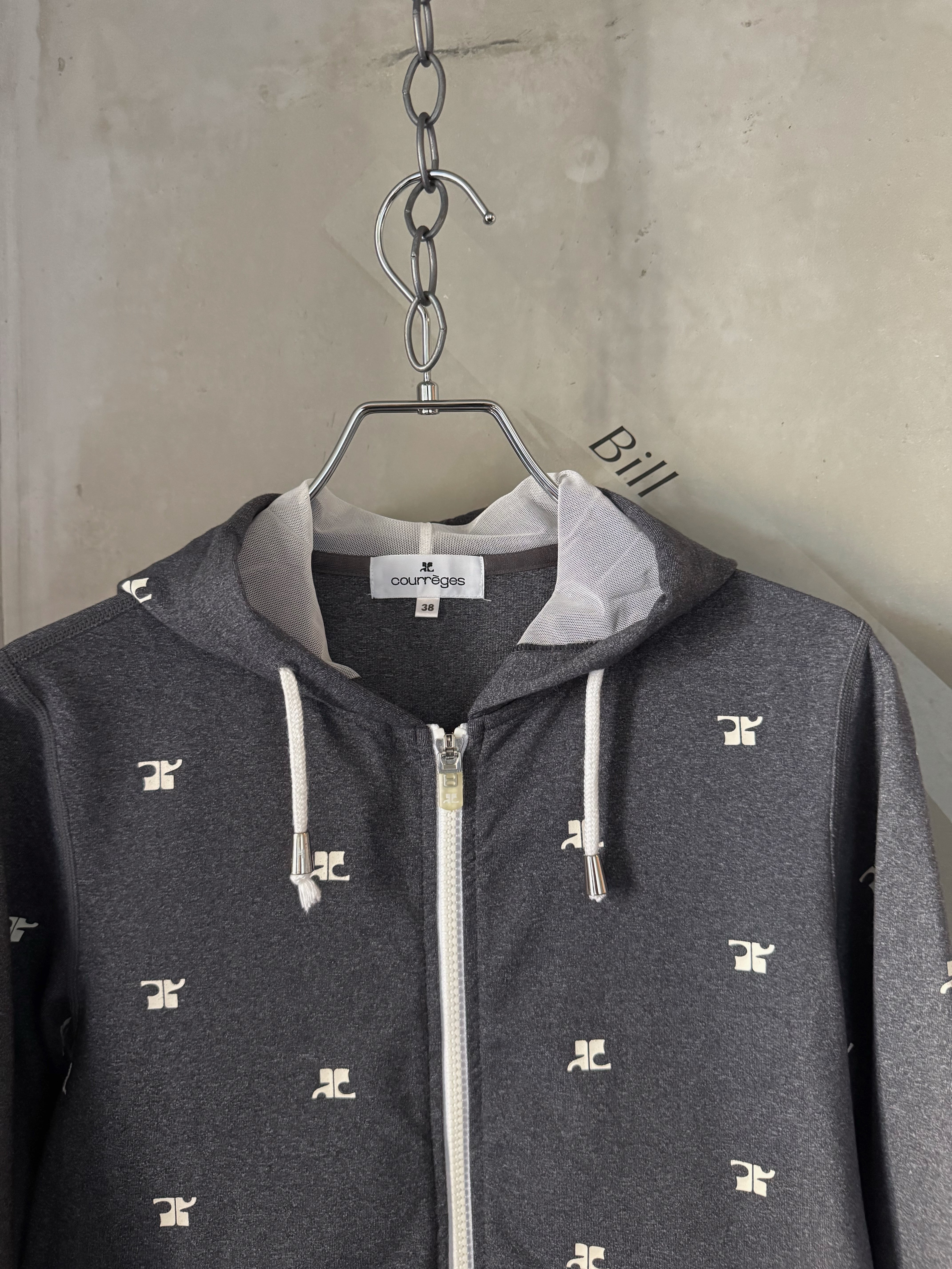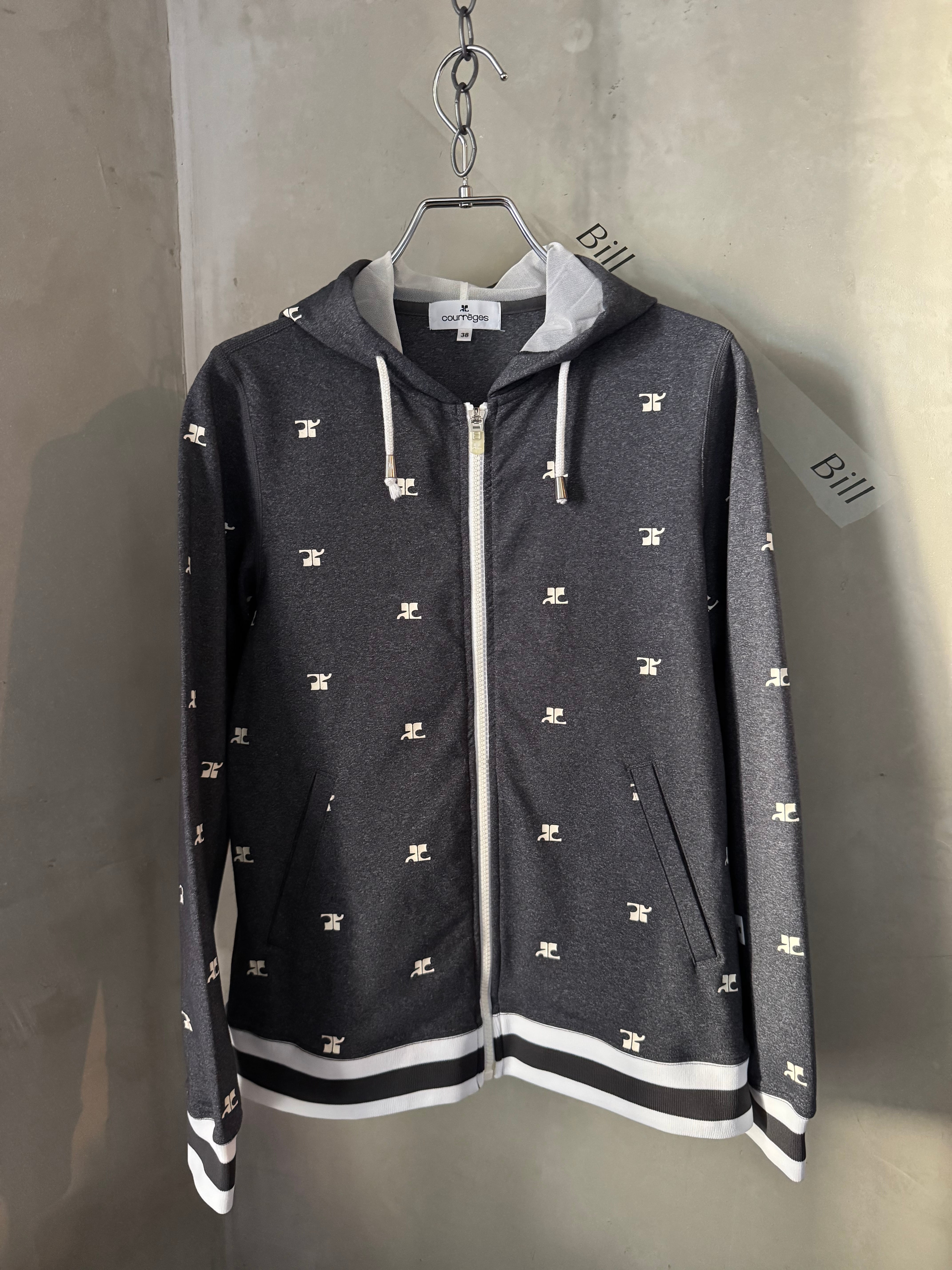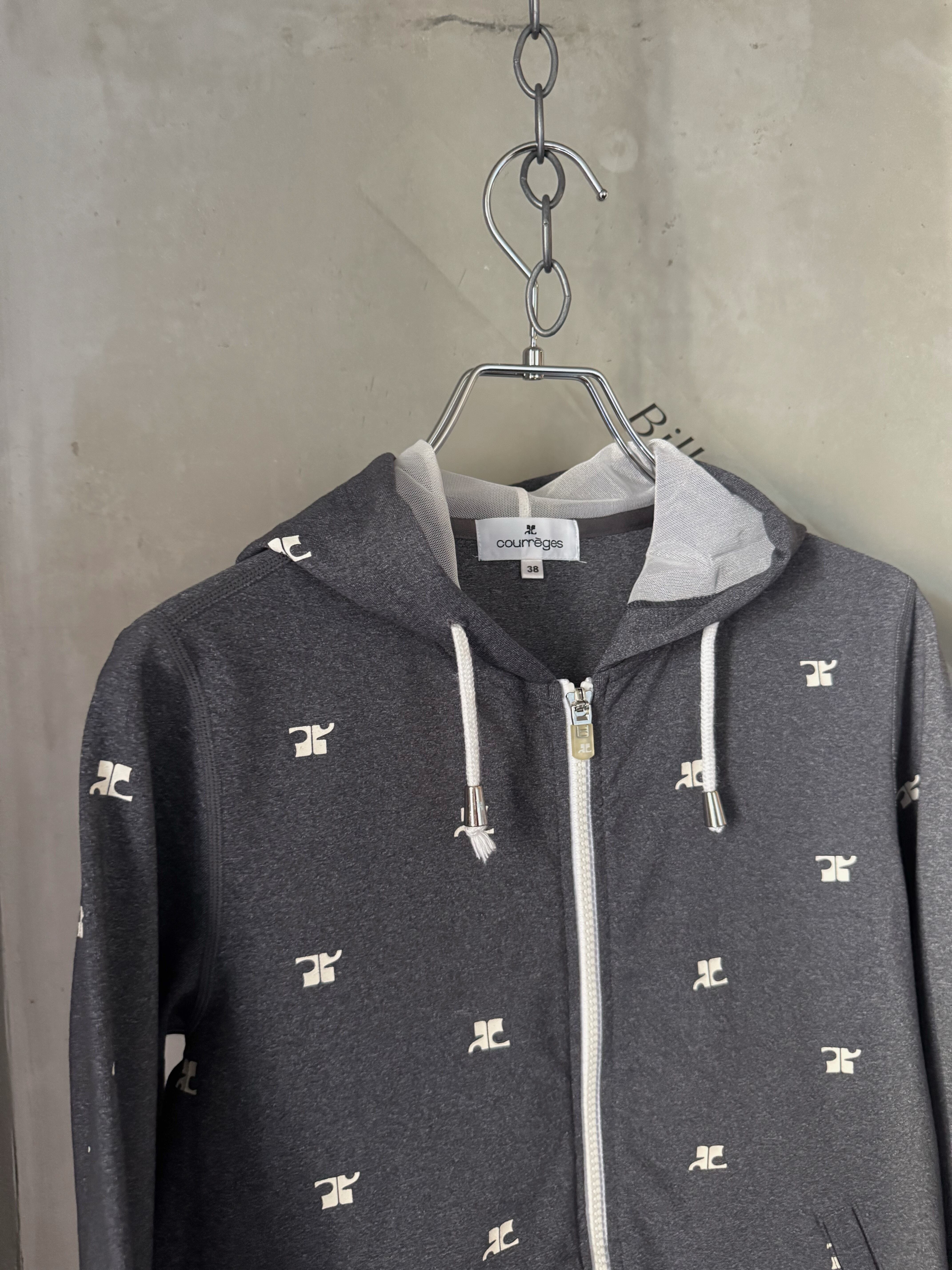 Courrèges logo hoodie gray front zipper