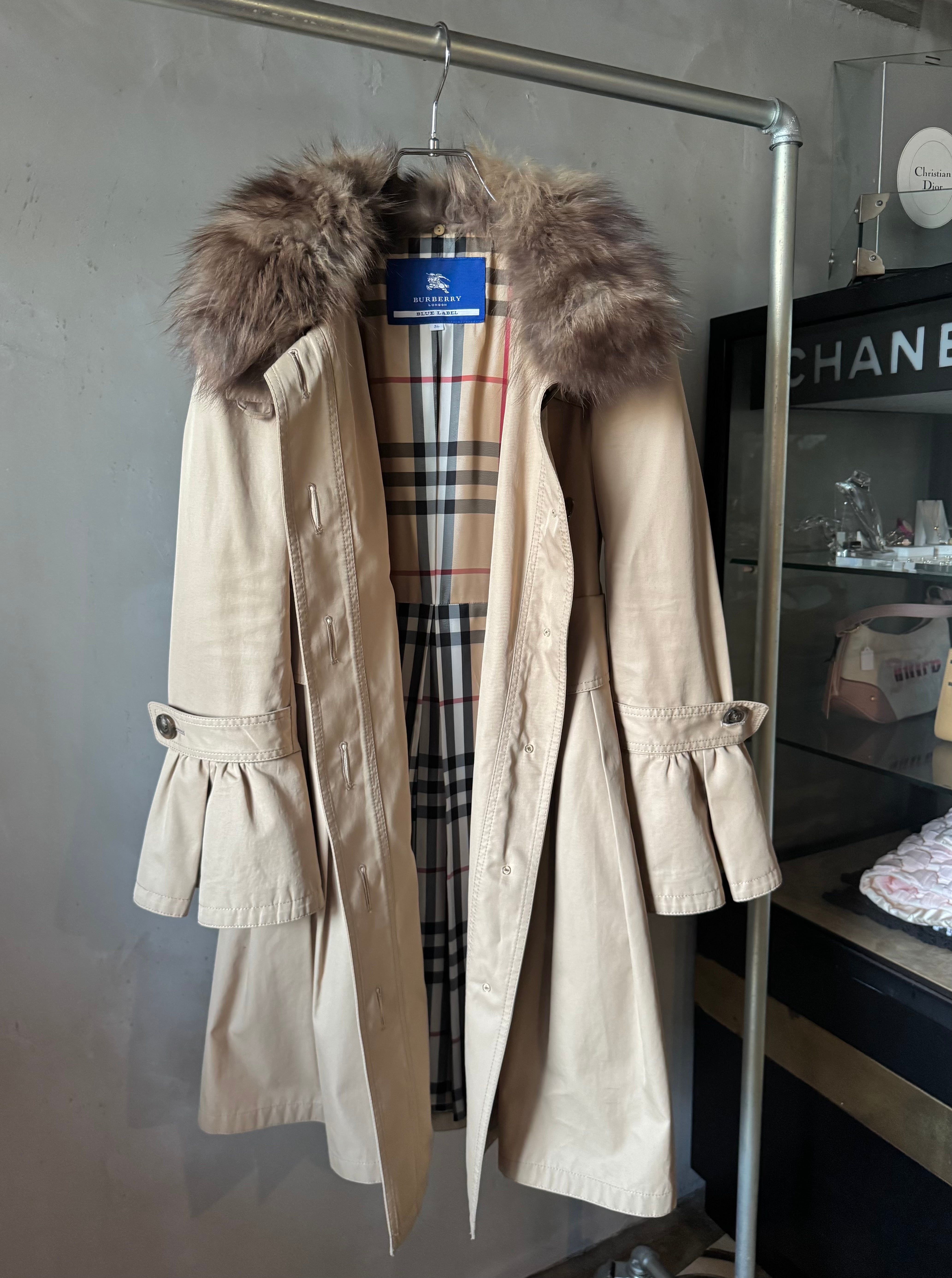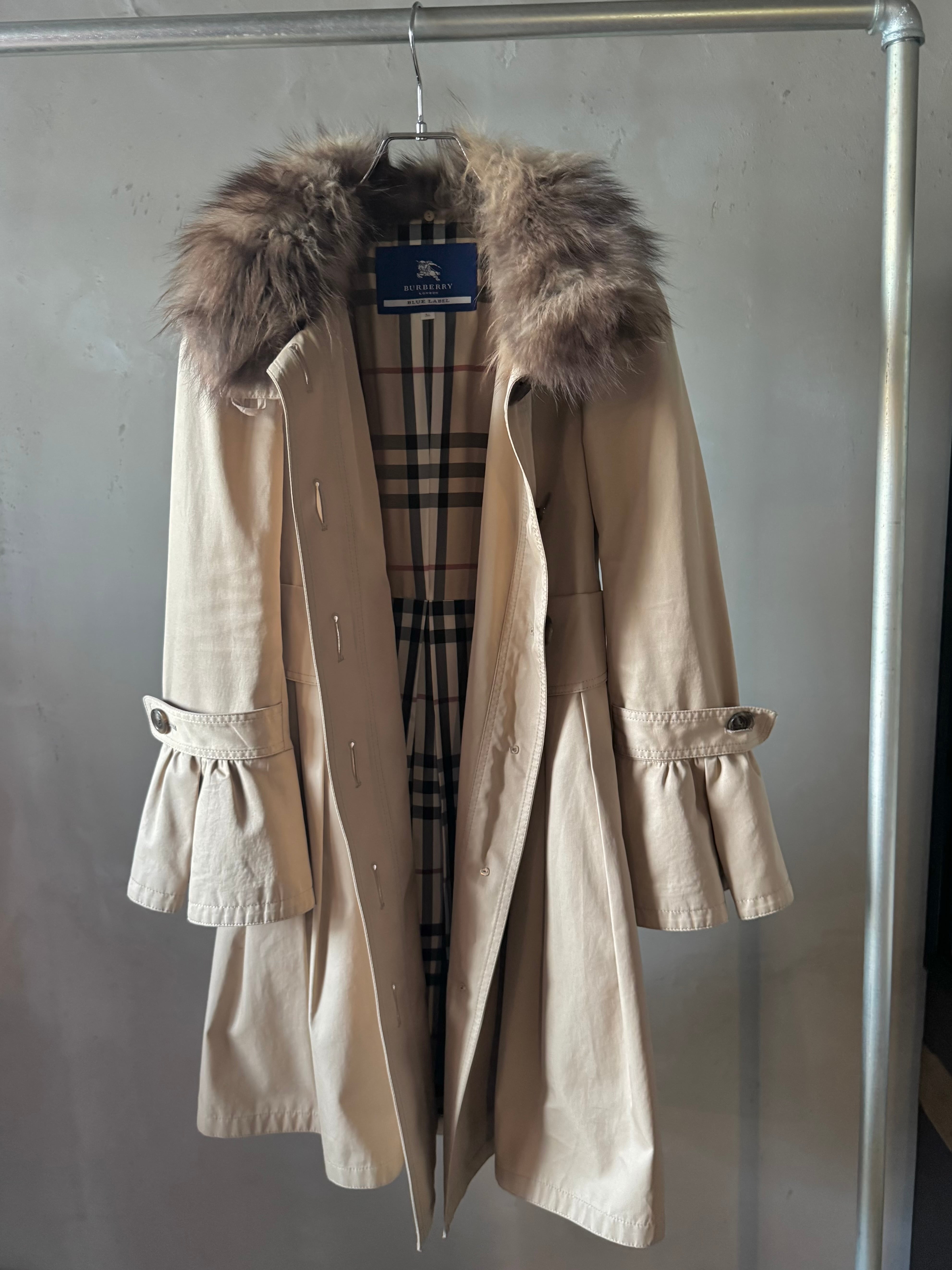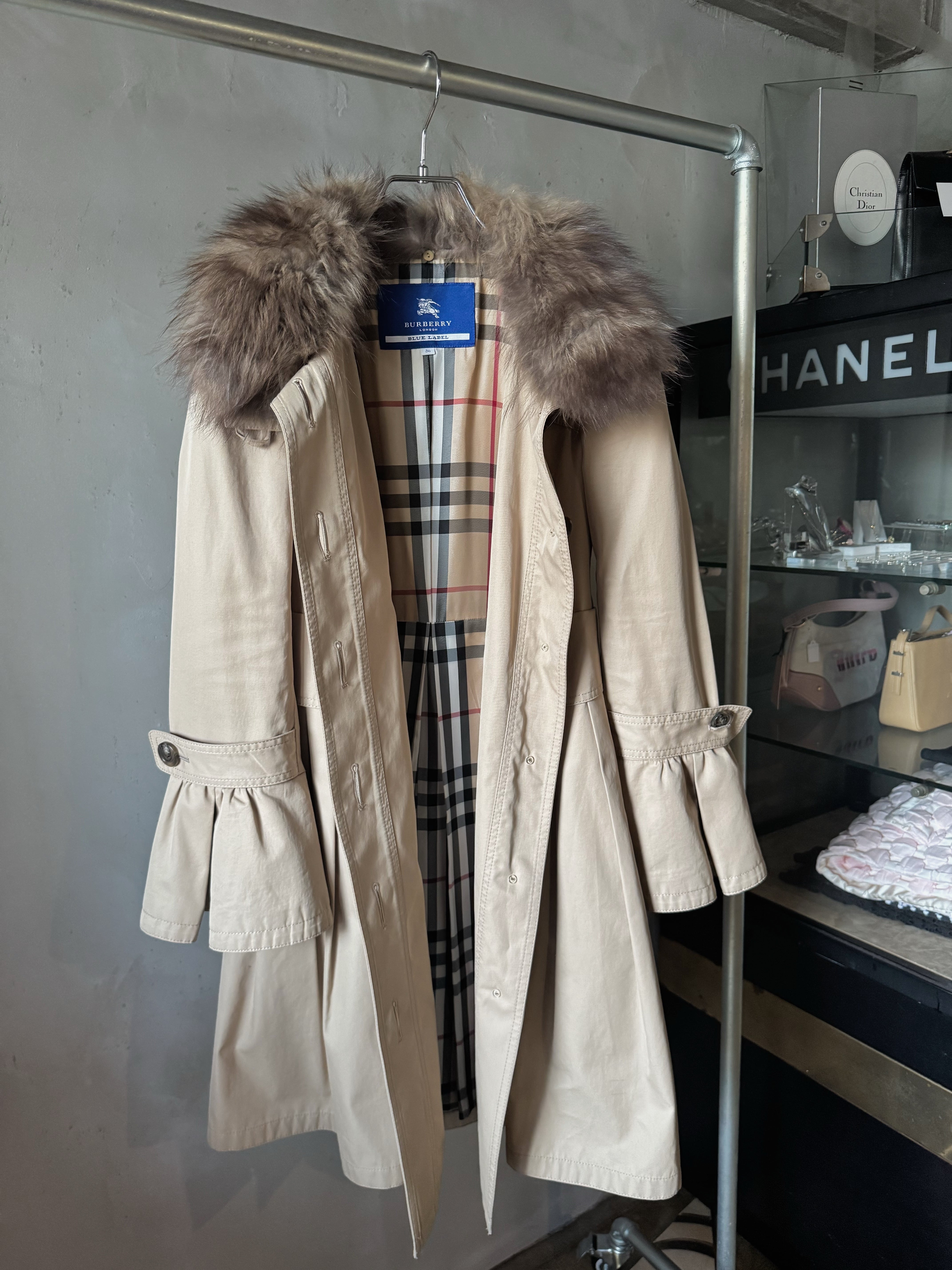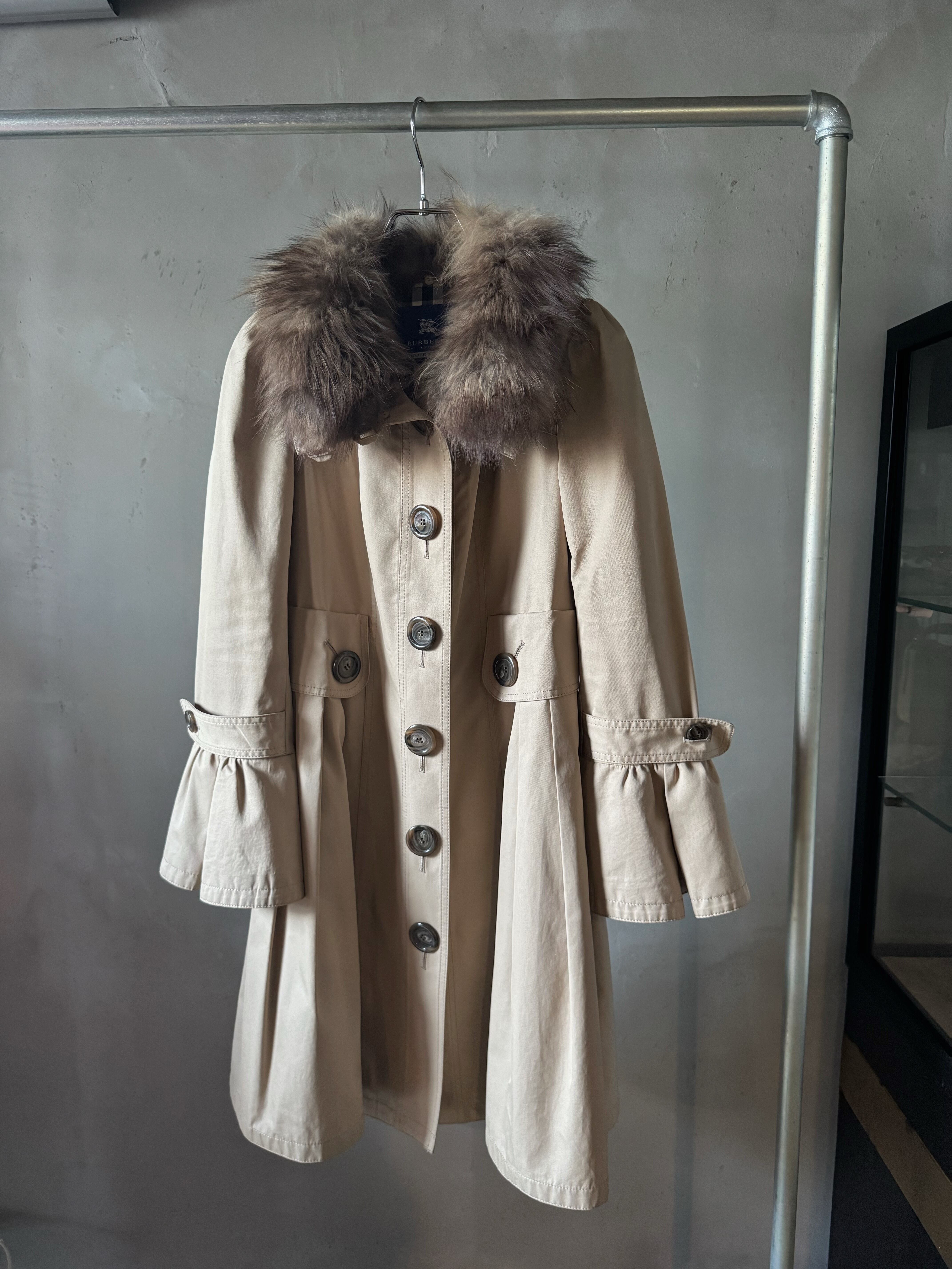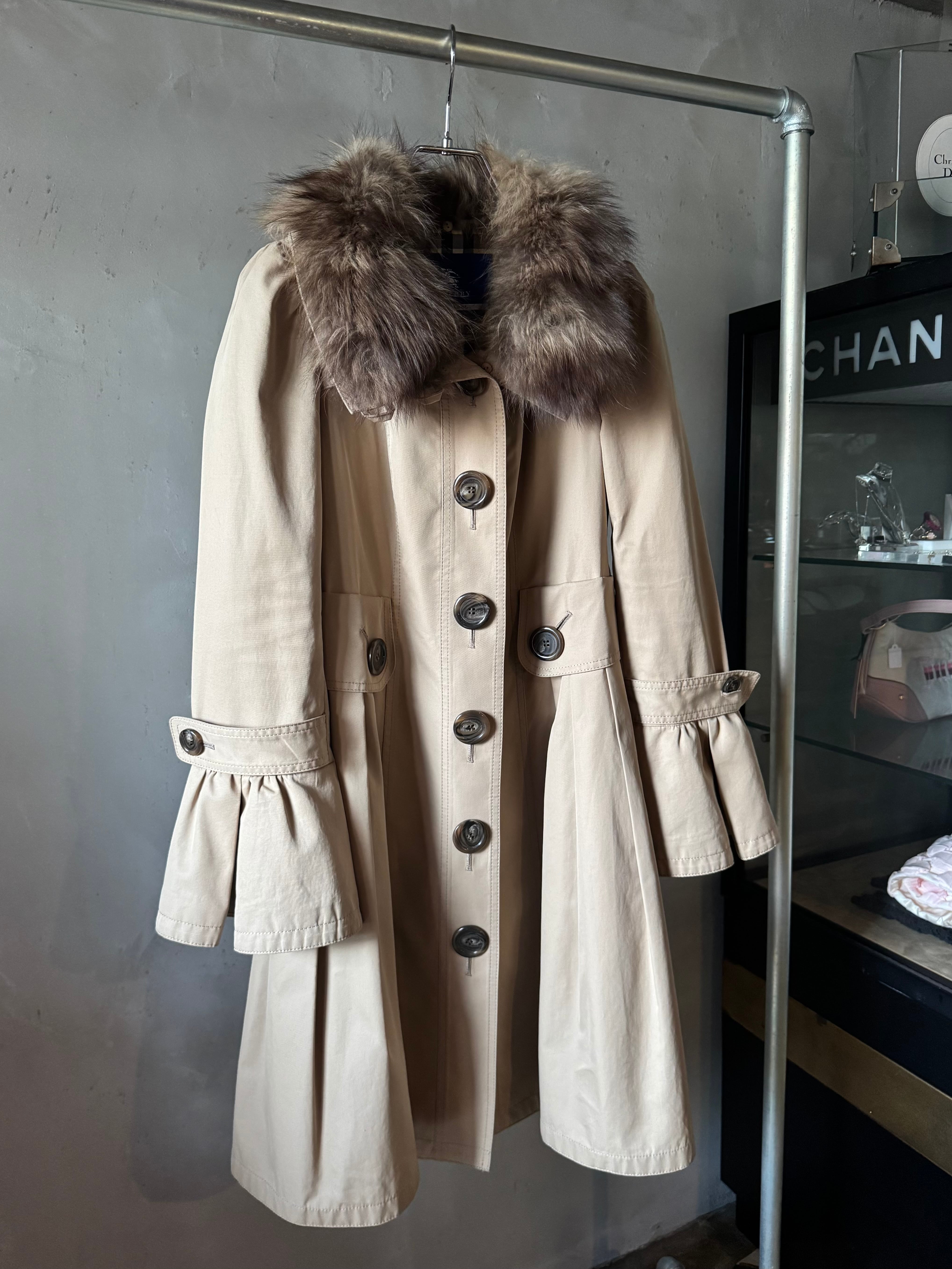 Burberry fox fur frill special trench coat