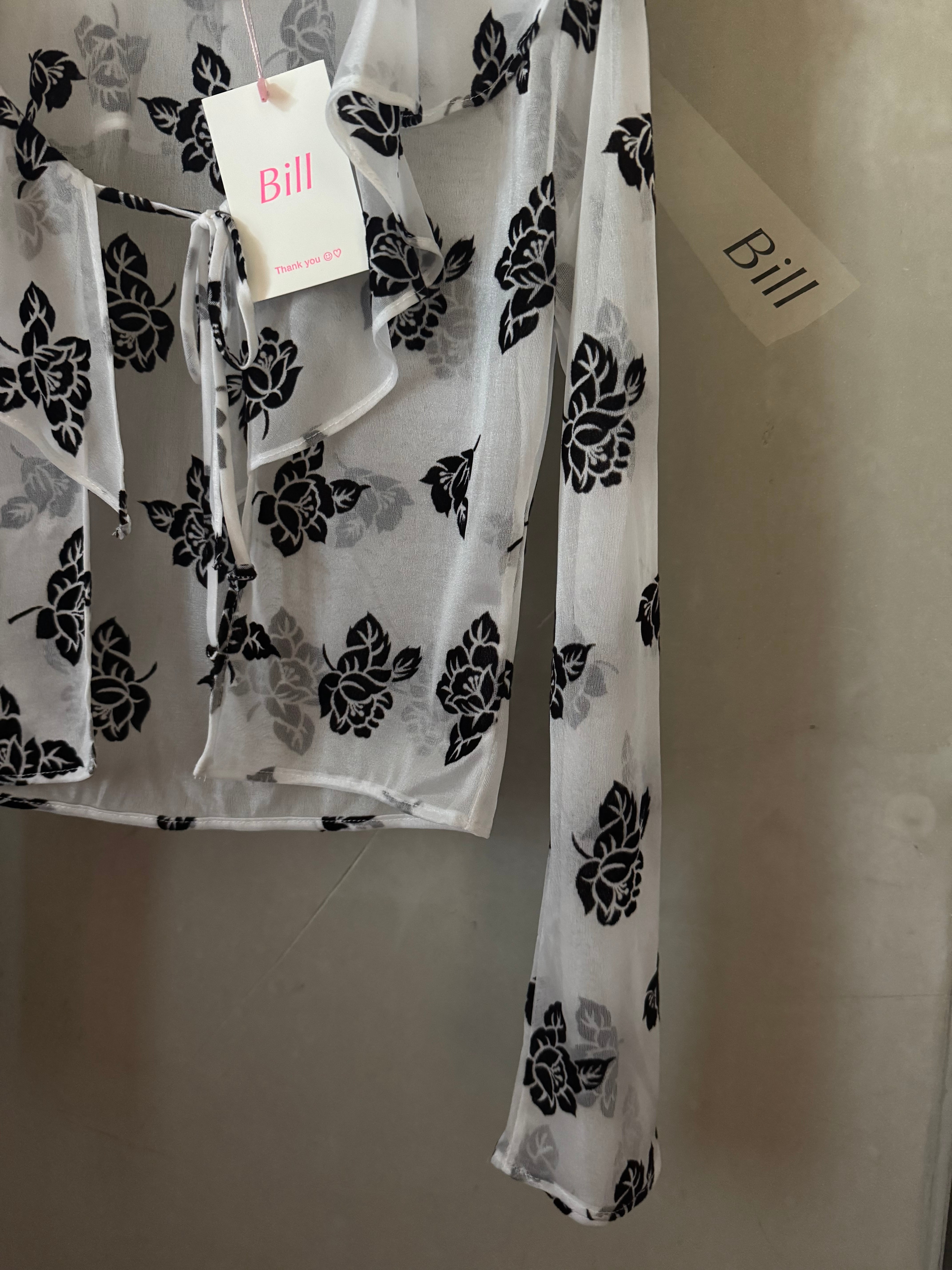フロントがリボンになっているシースルーのブラウスカーディガンです♪