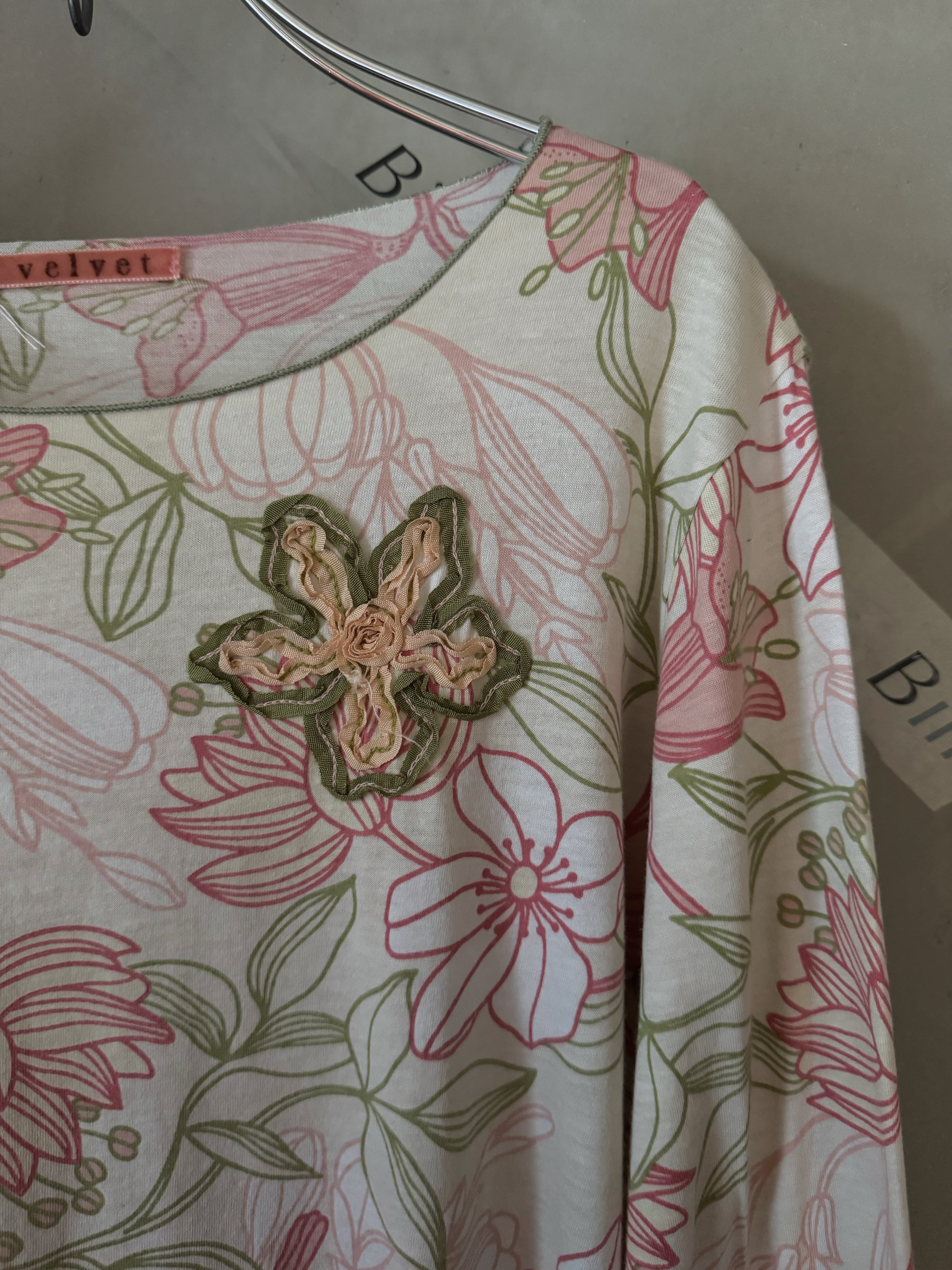 made in USA flare sleeves point embroidery flower