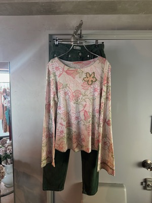 フレアの長めなお袖と色味がとっても可愛いトップスです♪ベージュやカーキの同系色で合わせてもかわいいですし、デニムに合わせてもこれからの季節にステキなアイテムです♪♪