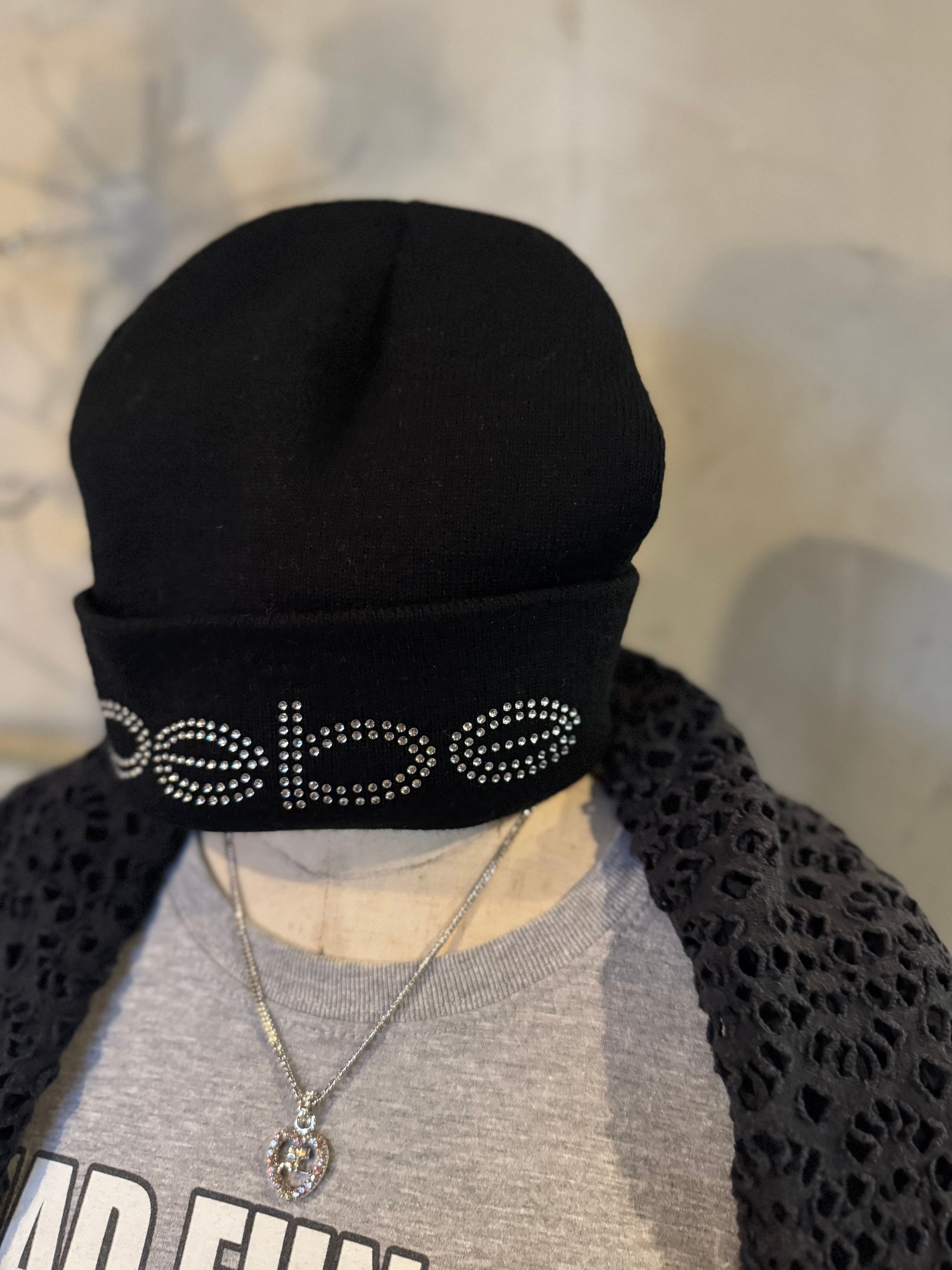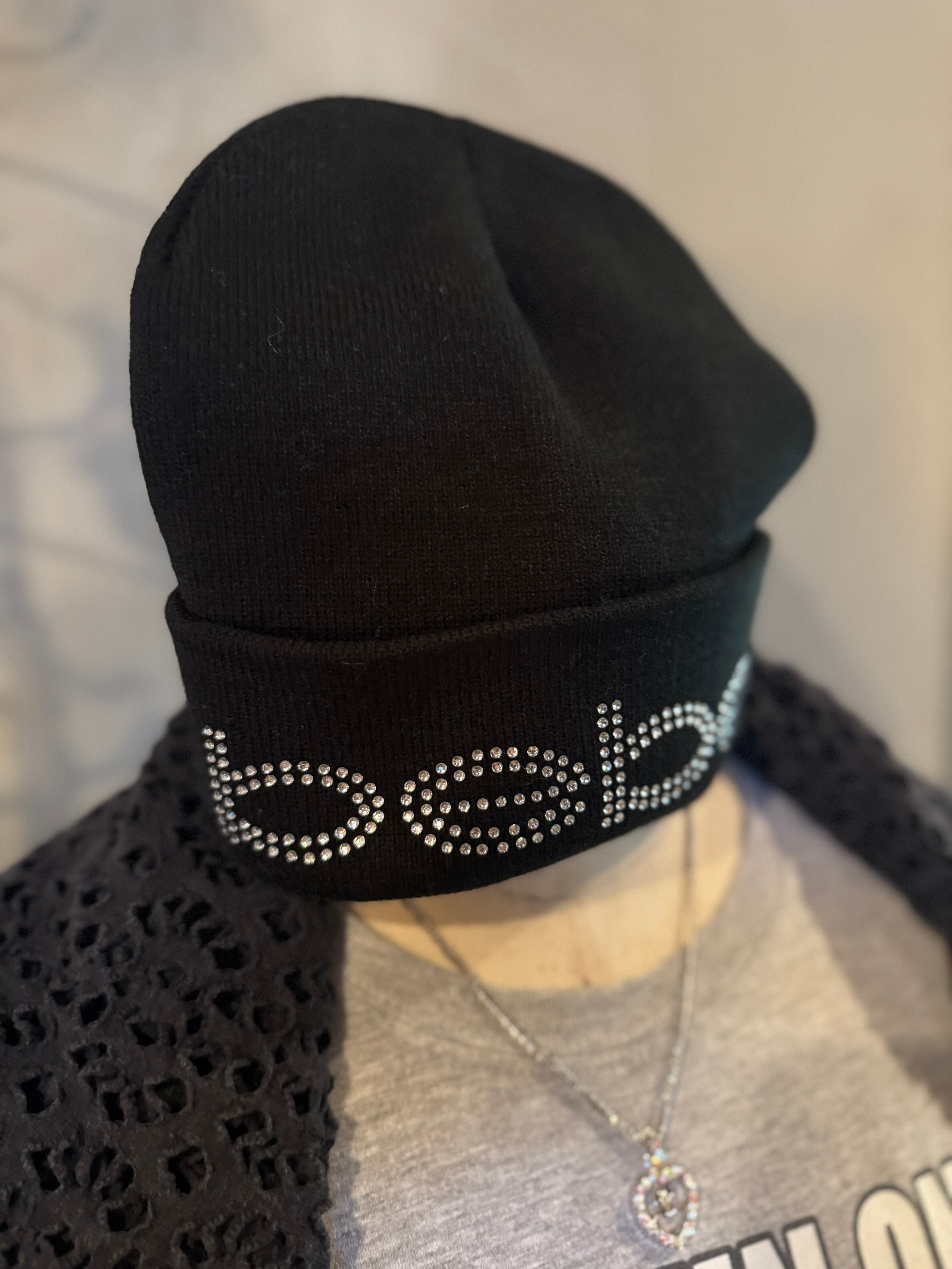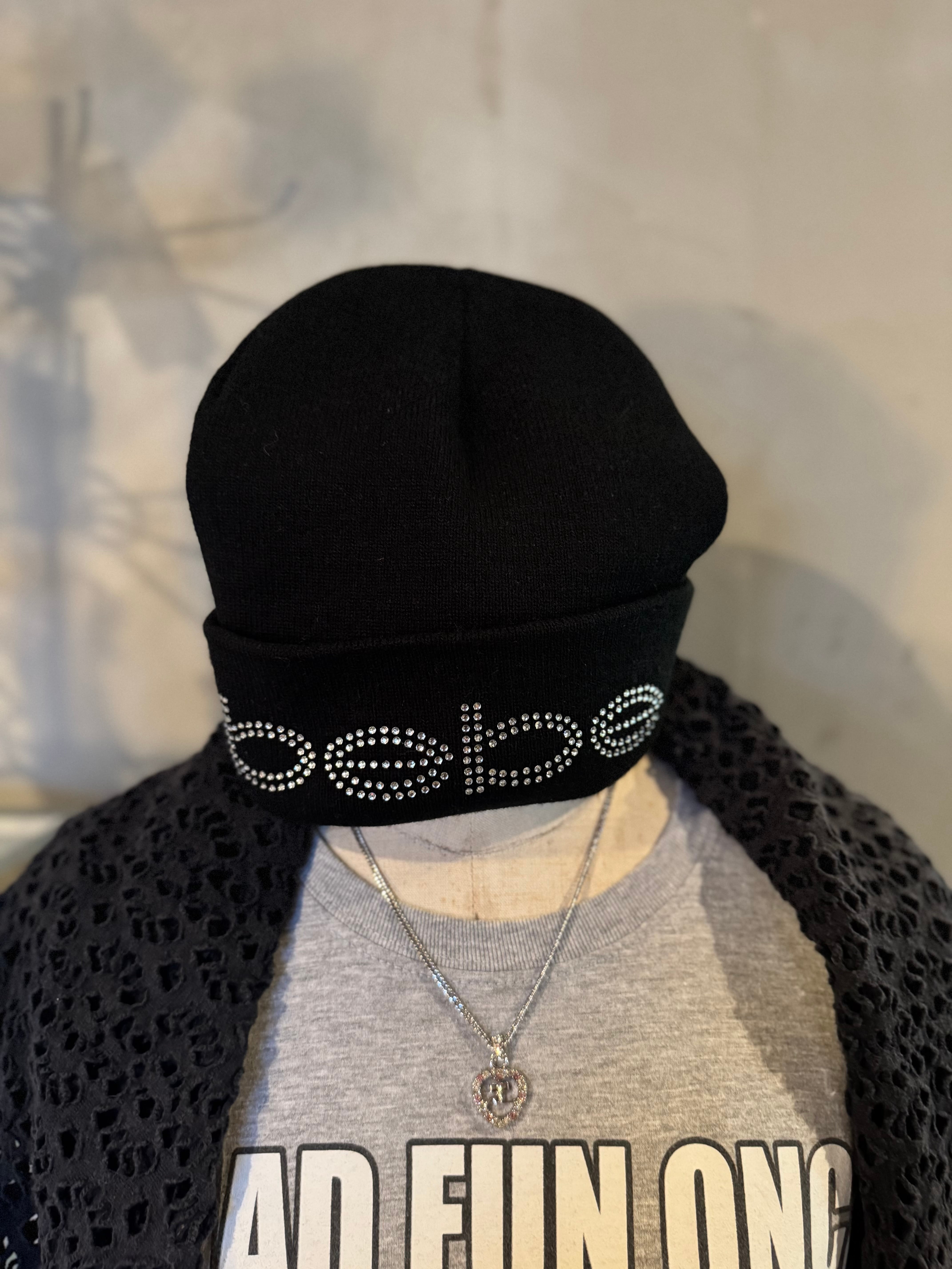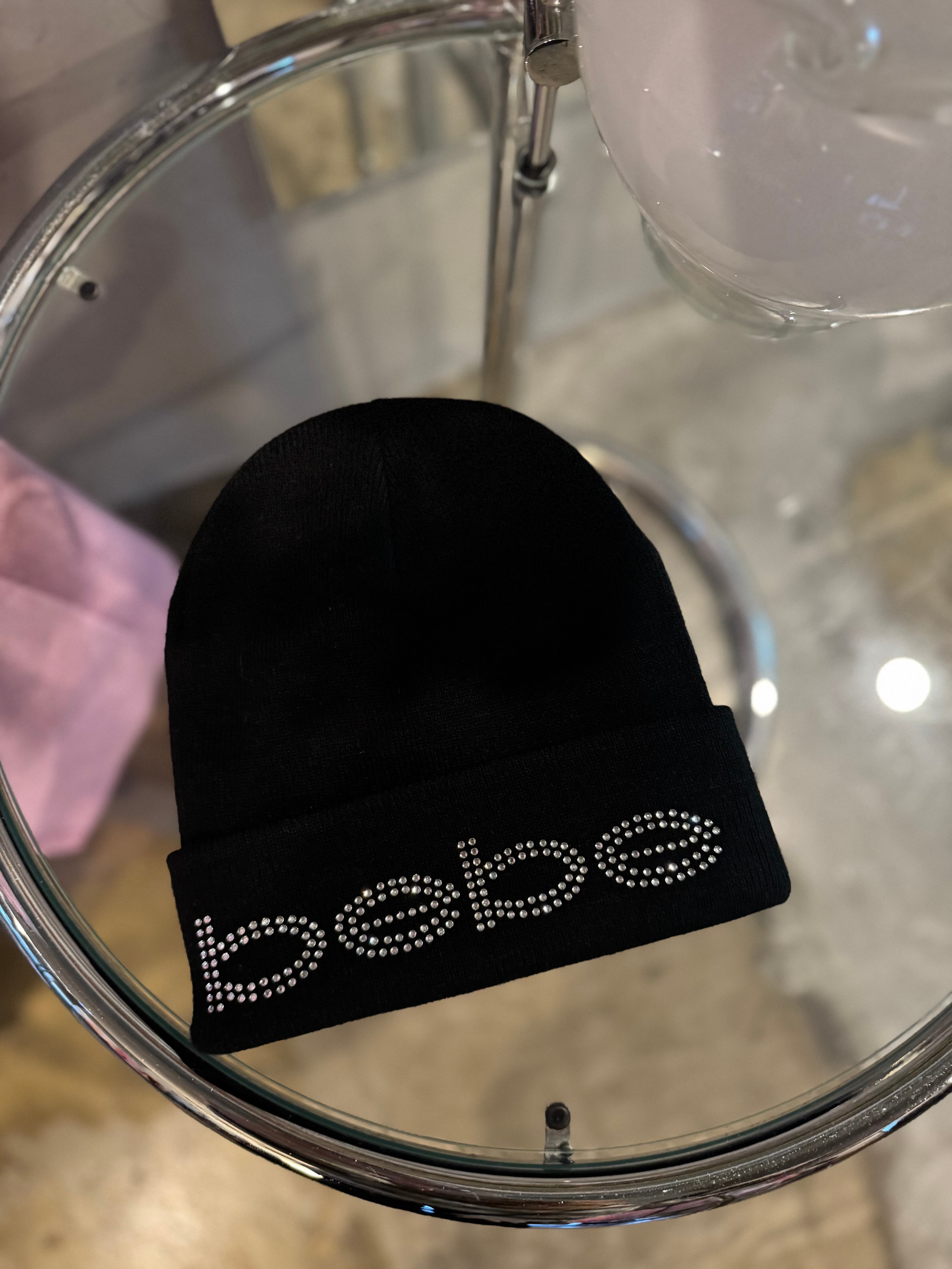 bebe kirakira logo black knit hat