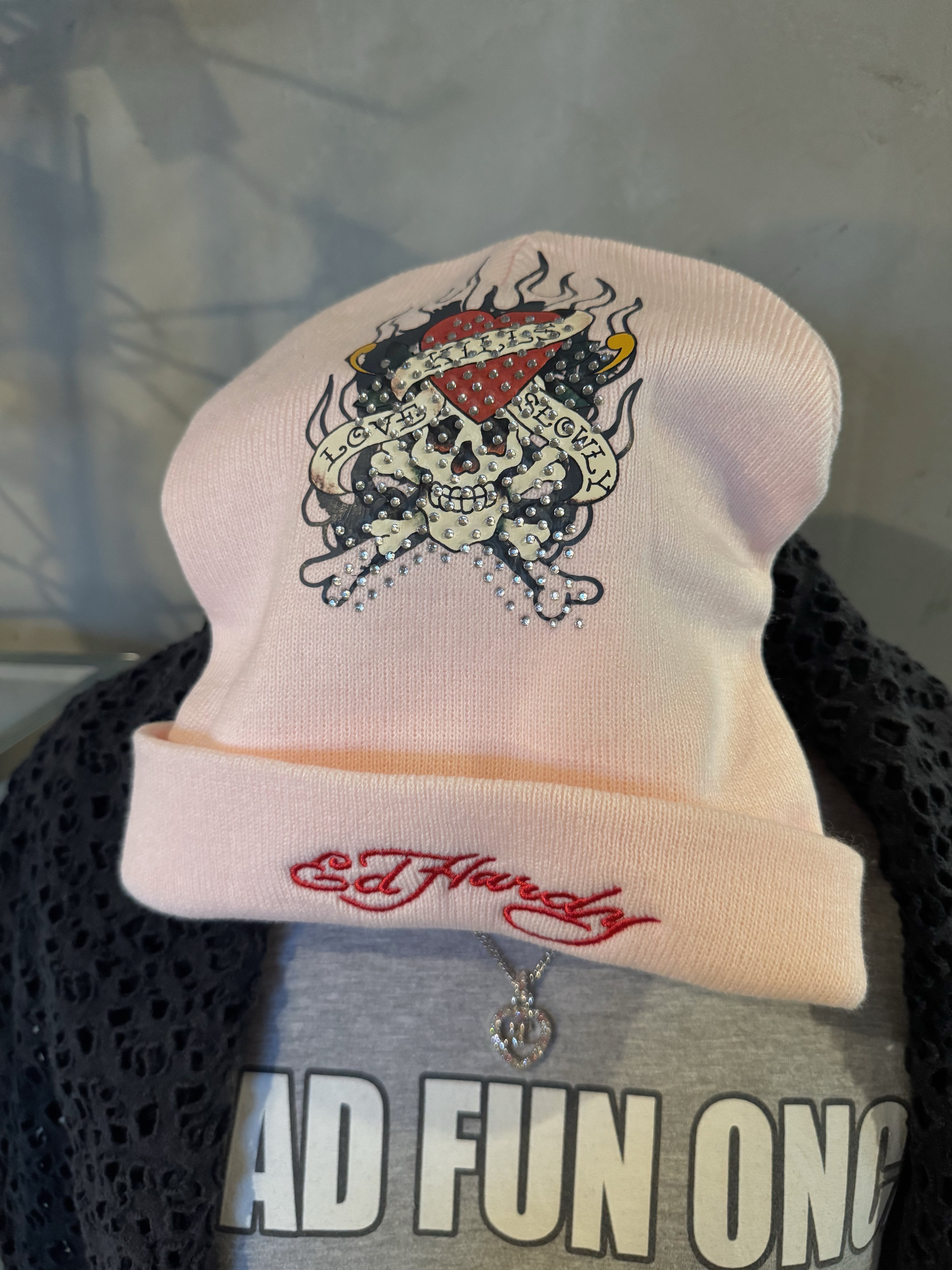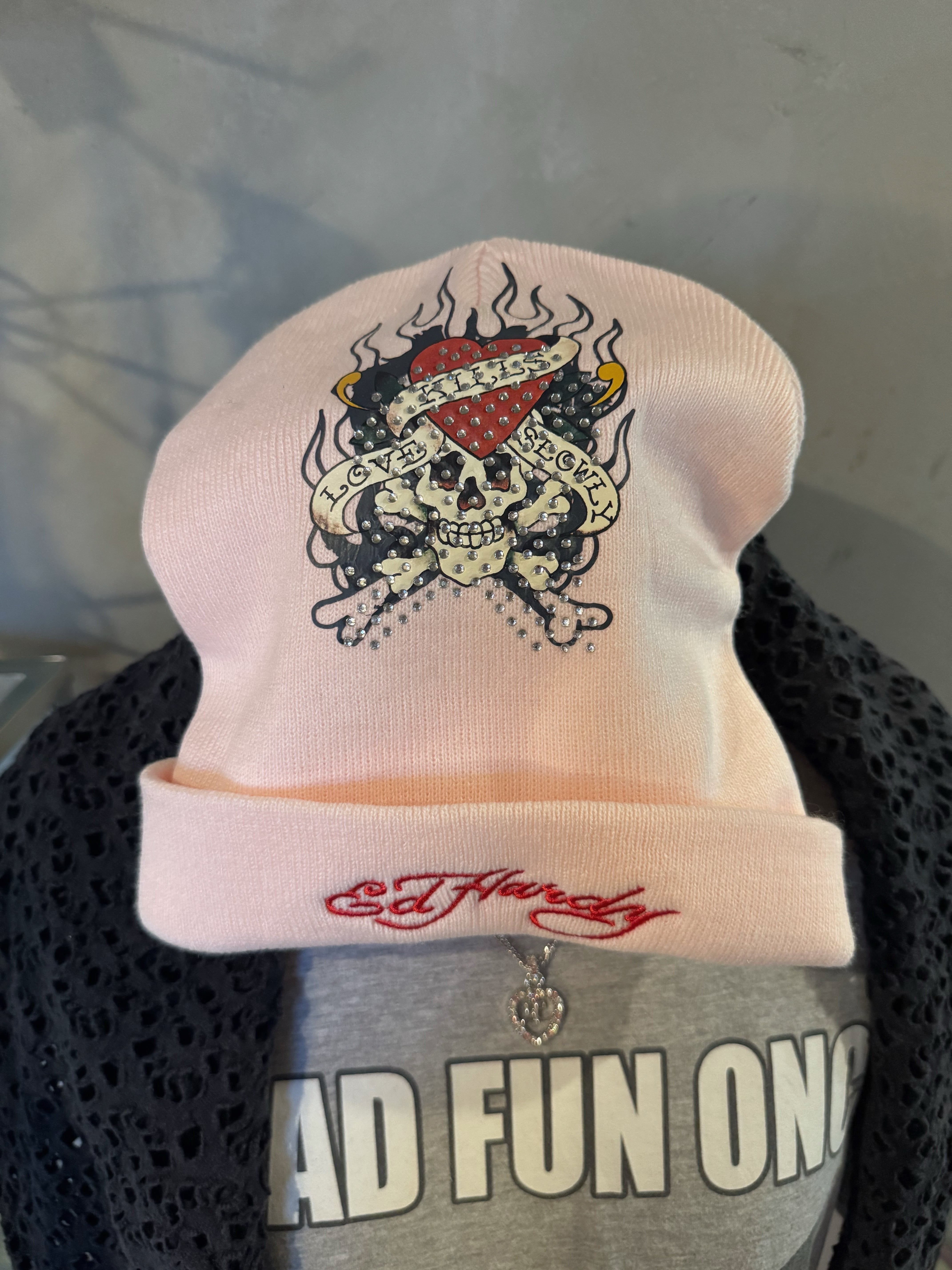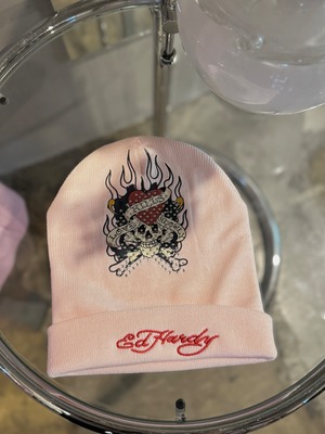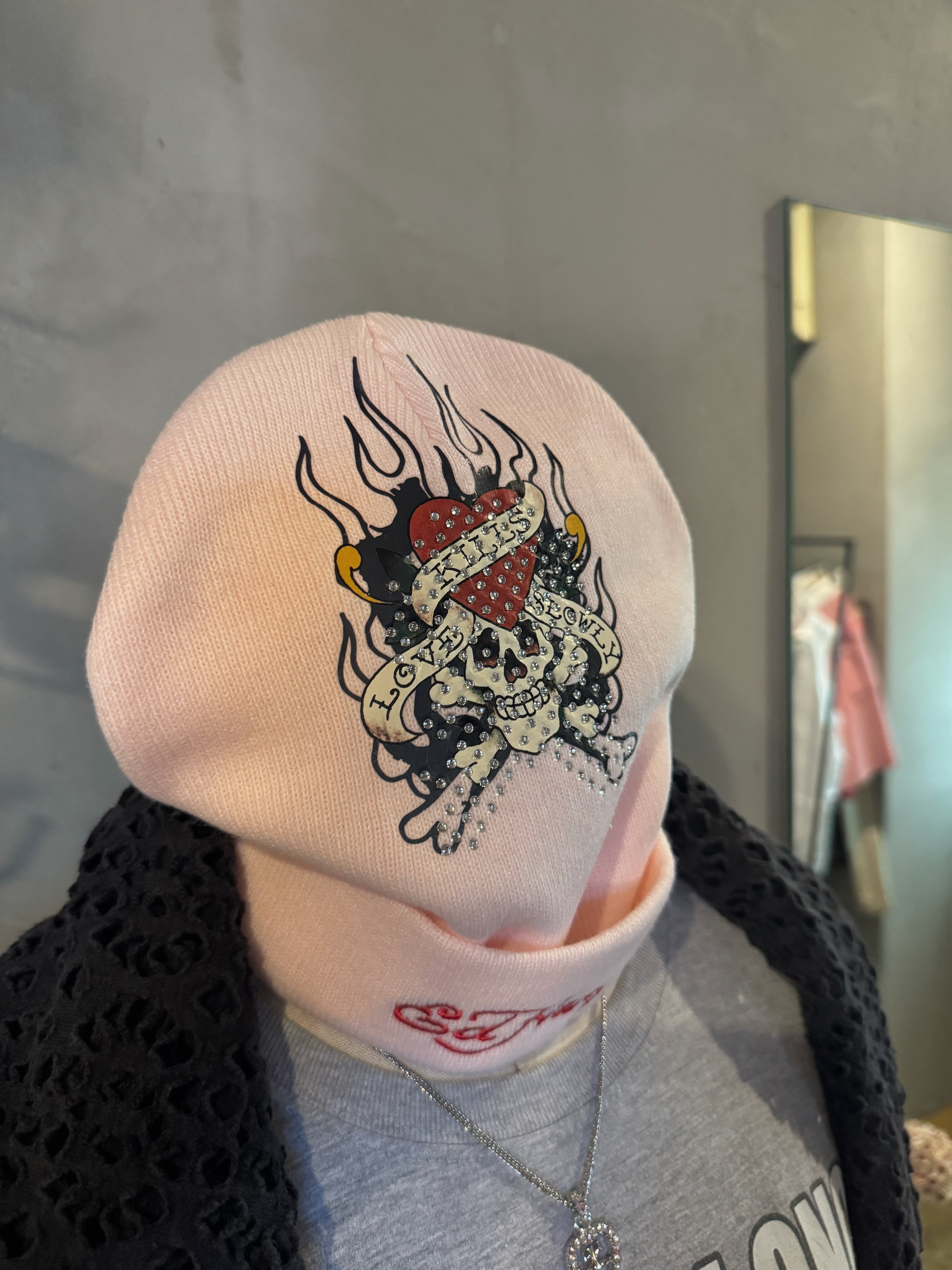 Ed Hardy kirakira scull heart knit hat(baby pink/black)