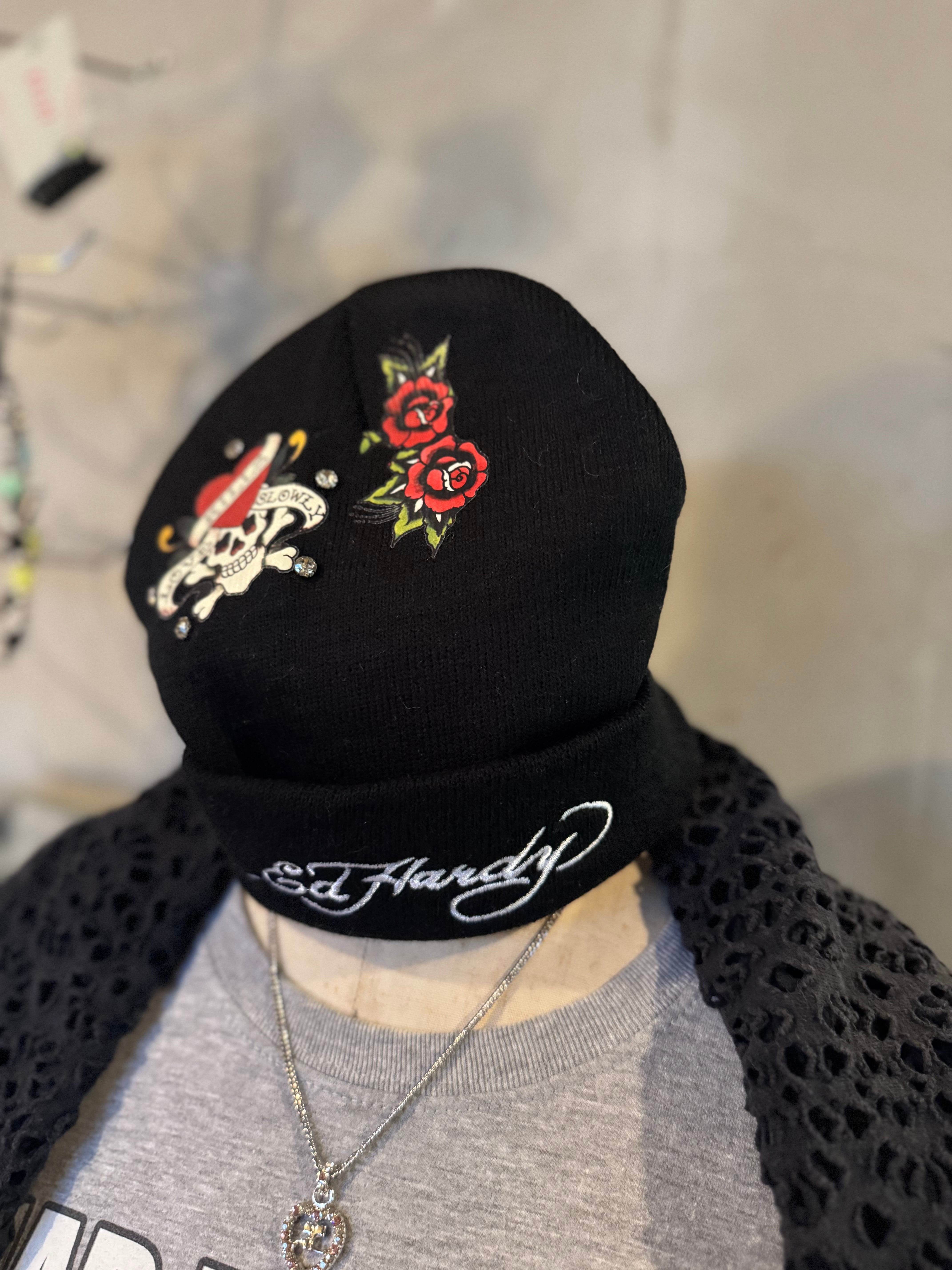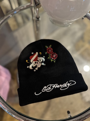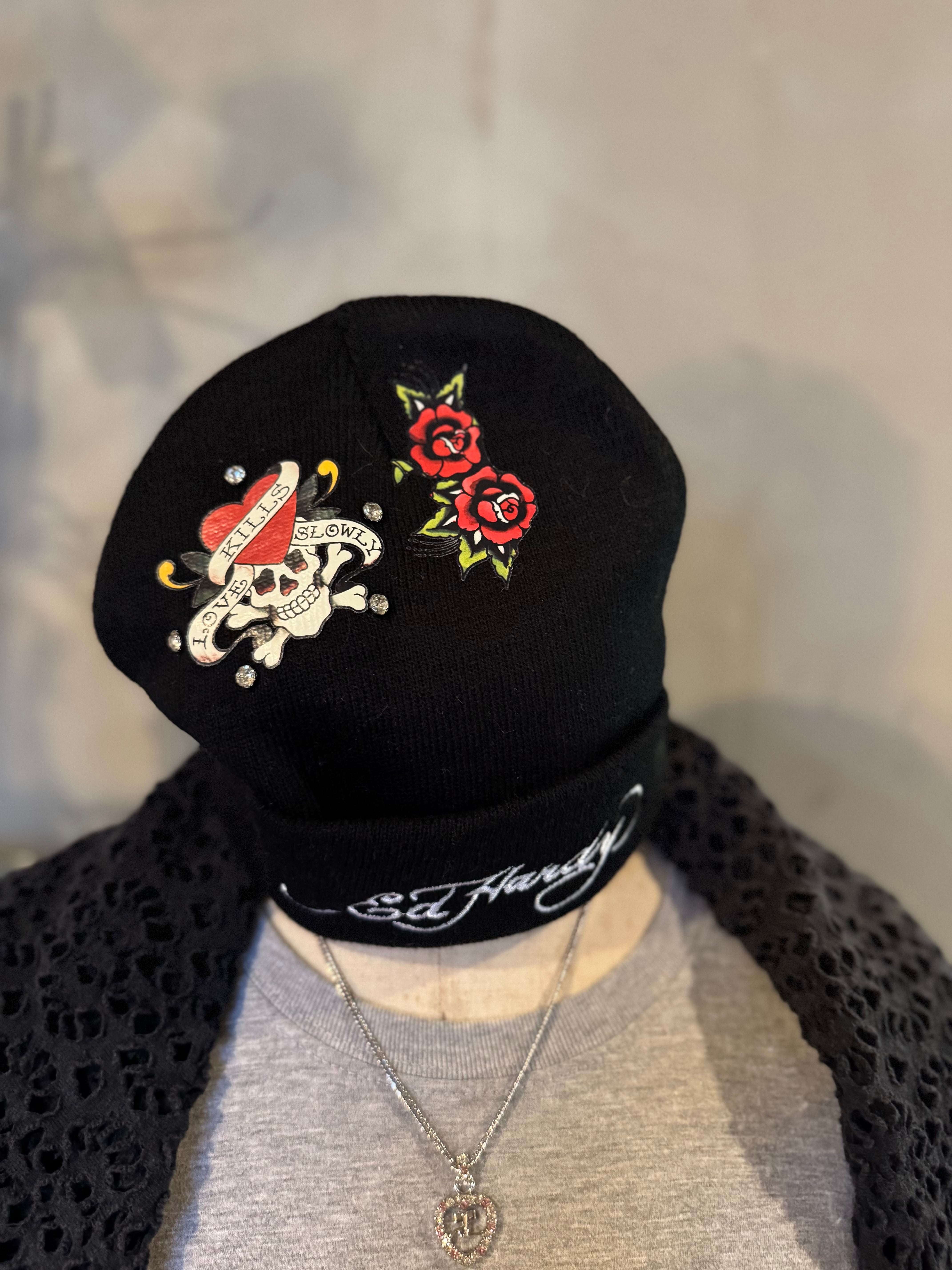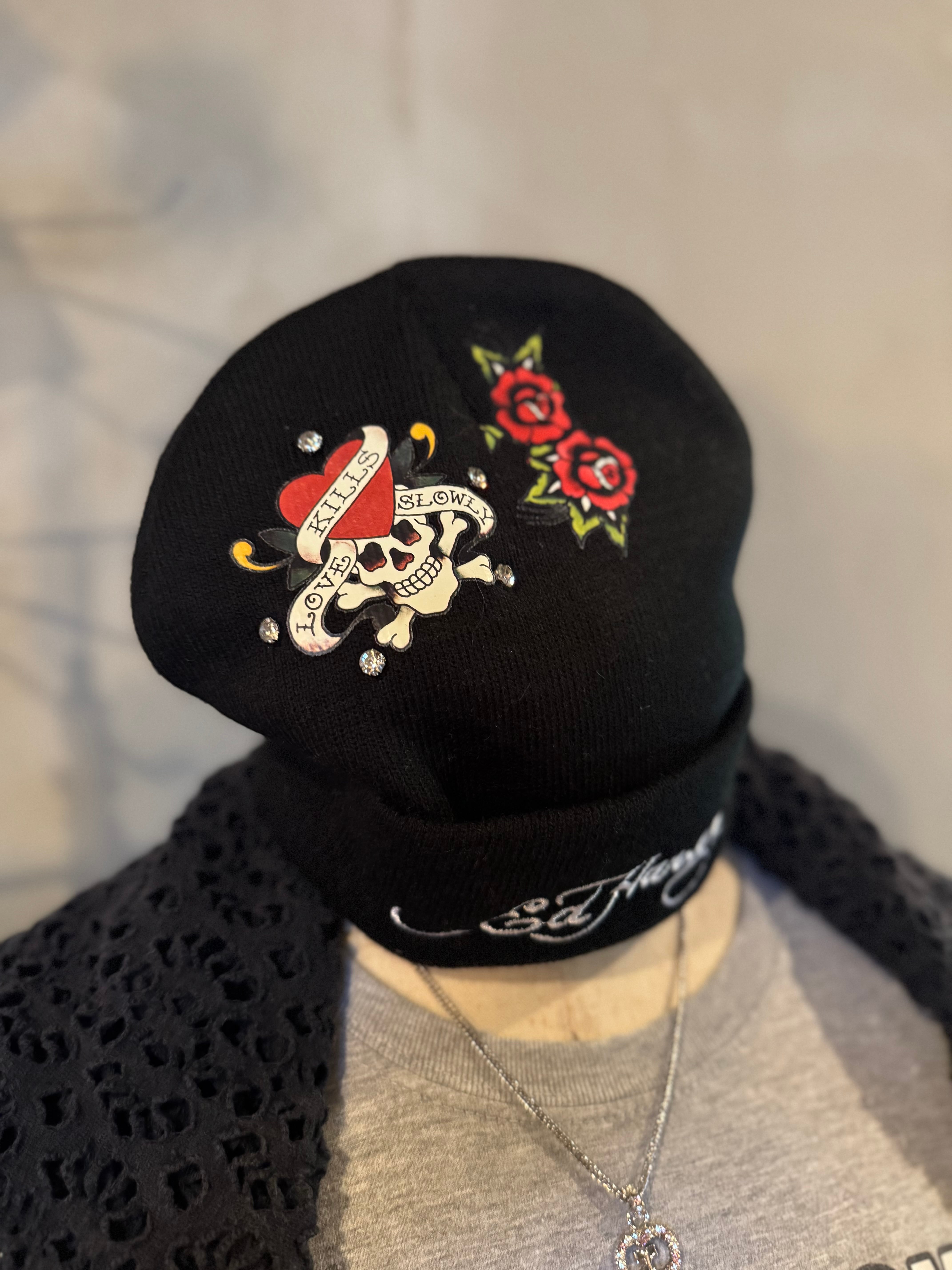 Ed Hardy kirakira scull heart knit hat(baby pink/black)
