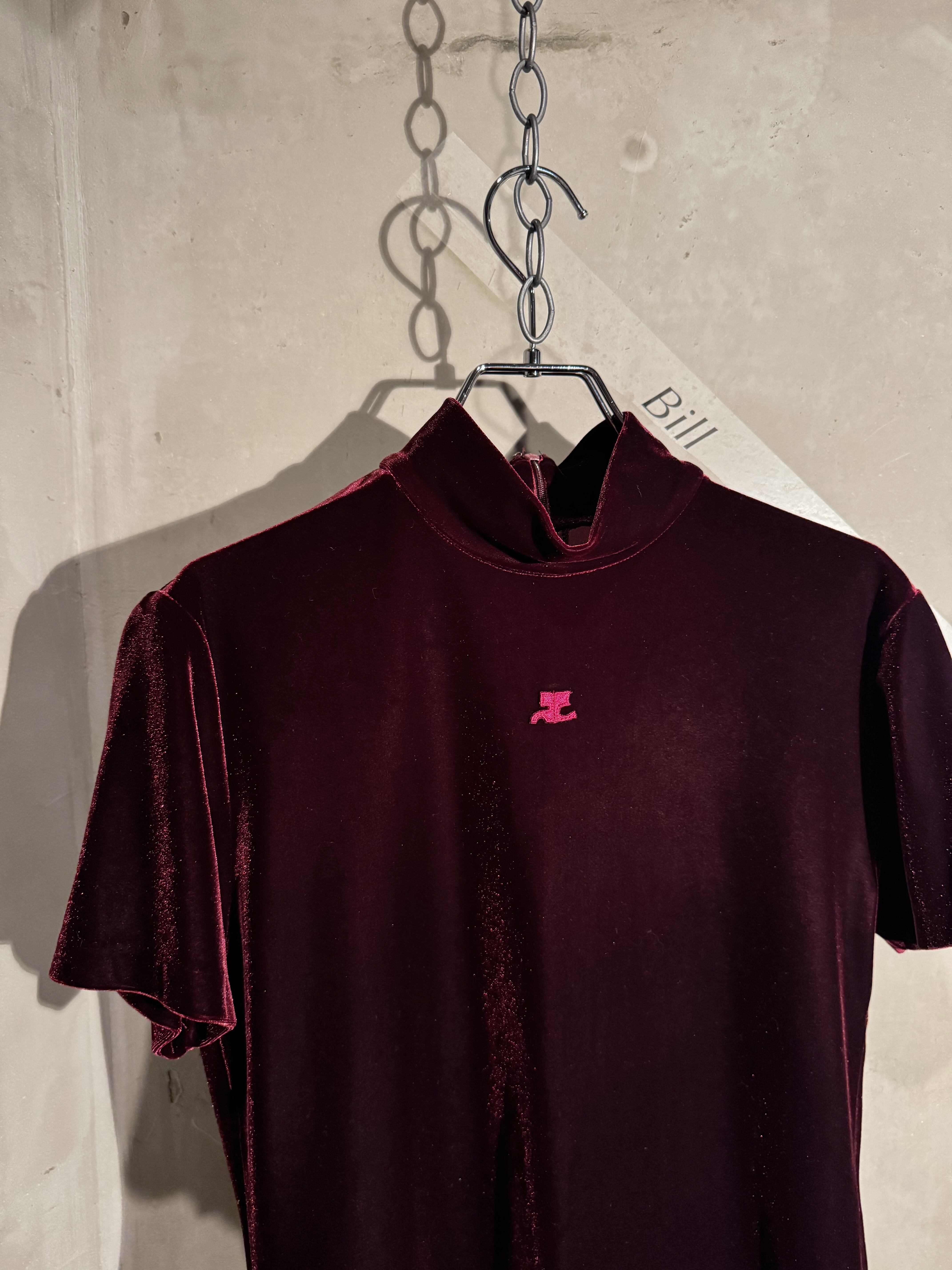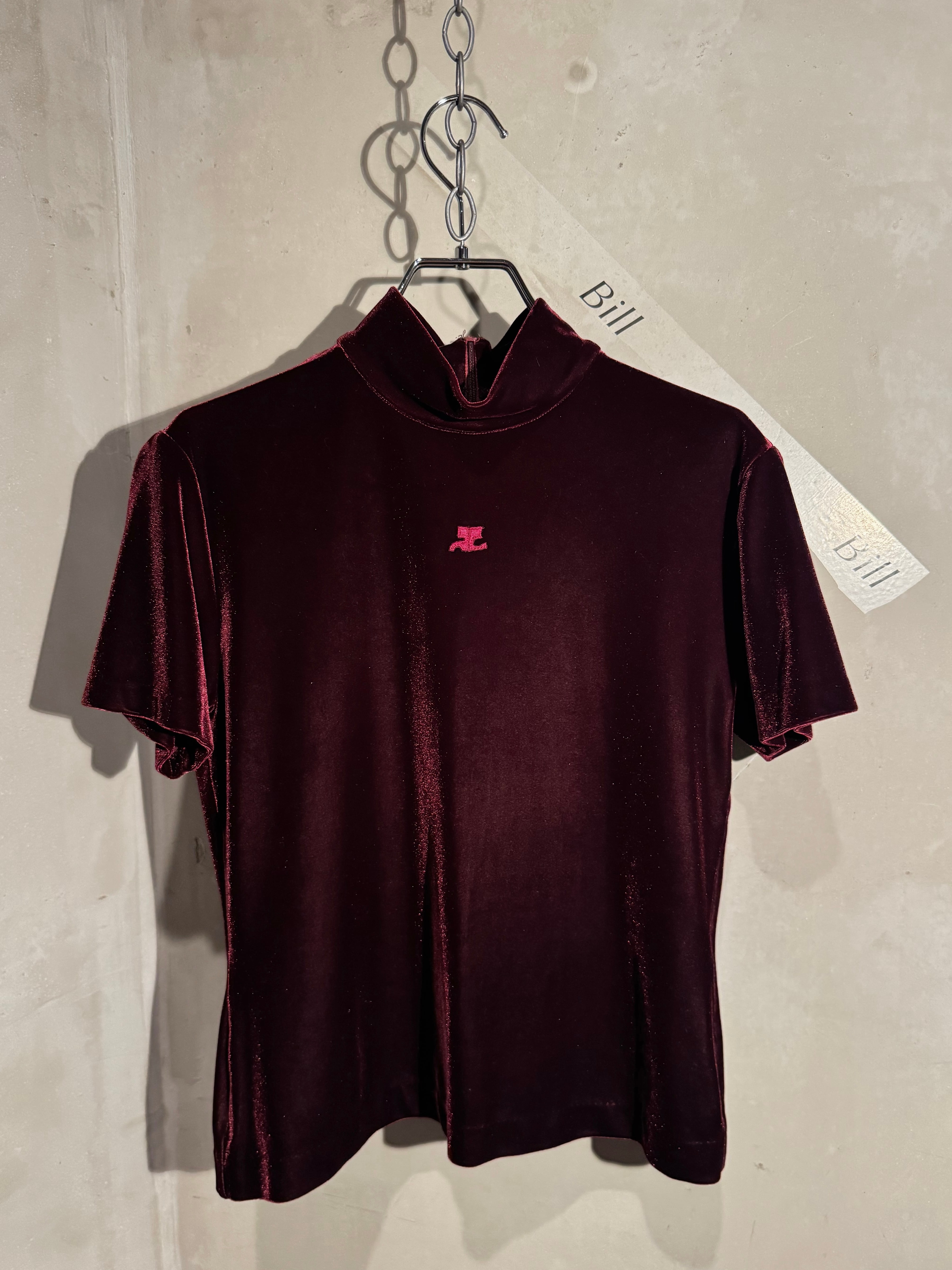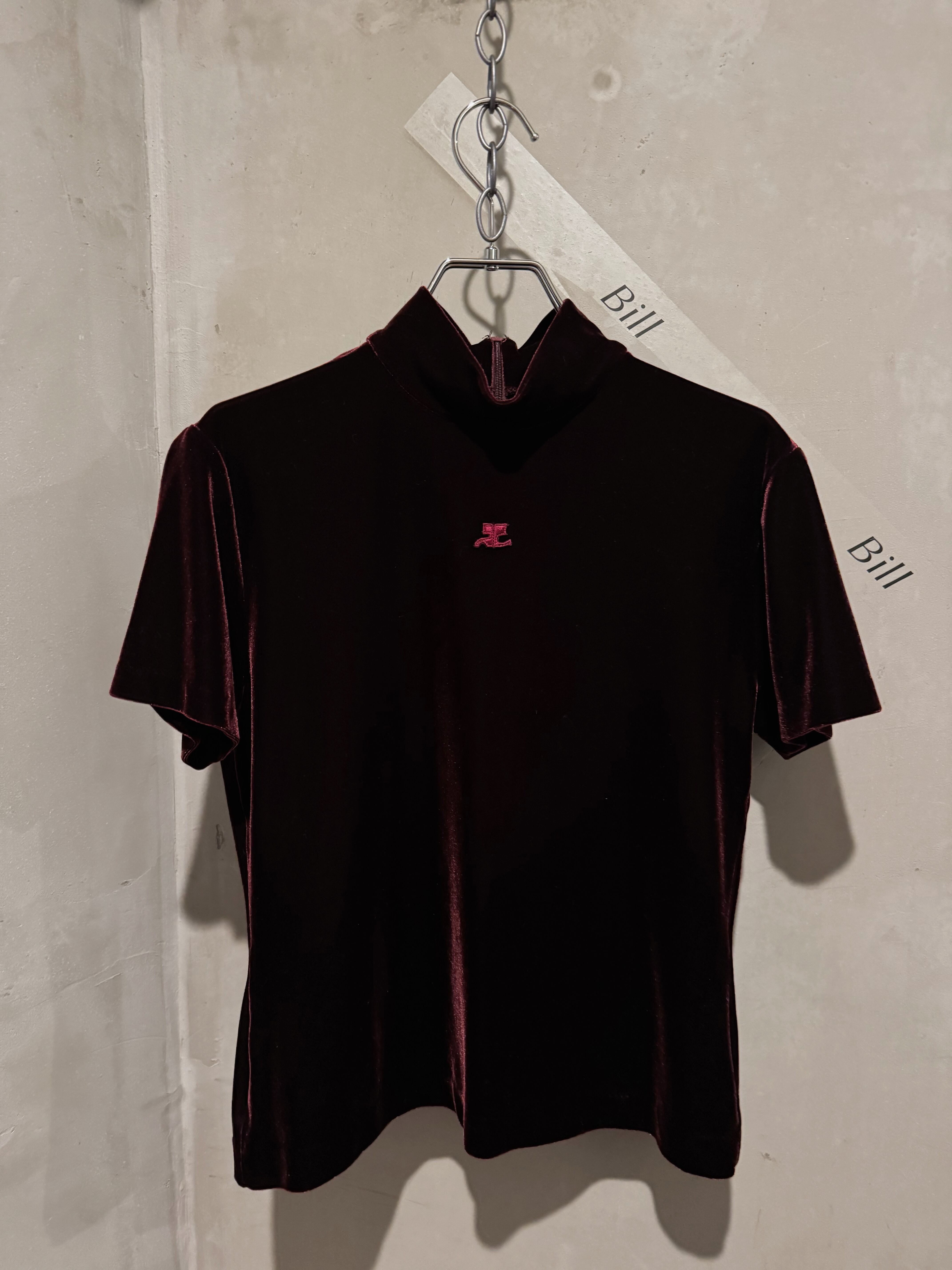 Courrèges kirakira wine red logo velours top