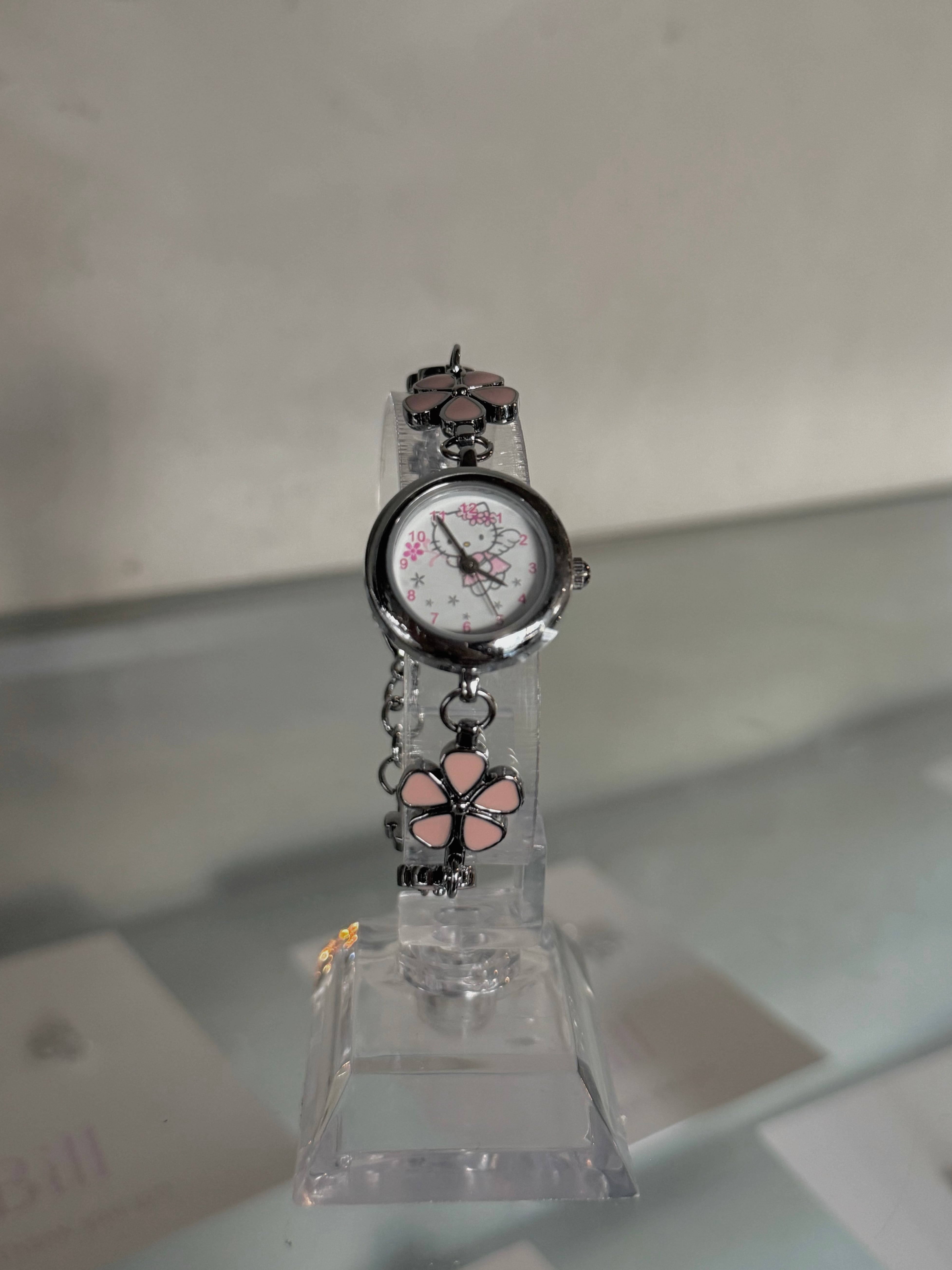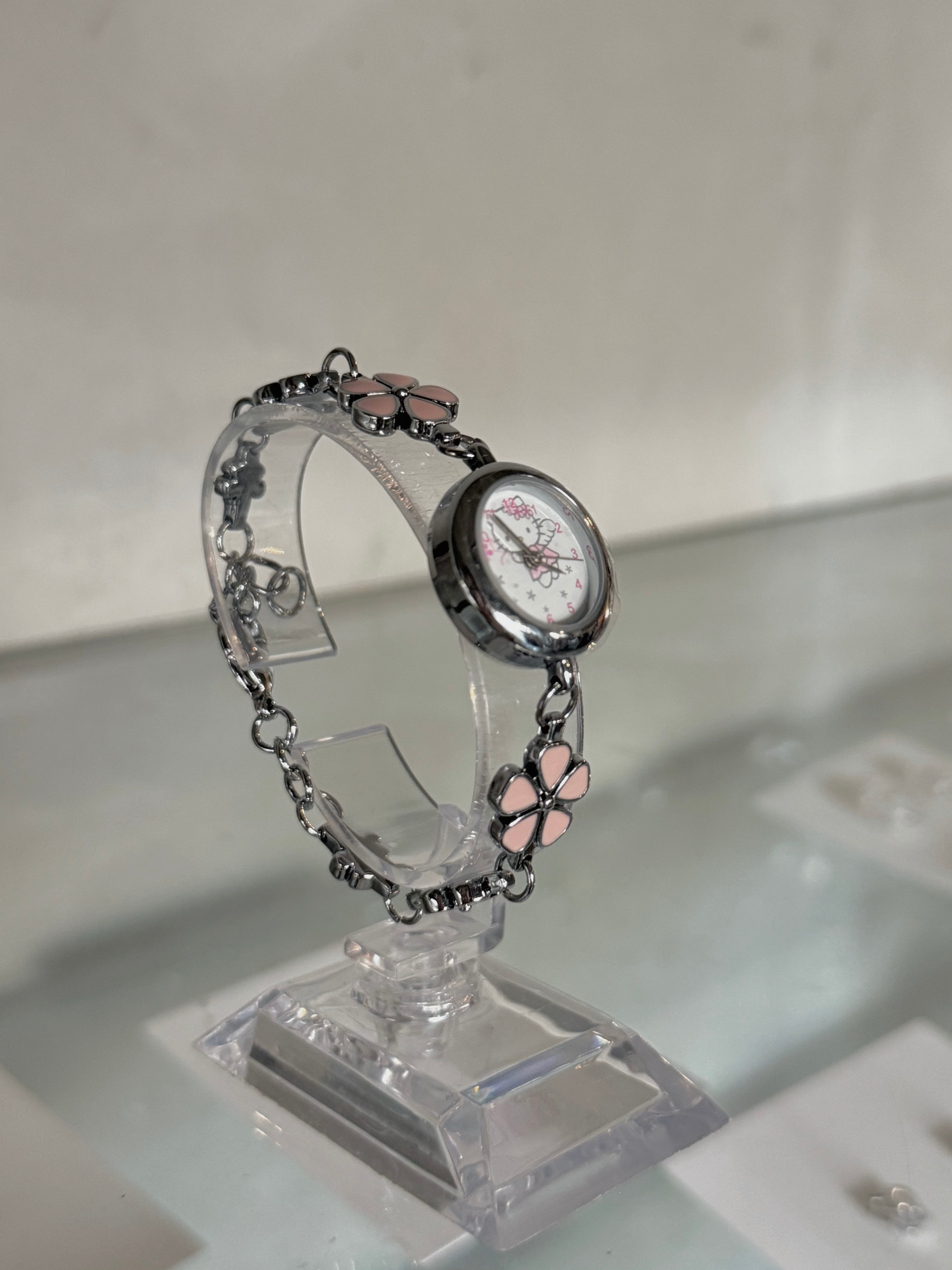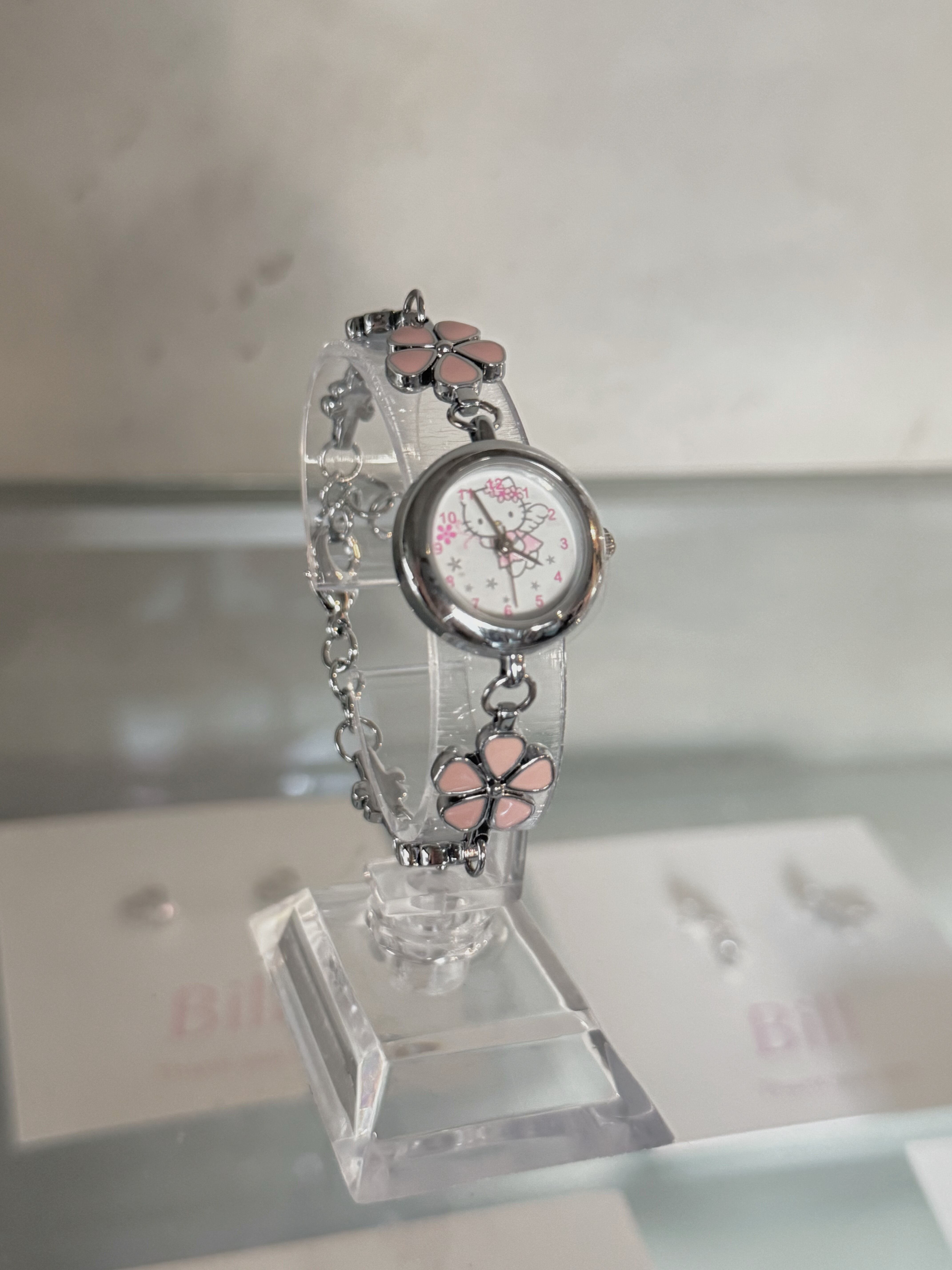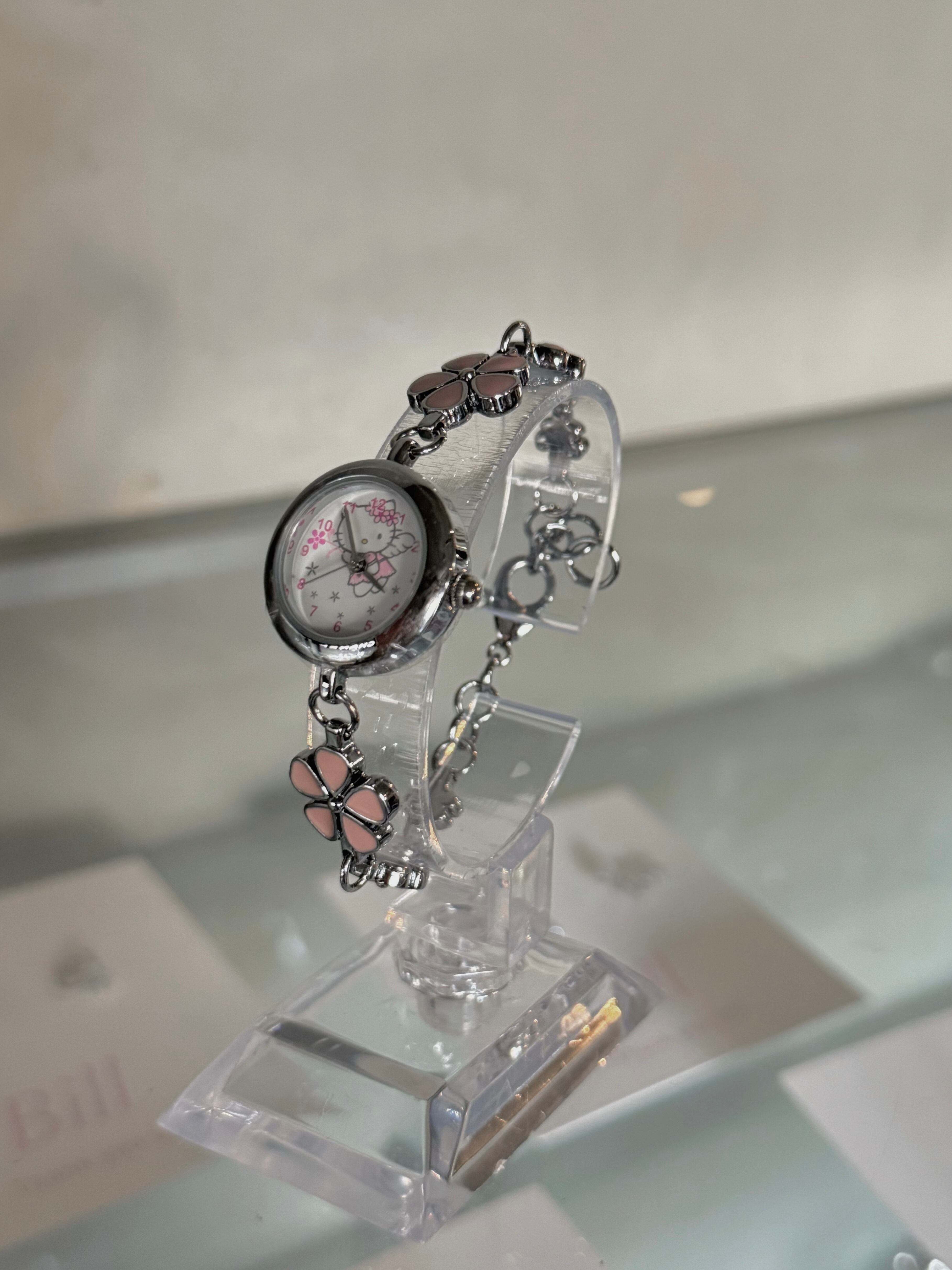 HELLO KITTY angel kitty pink flower chain wristwatch(dead stock)