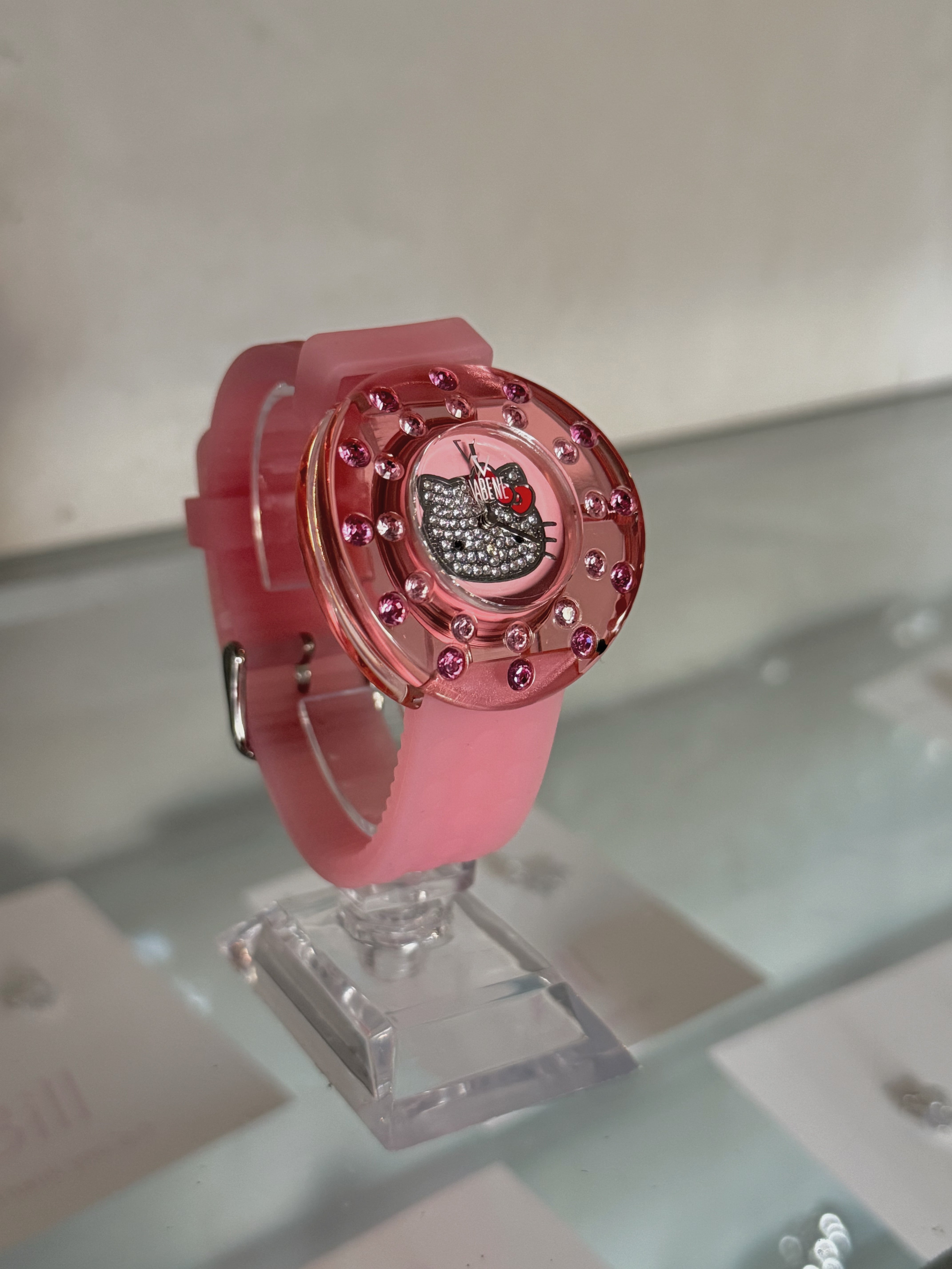 HELLO KITTY kirakira kitty clear rhinestone face wristwatch(dead stock)