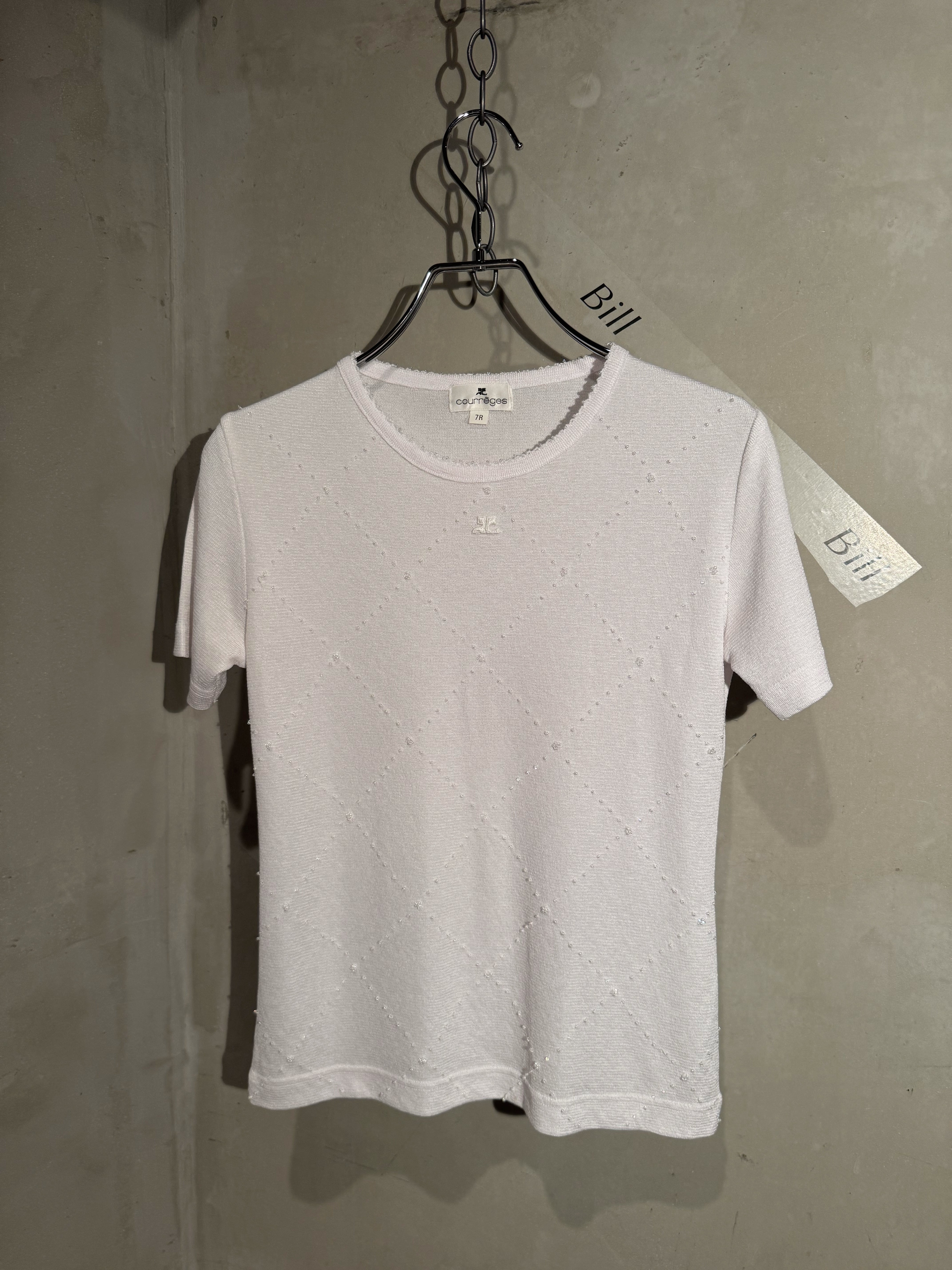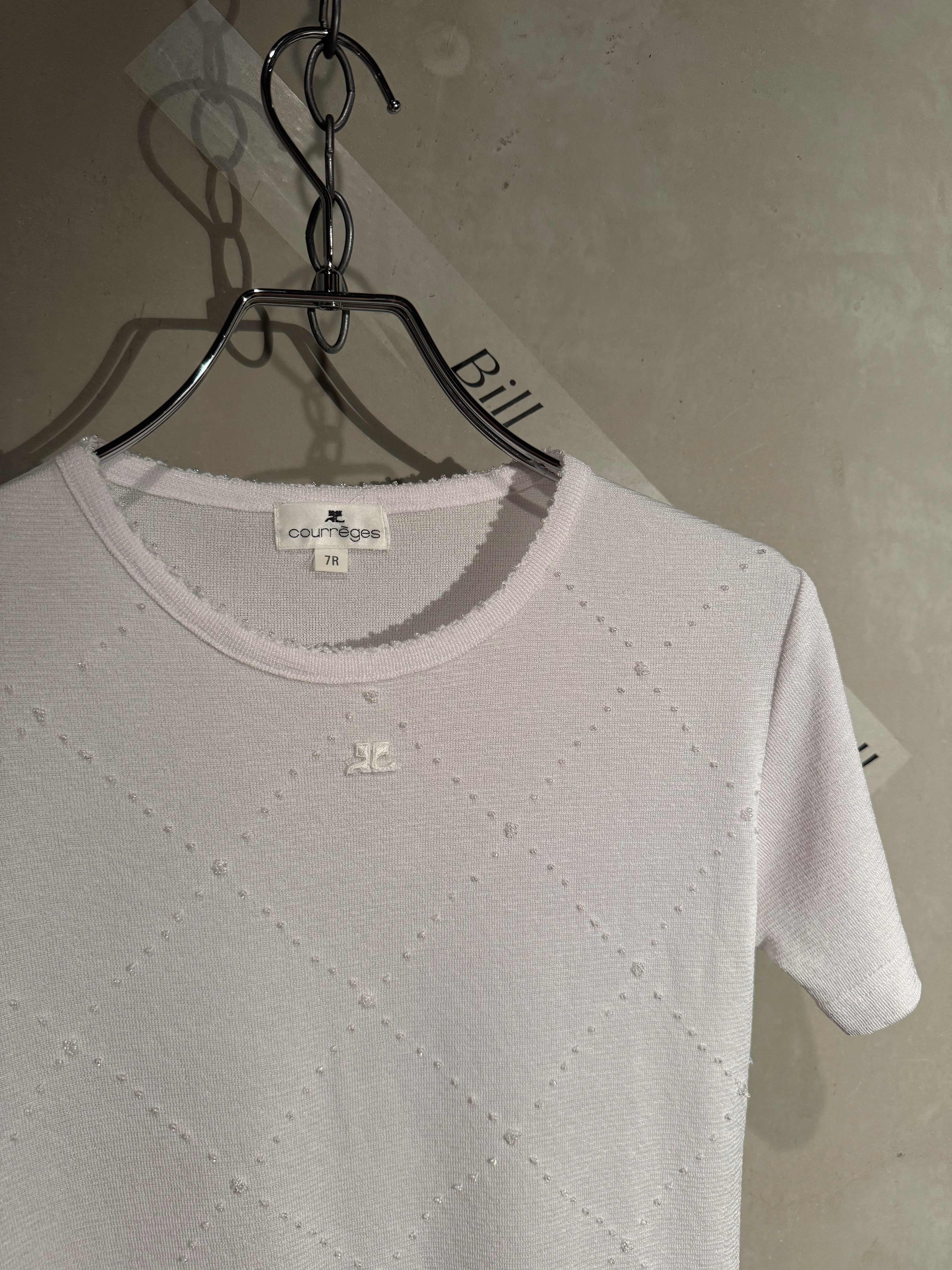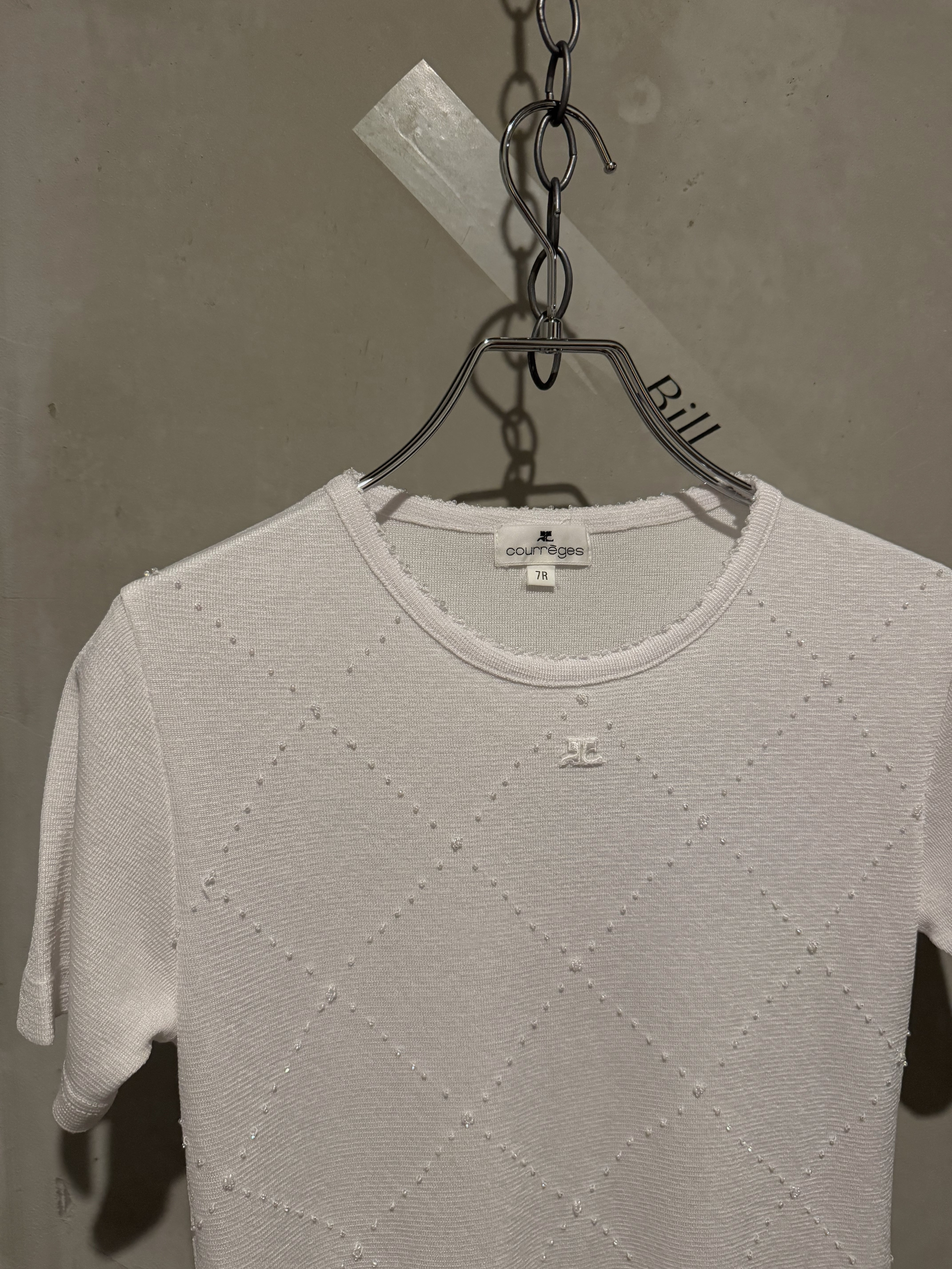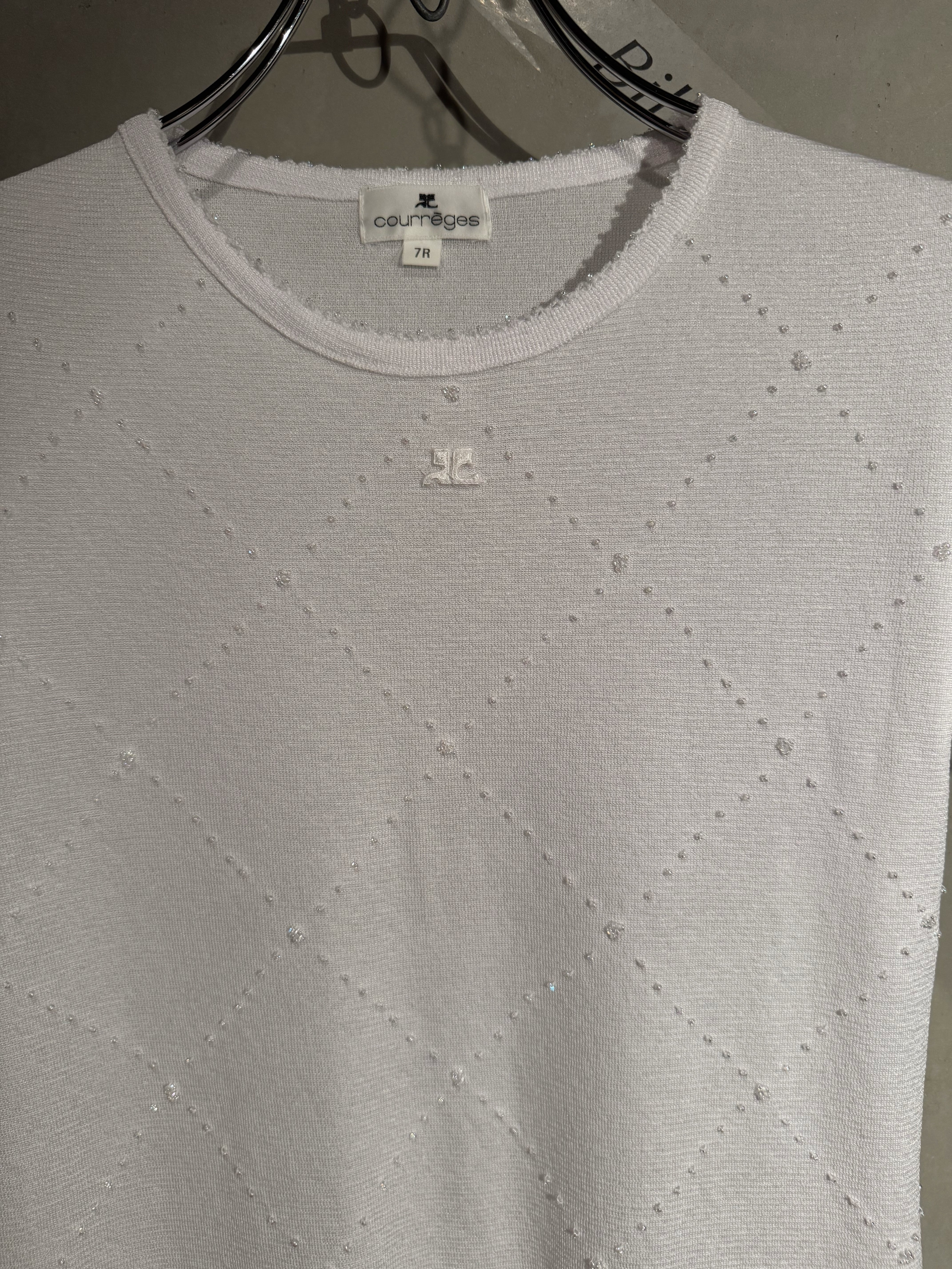 Courrèges kirakira beads logo white summer knit