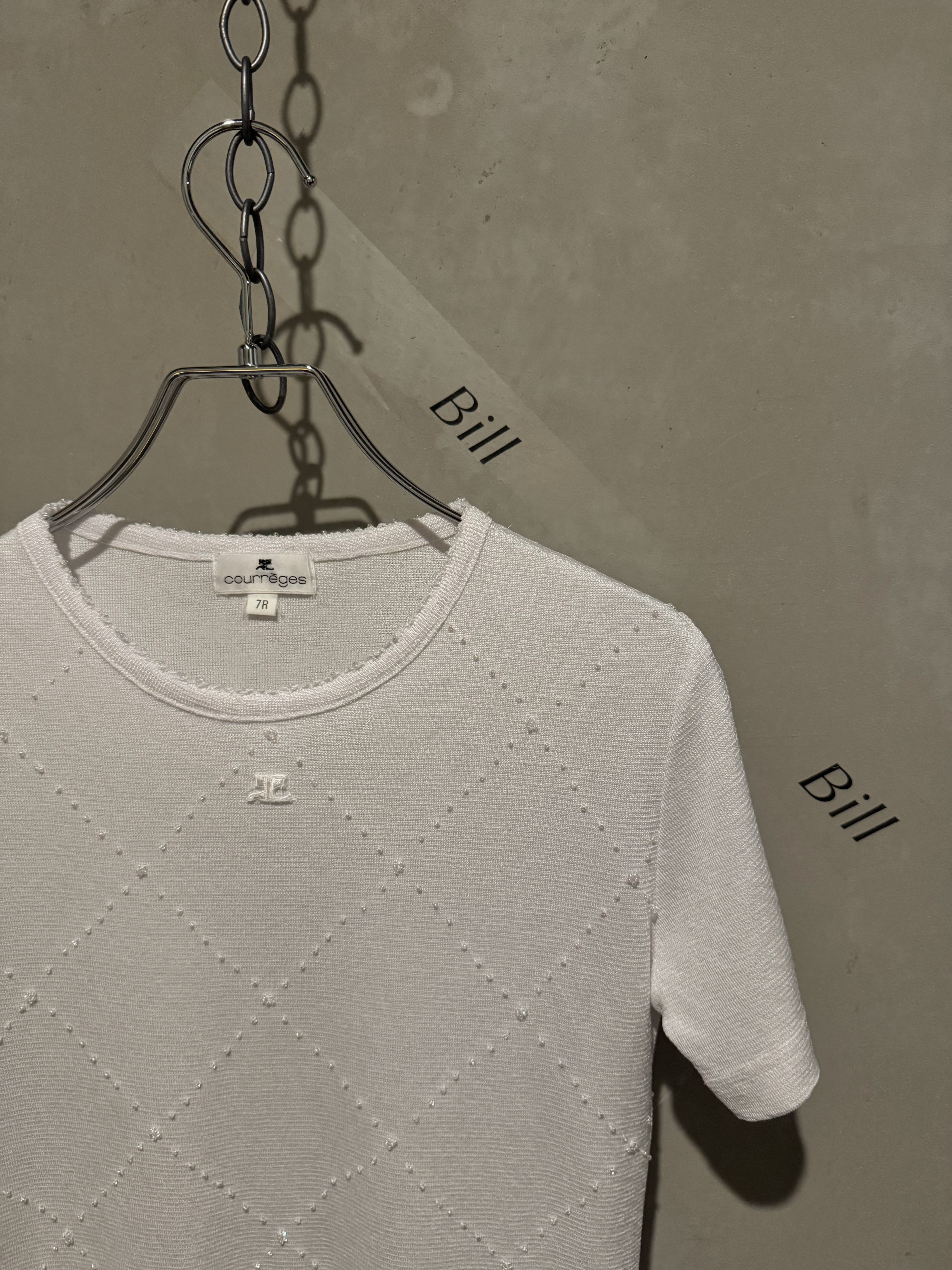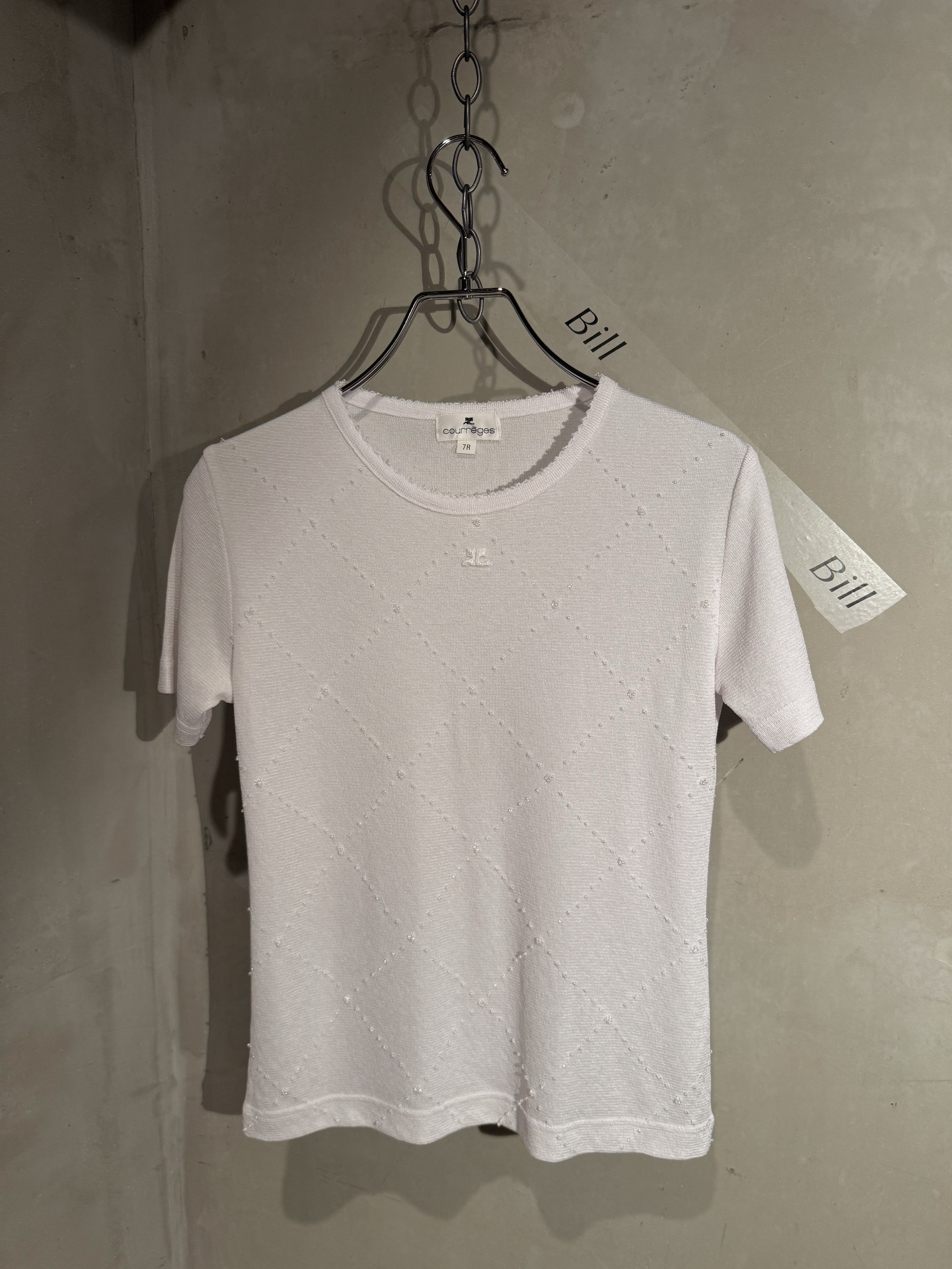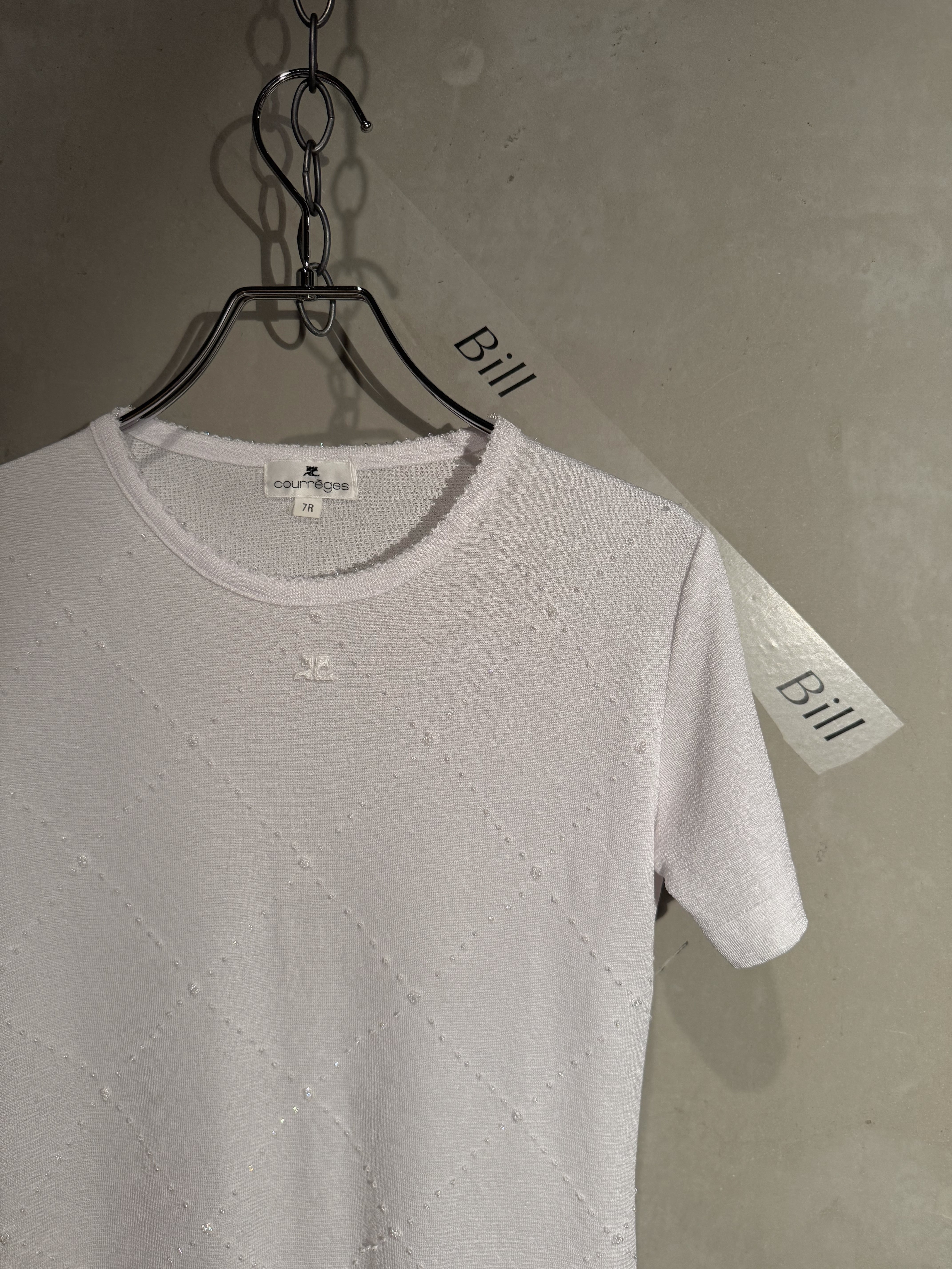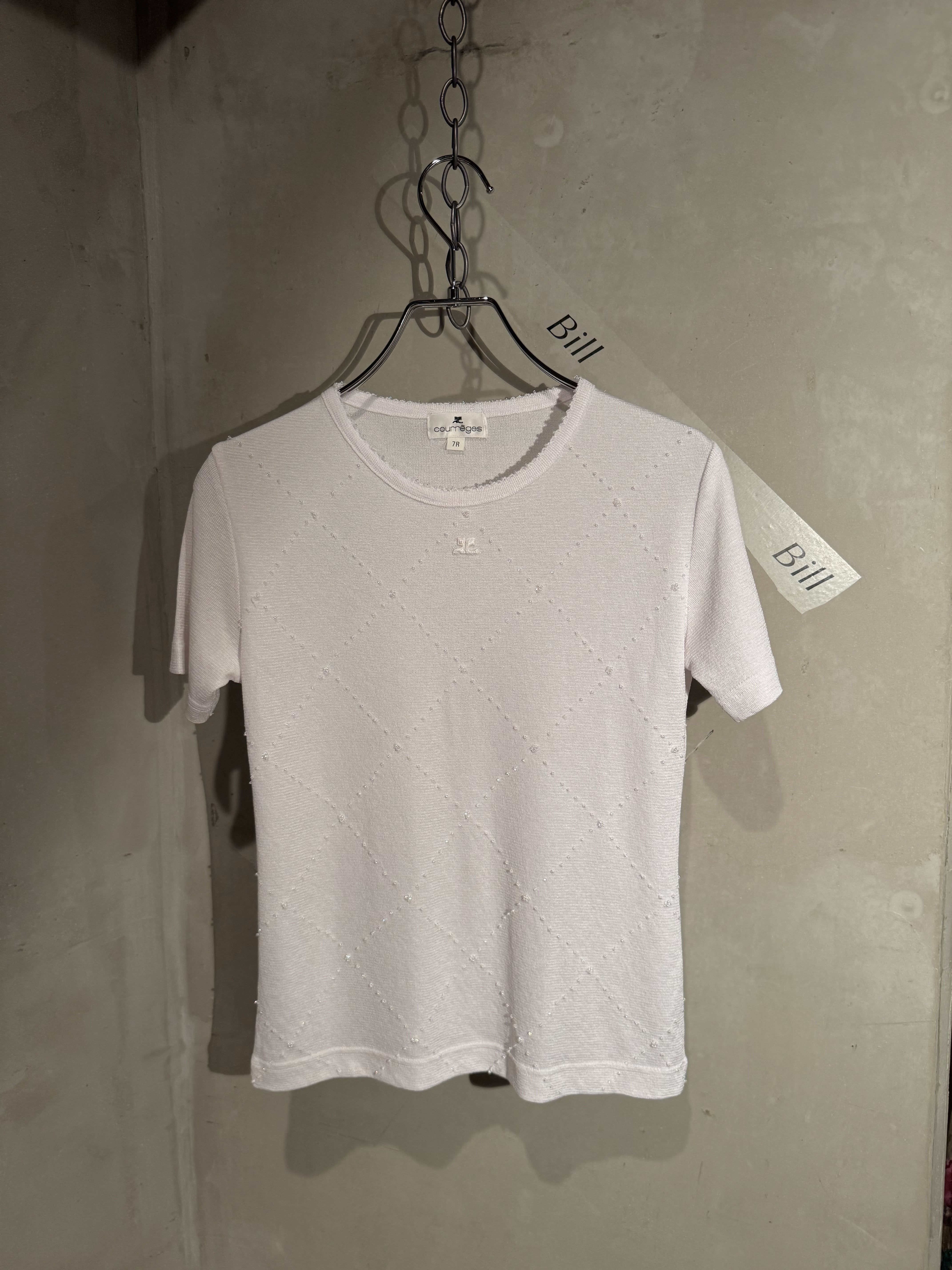 Courrèges kirakira beads logo white summer knit