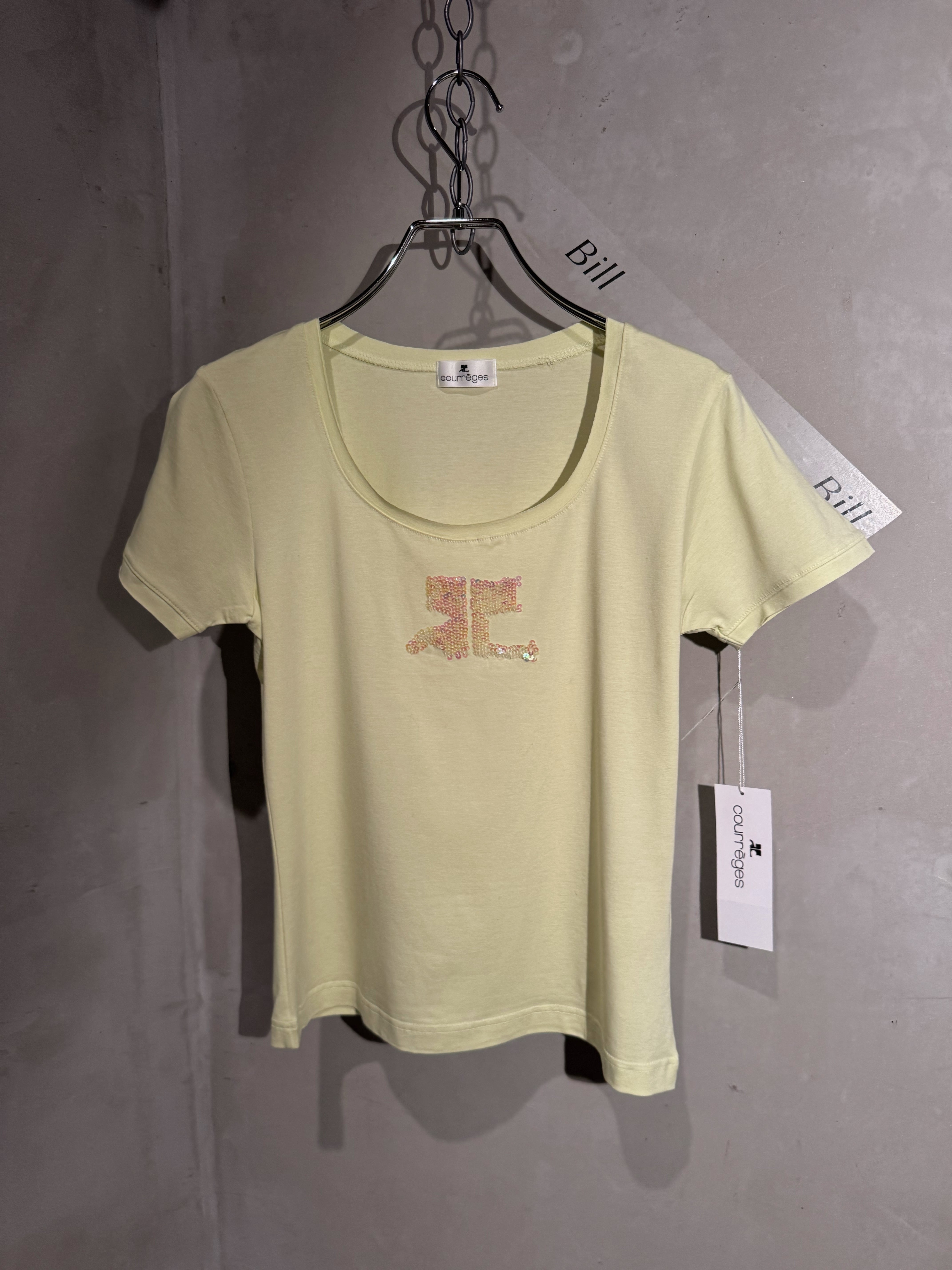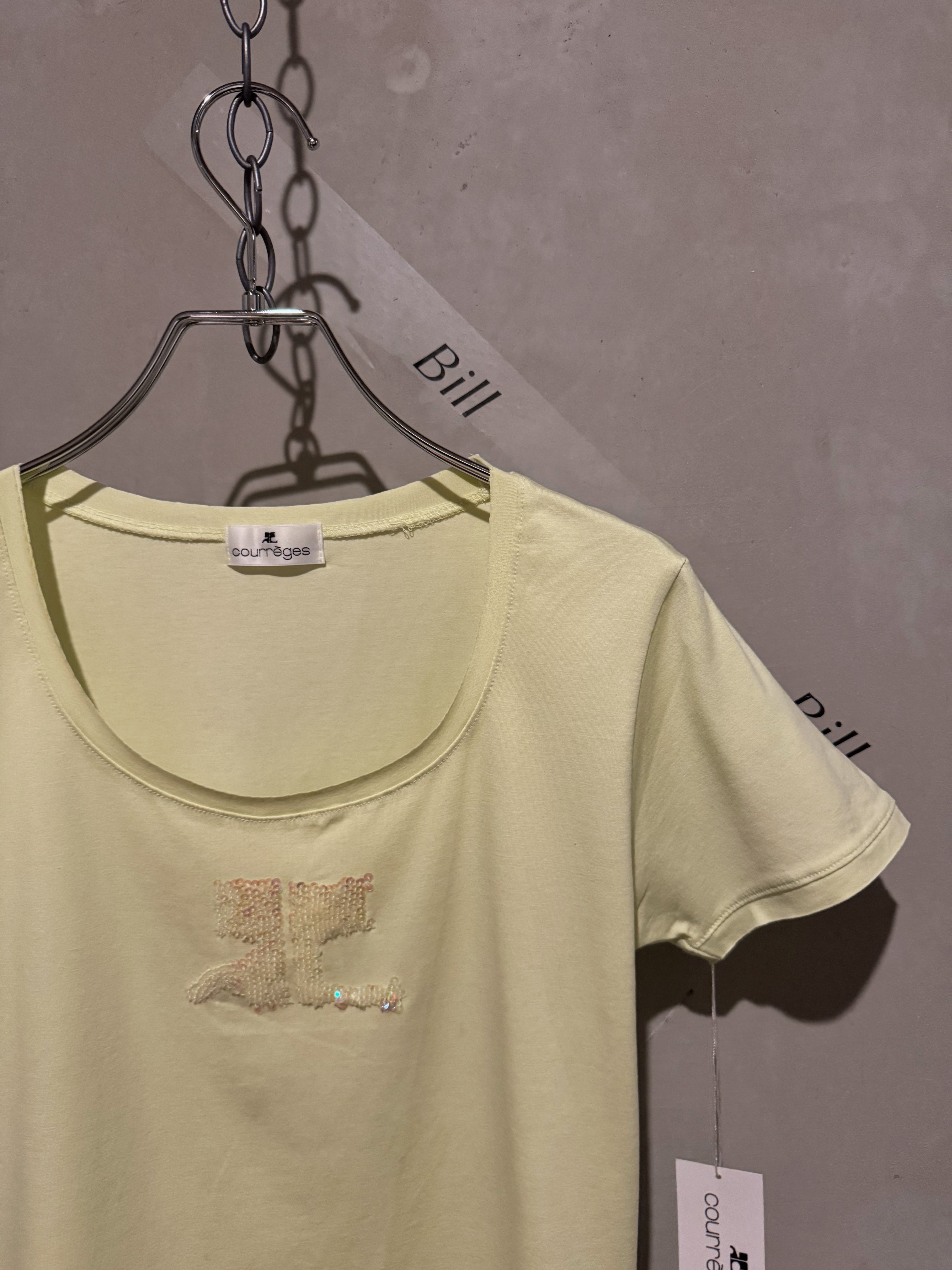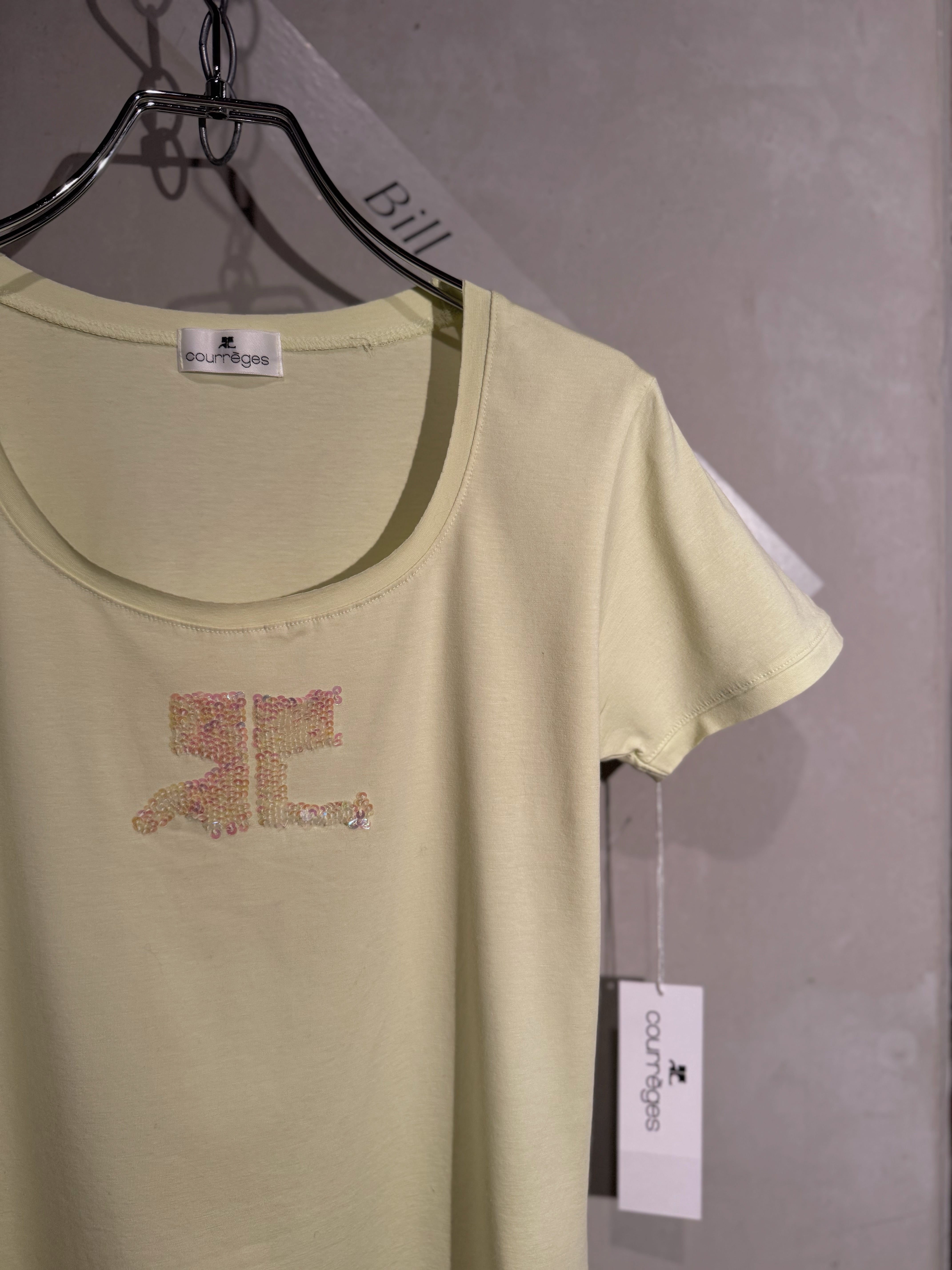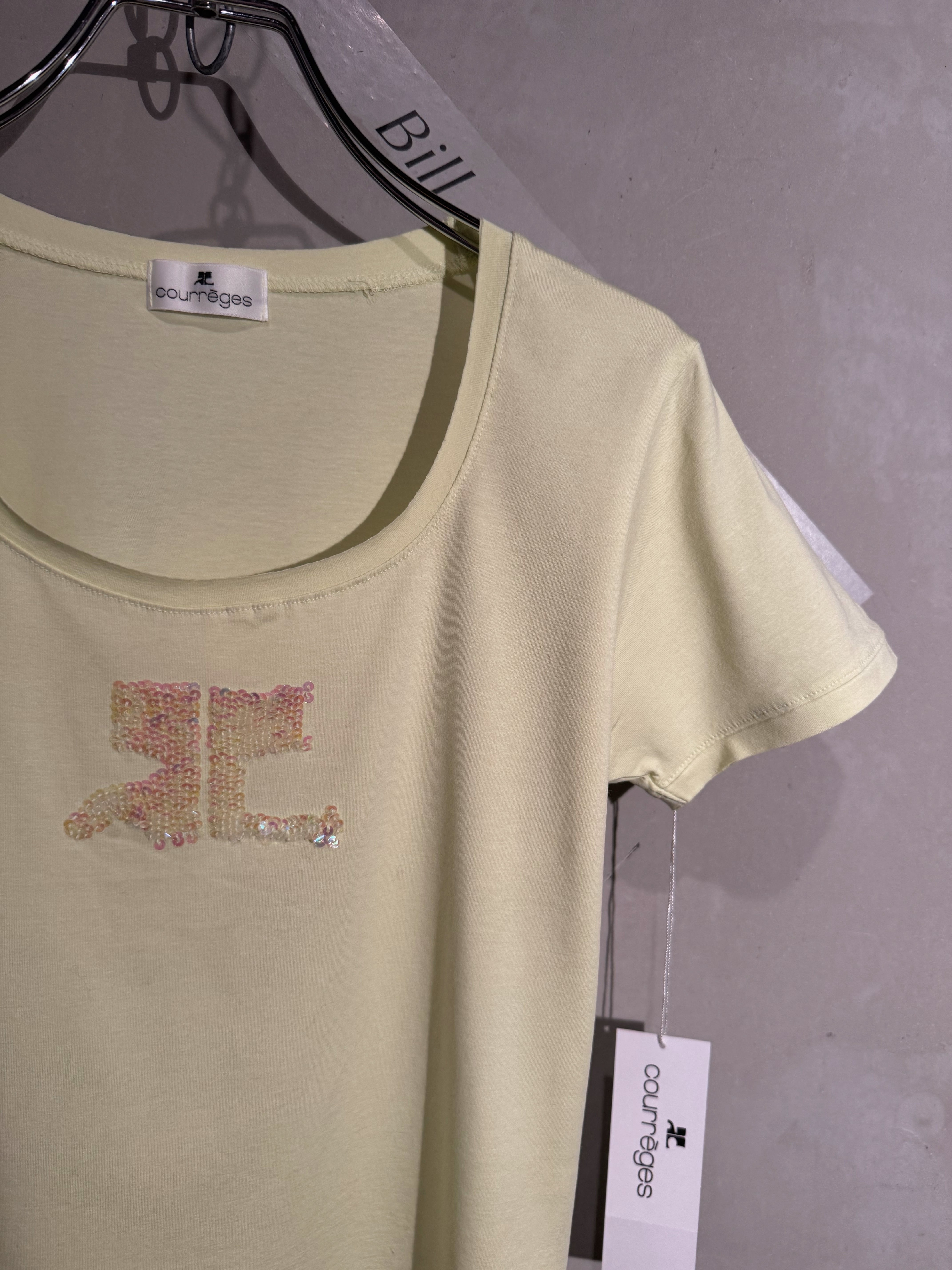 Courrèges aurora hologram logo pastel lime green T shirt (dead stock)