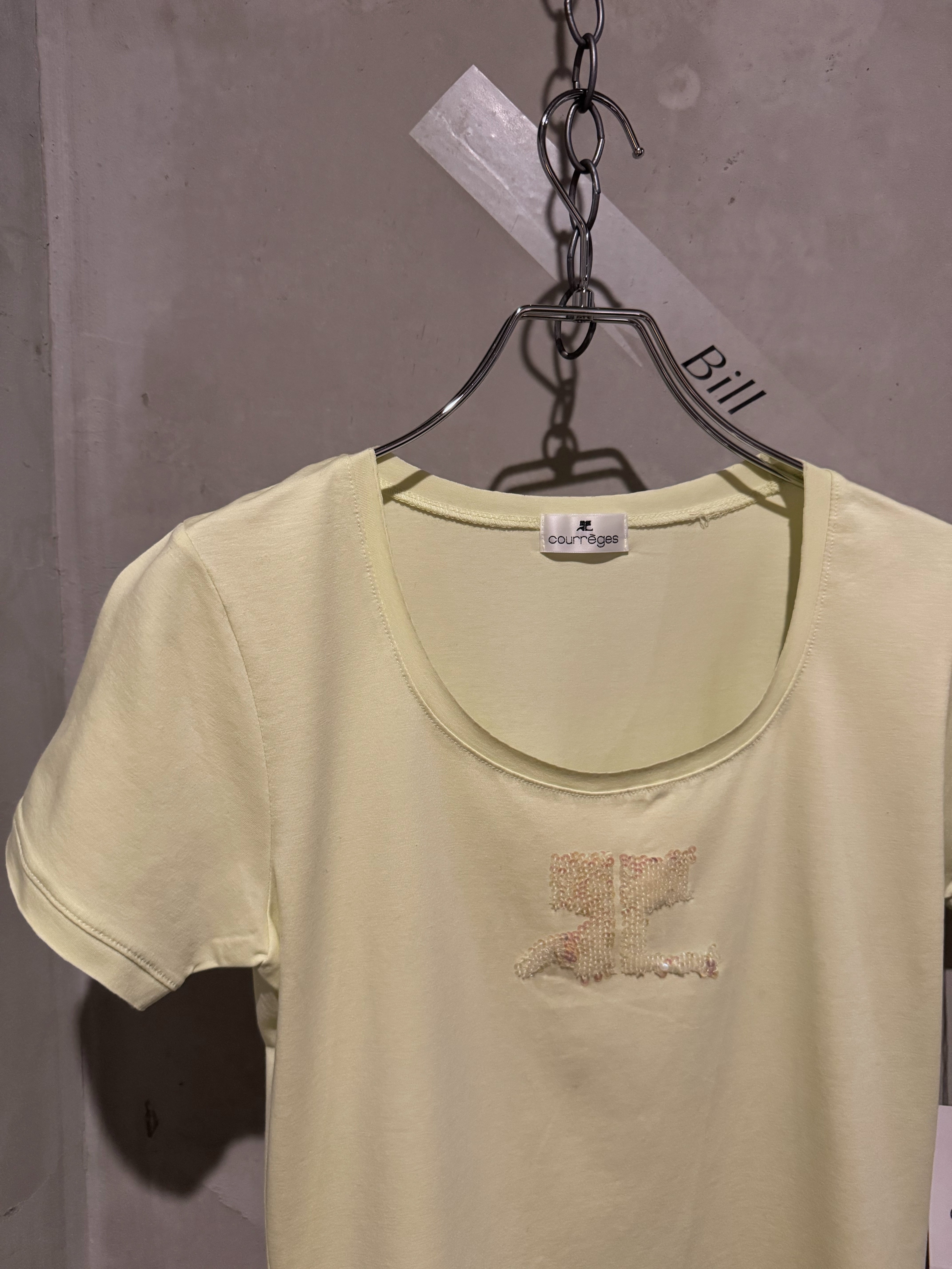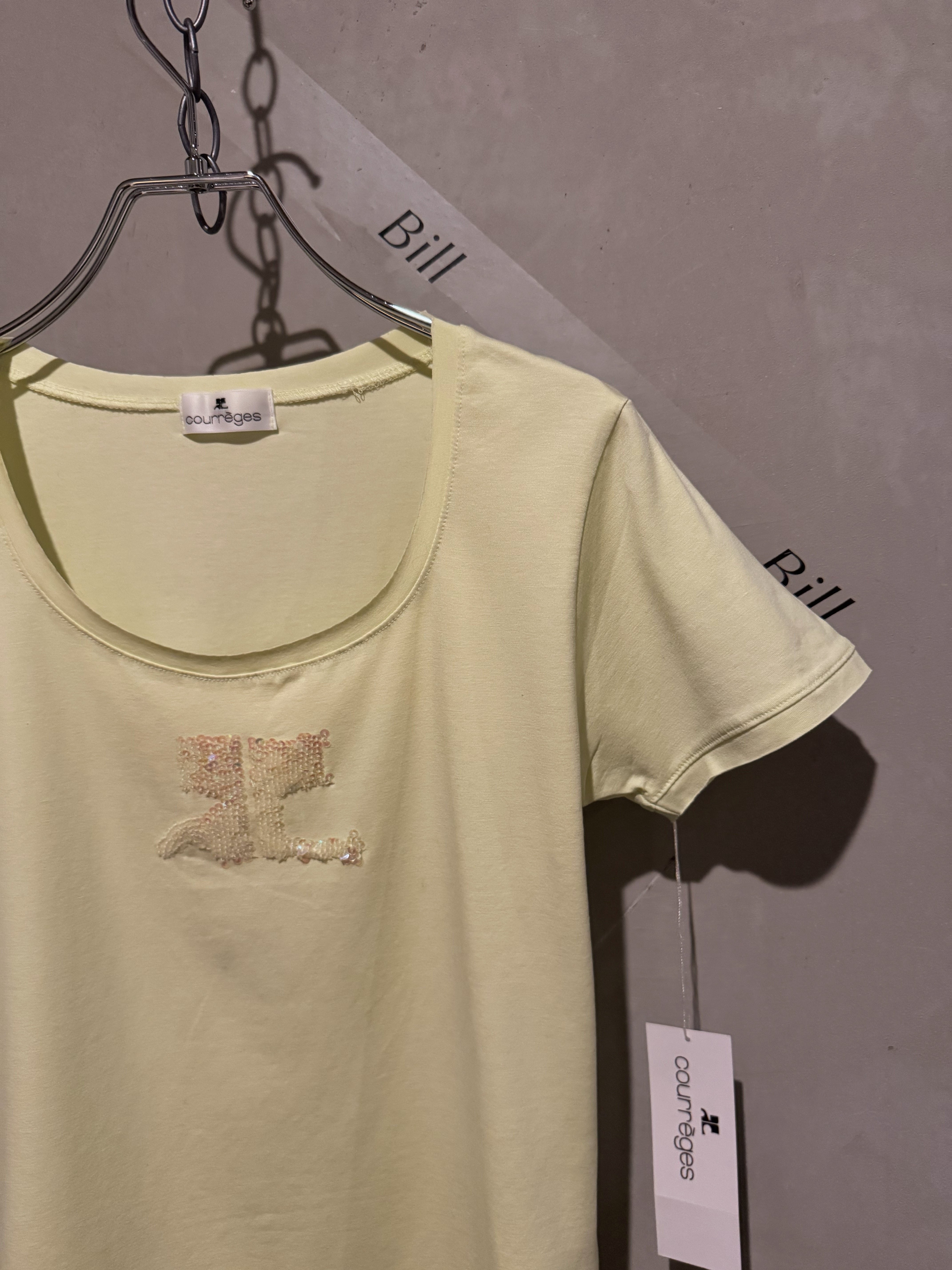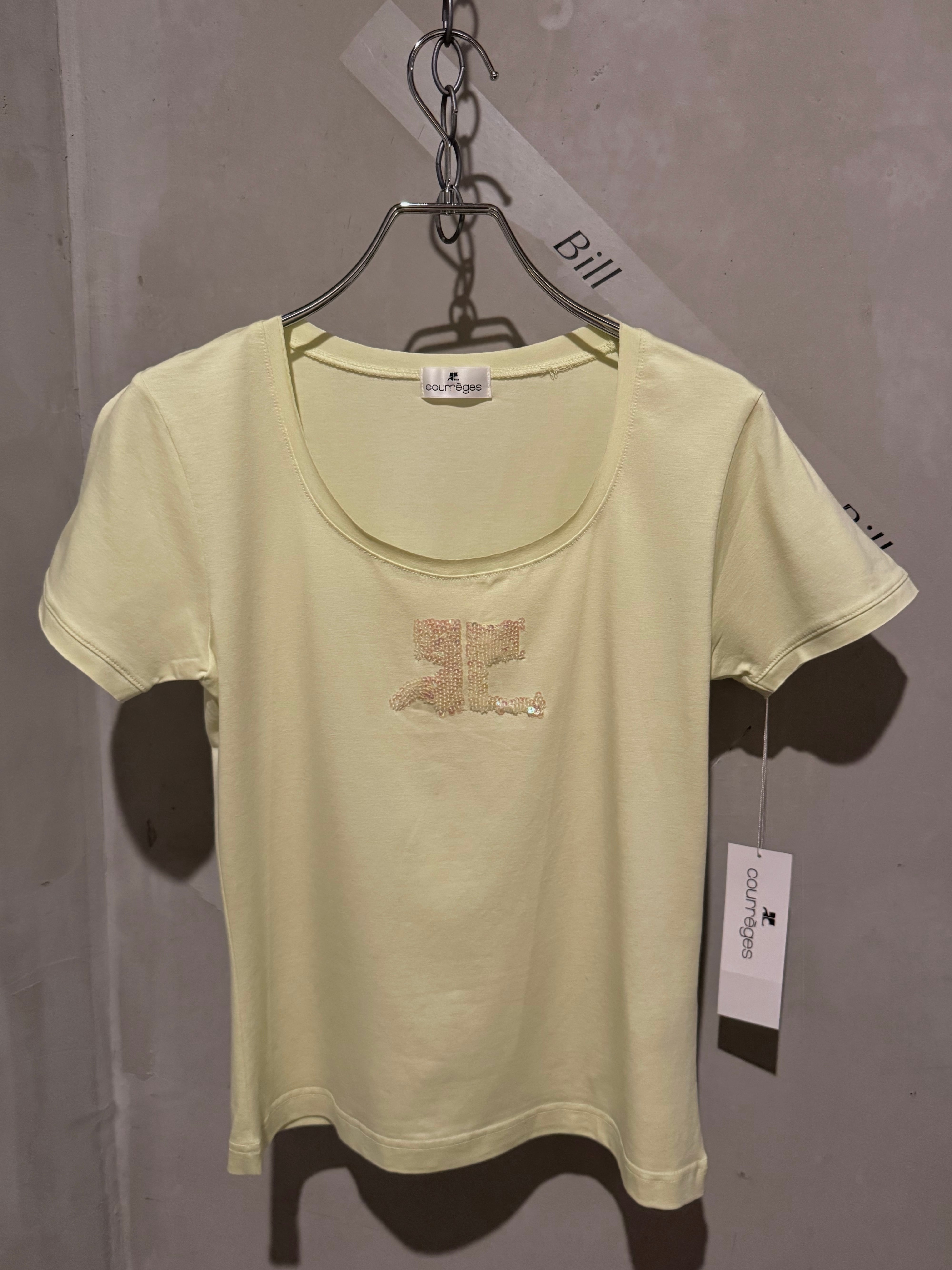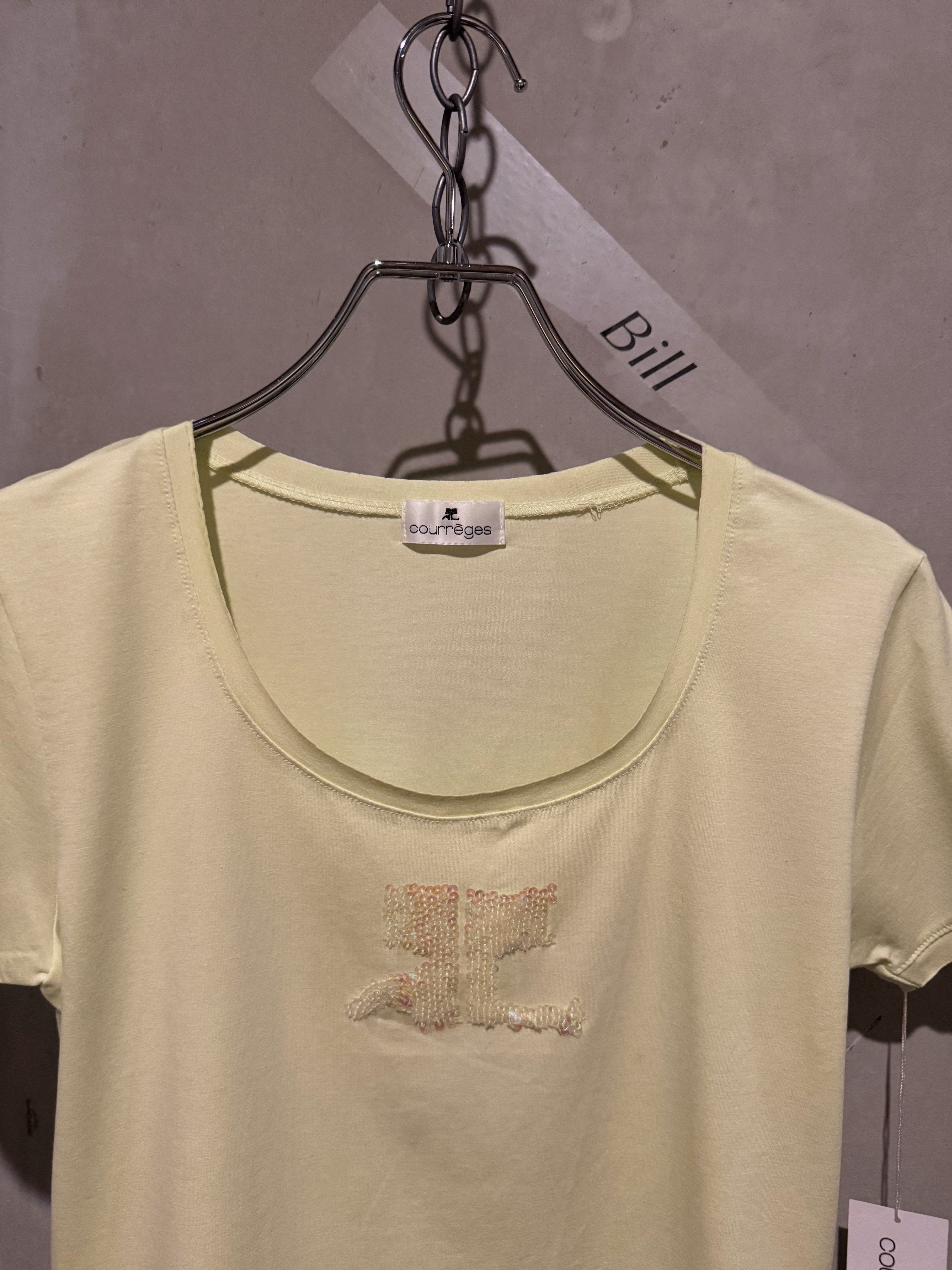 Courrèges aurora hologram logo pastel lime green T shirt (dead stock)
