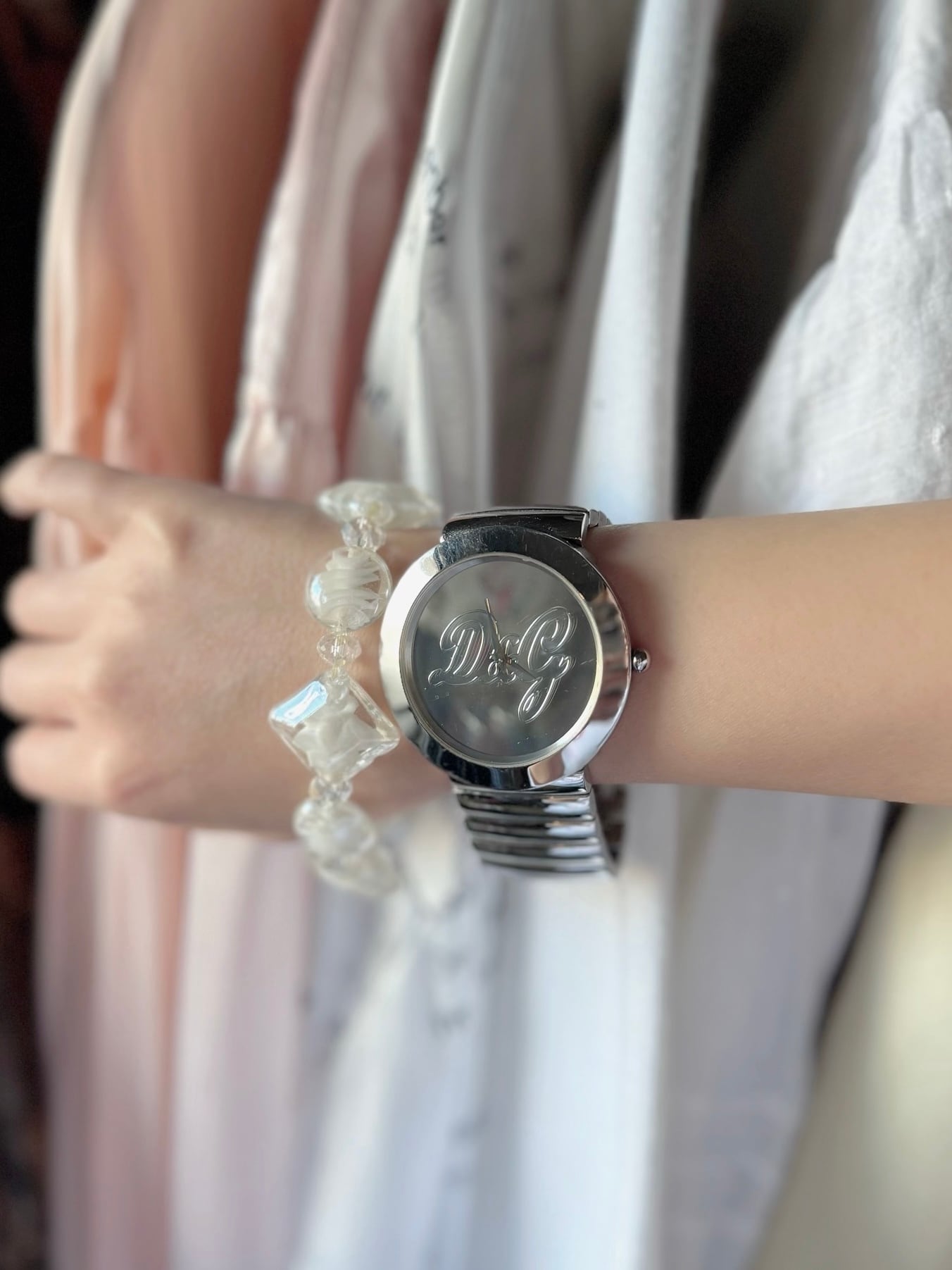 Dolce & Gabbana round silver logo wrist watch