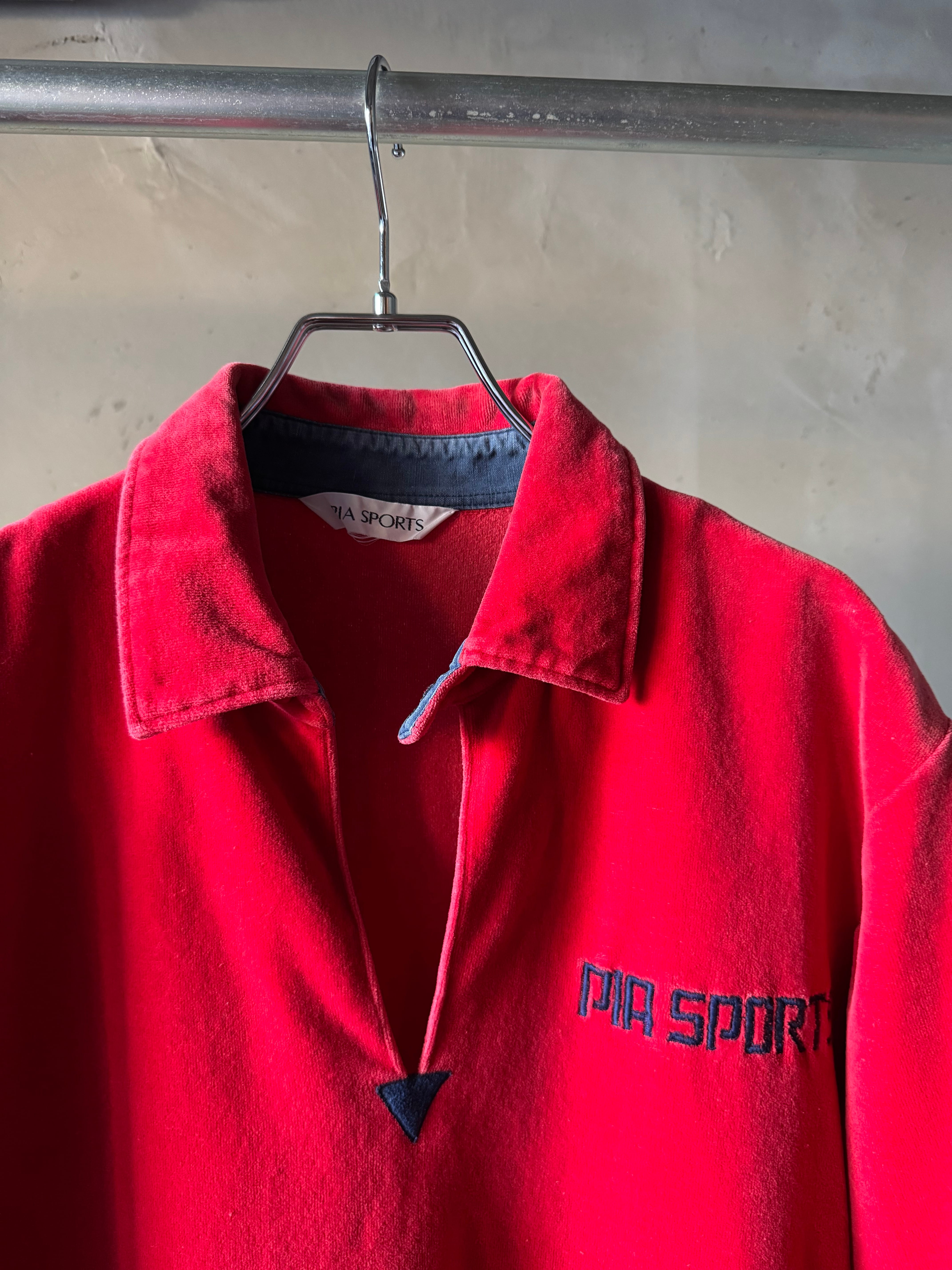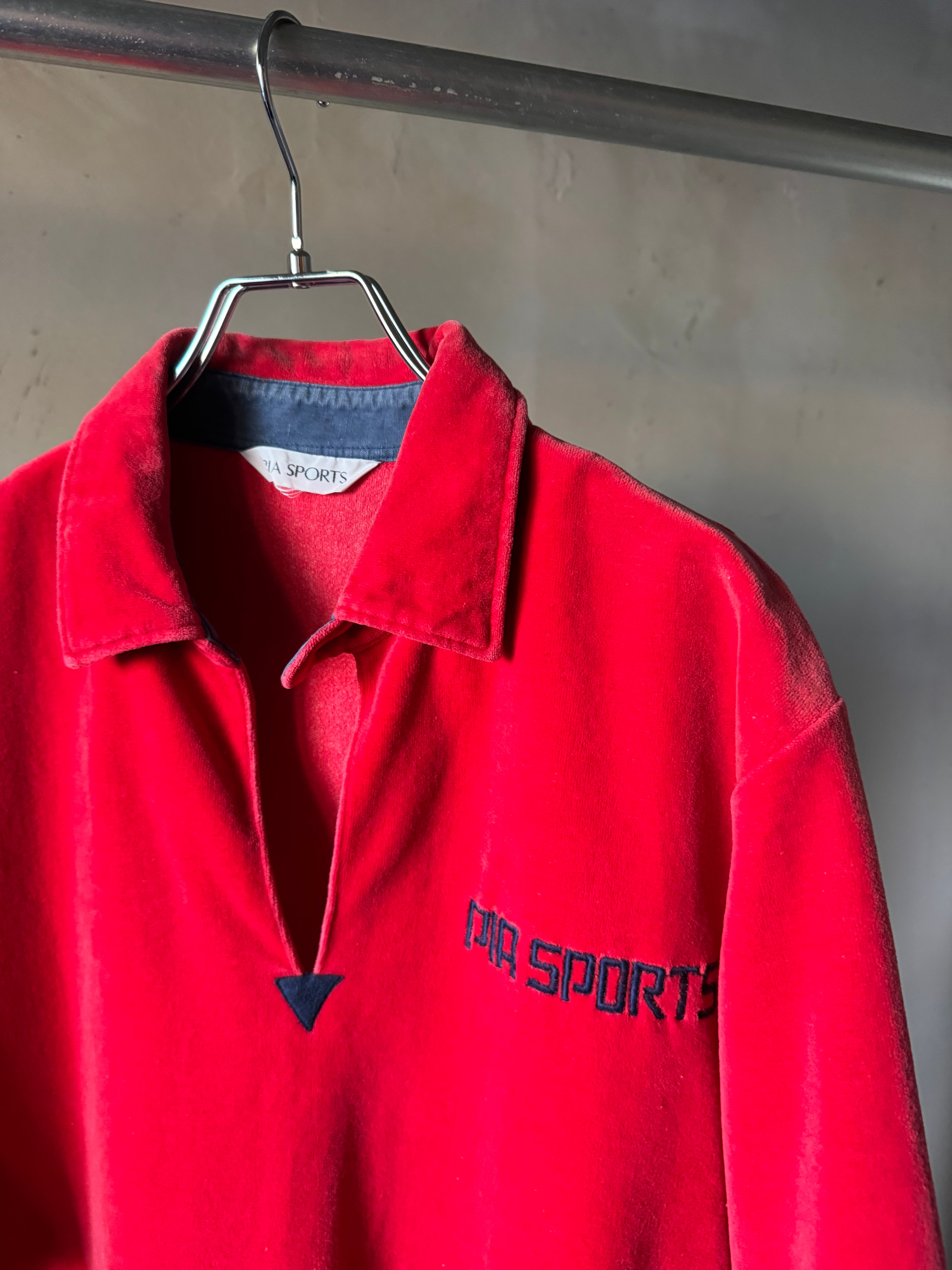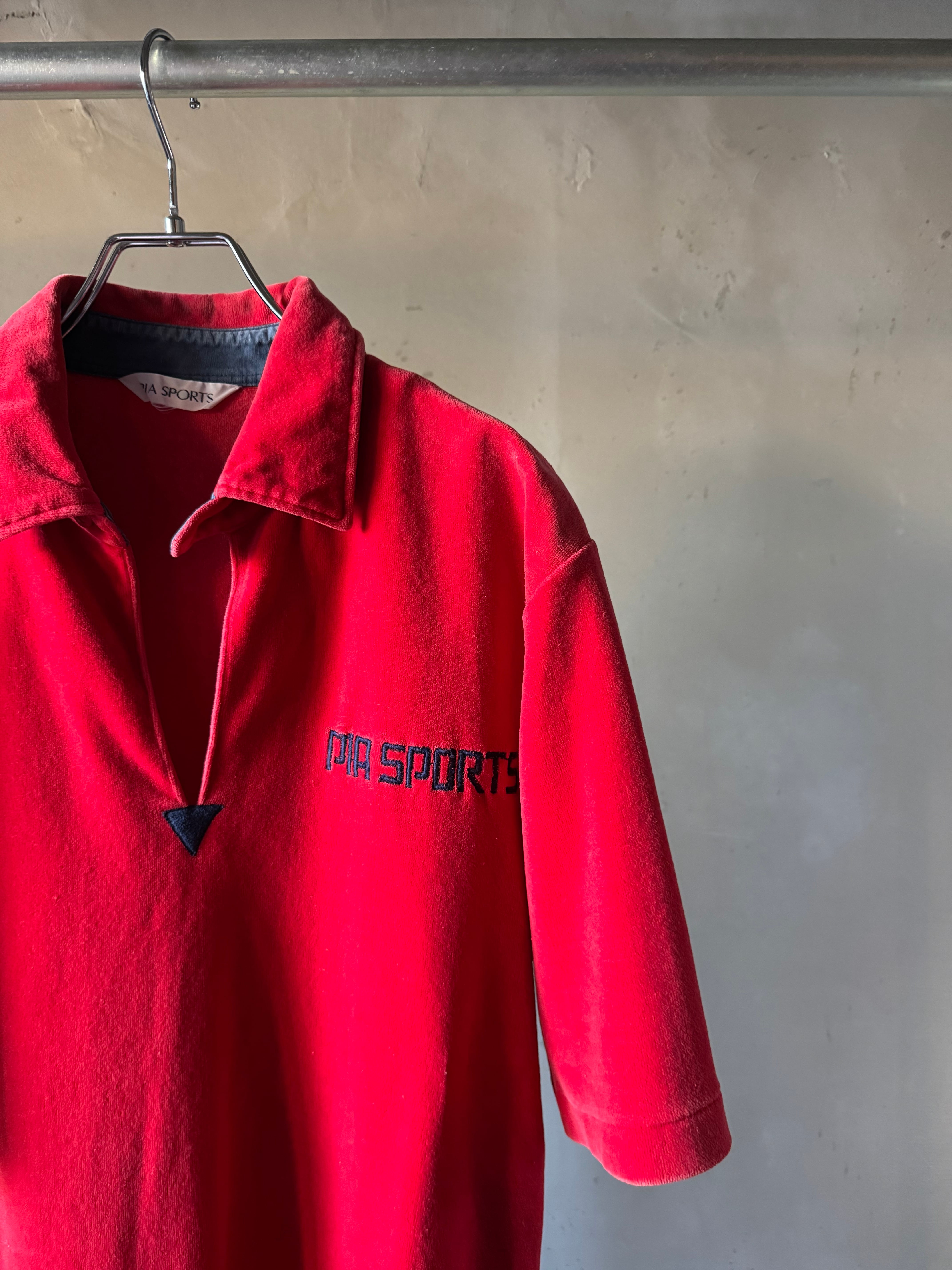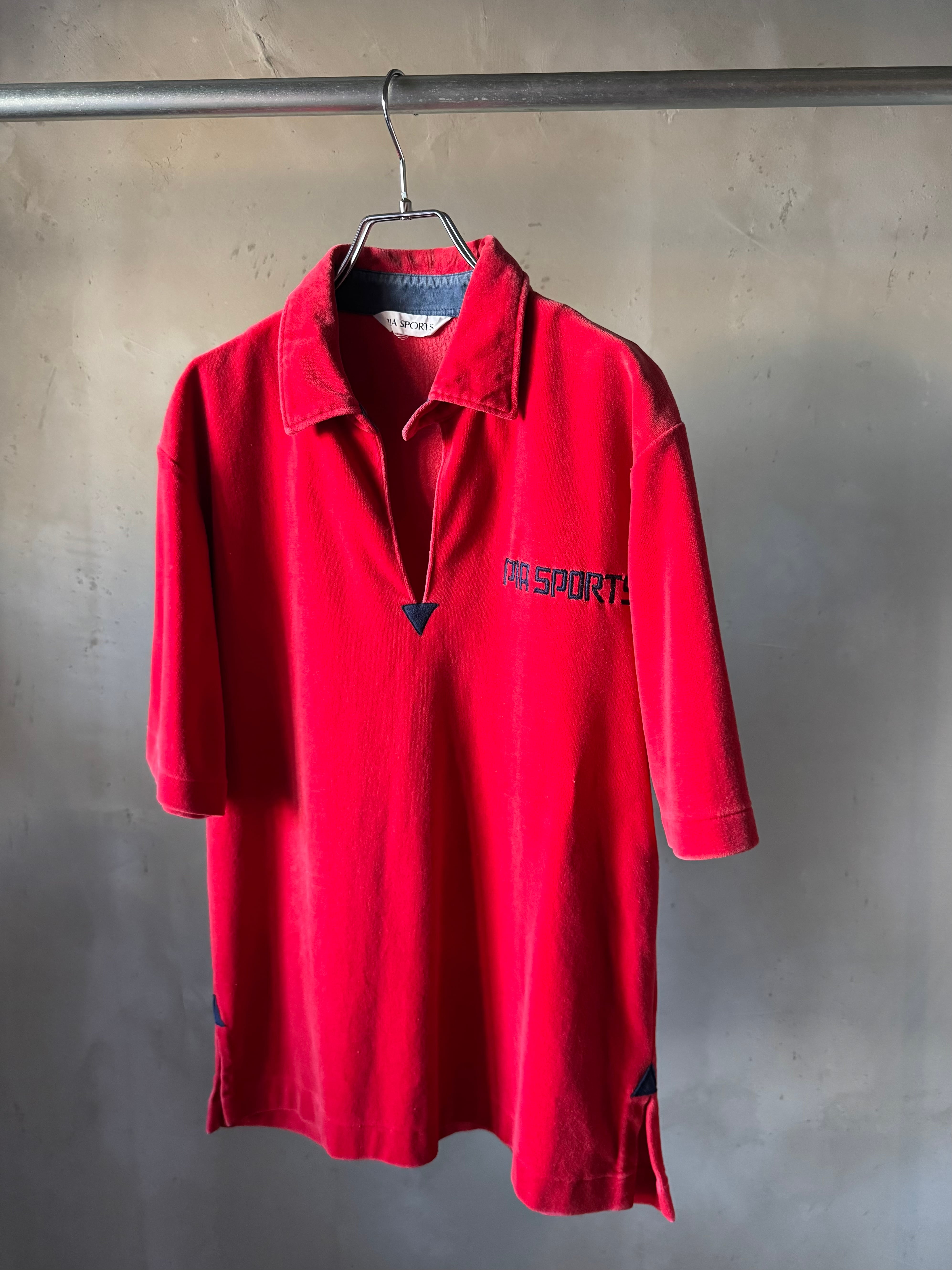 velours red×navy polo shirt (Bill vintage)