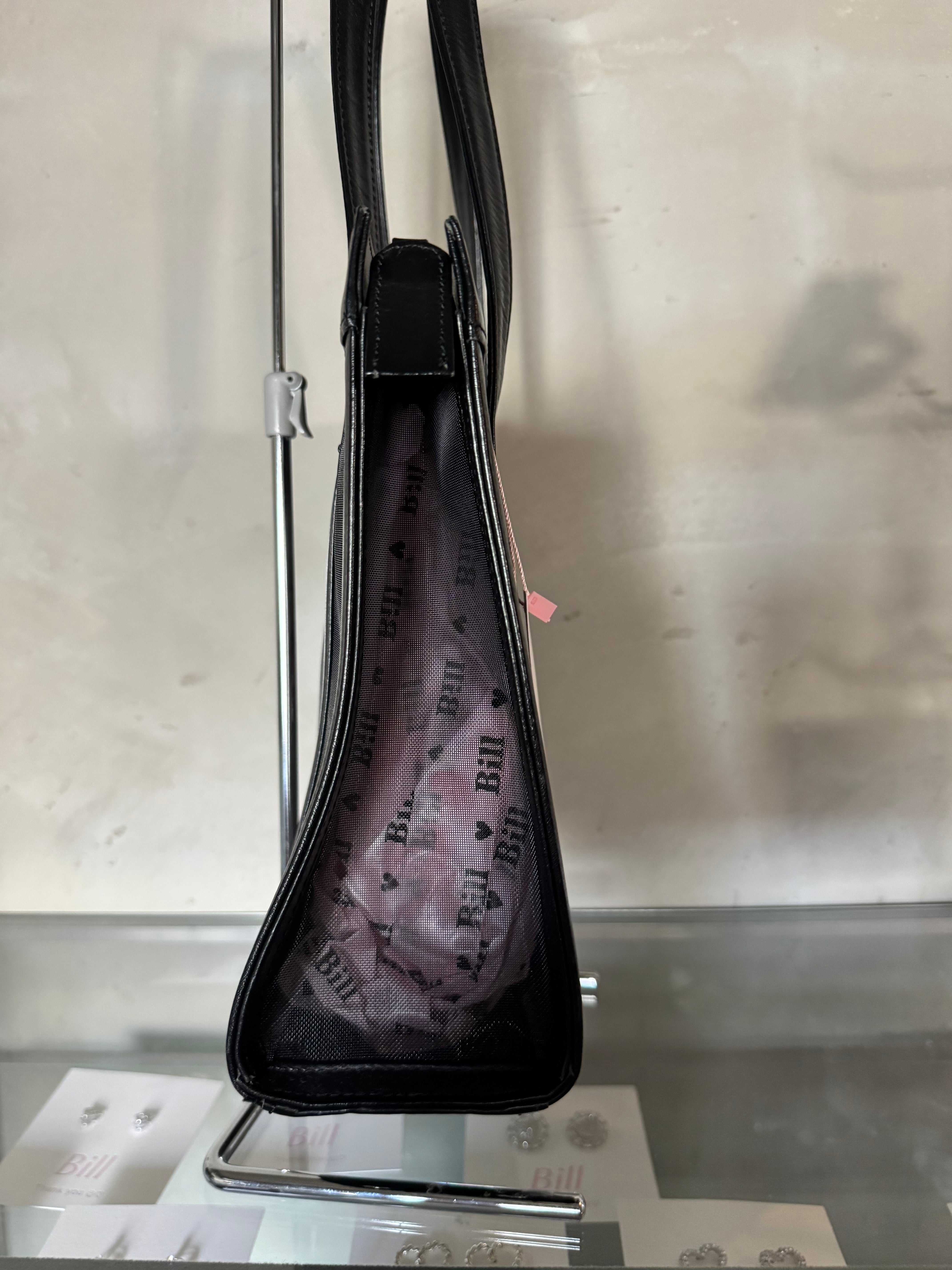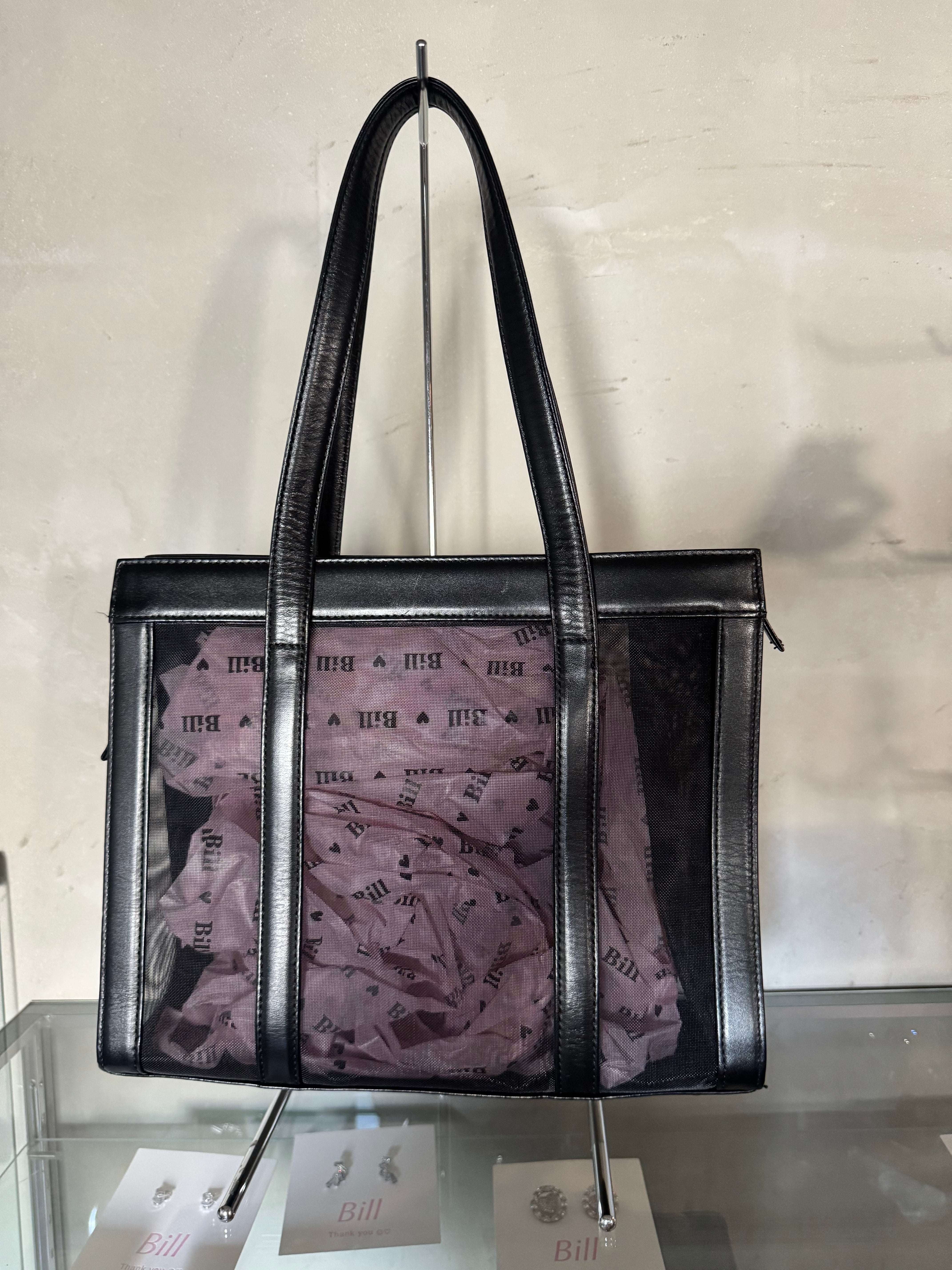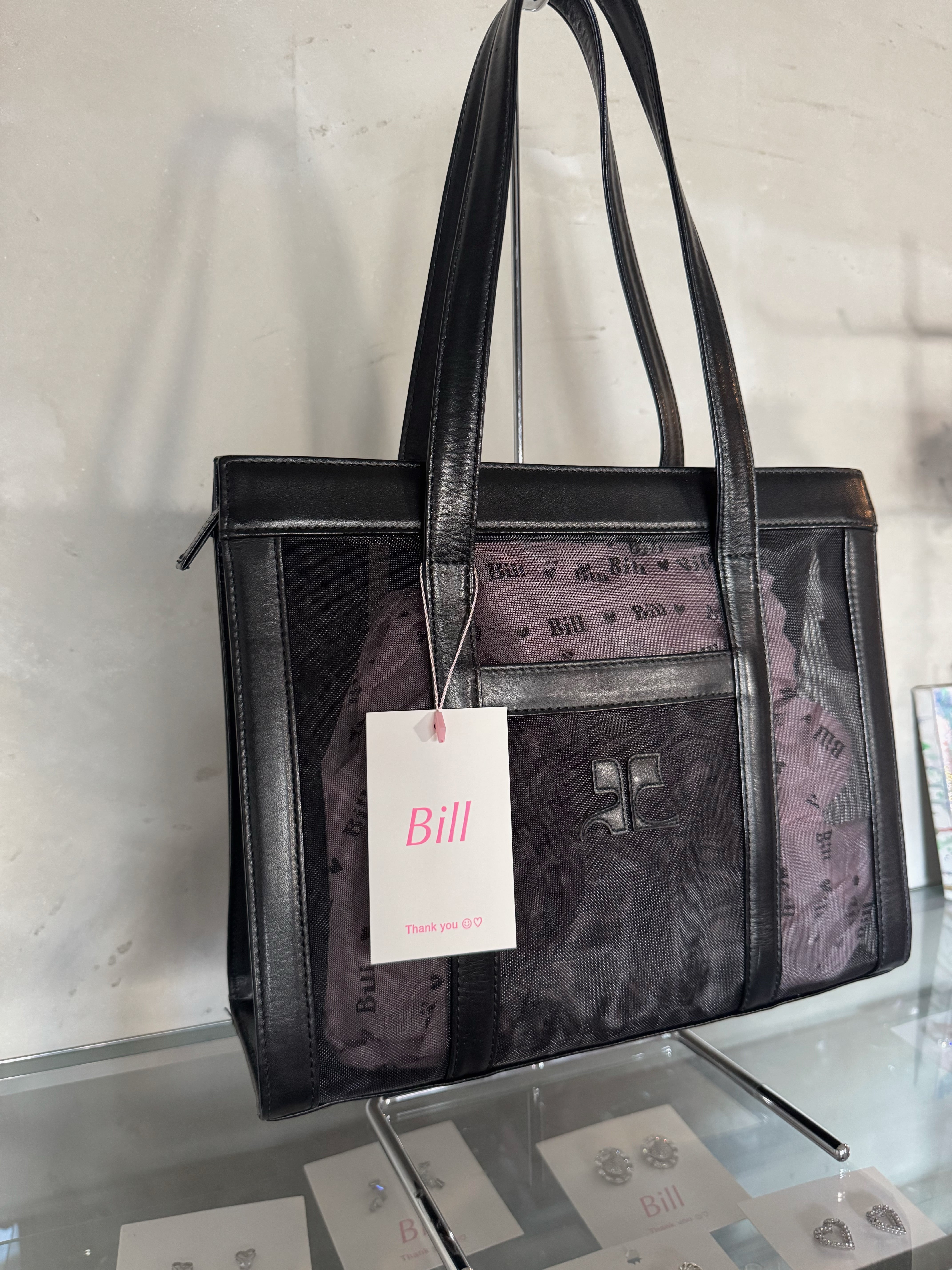 Courrèges mesh×real leather black hand bag