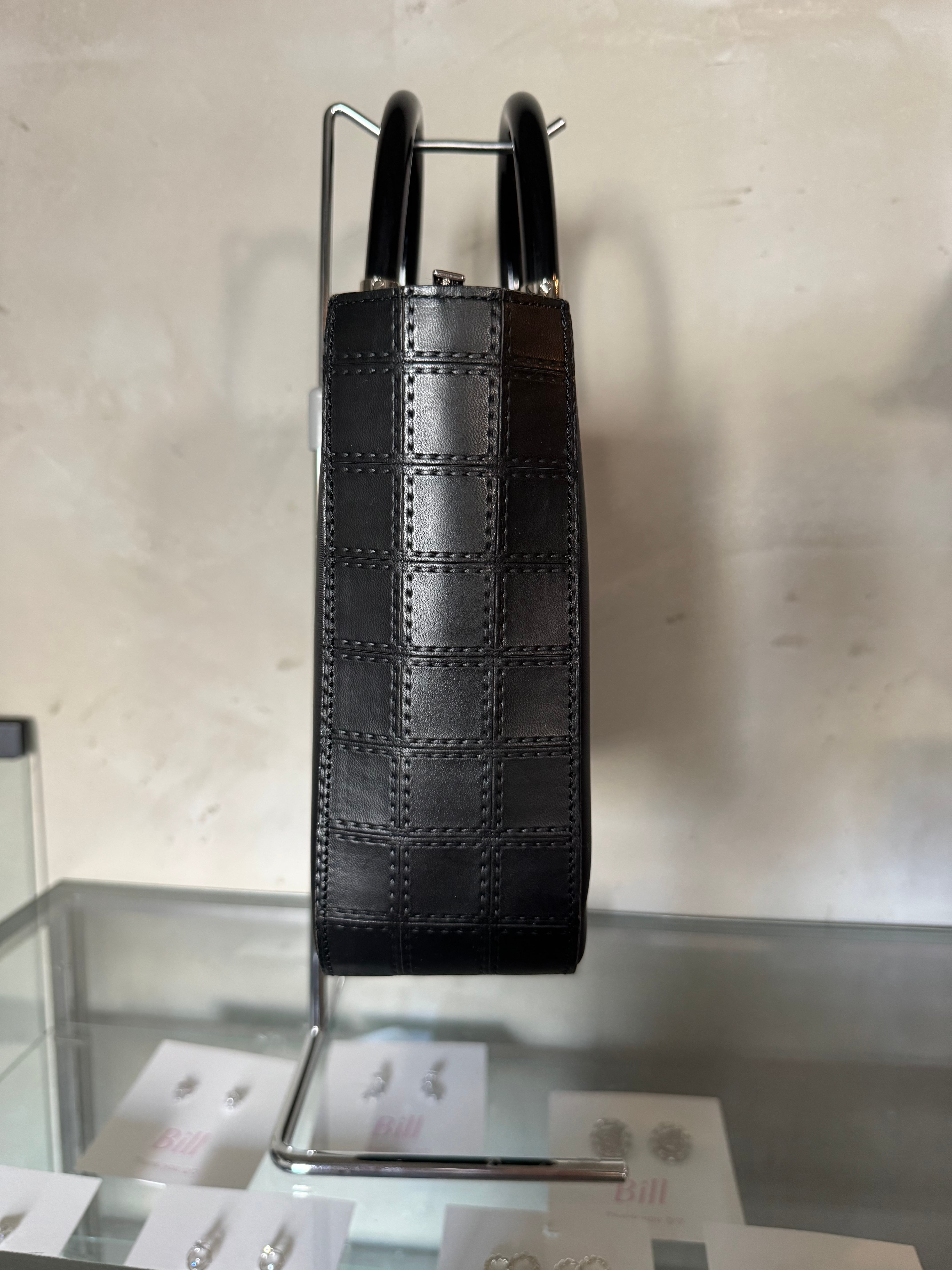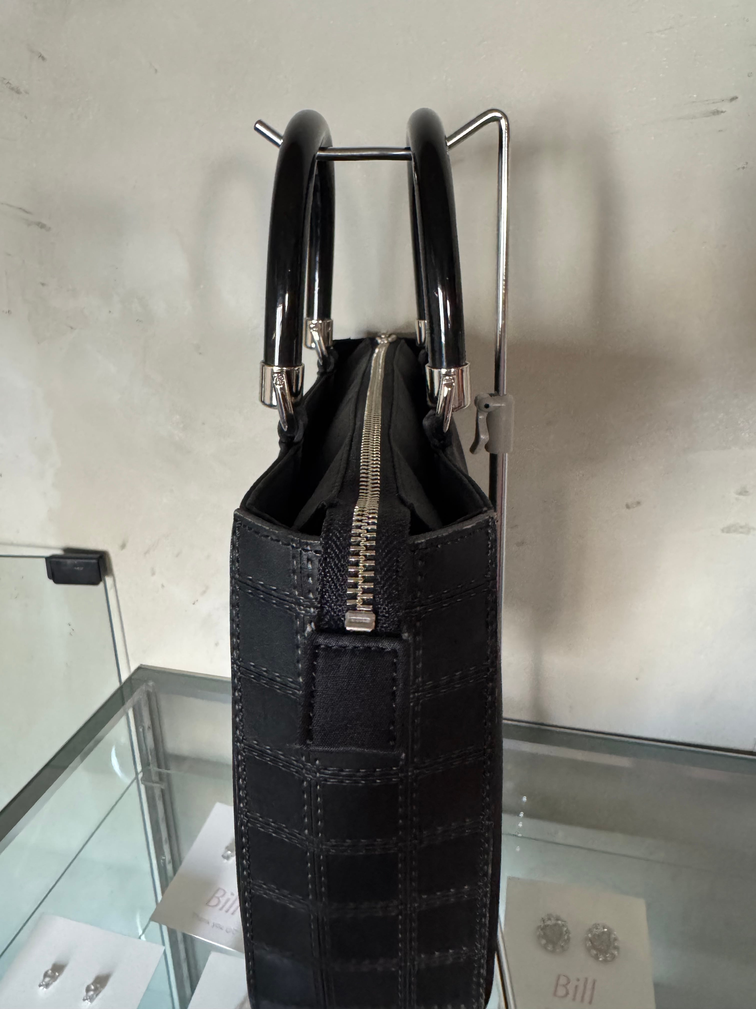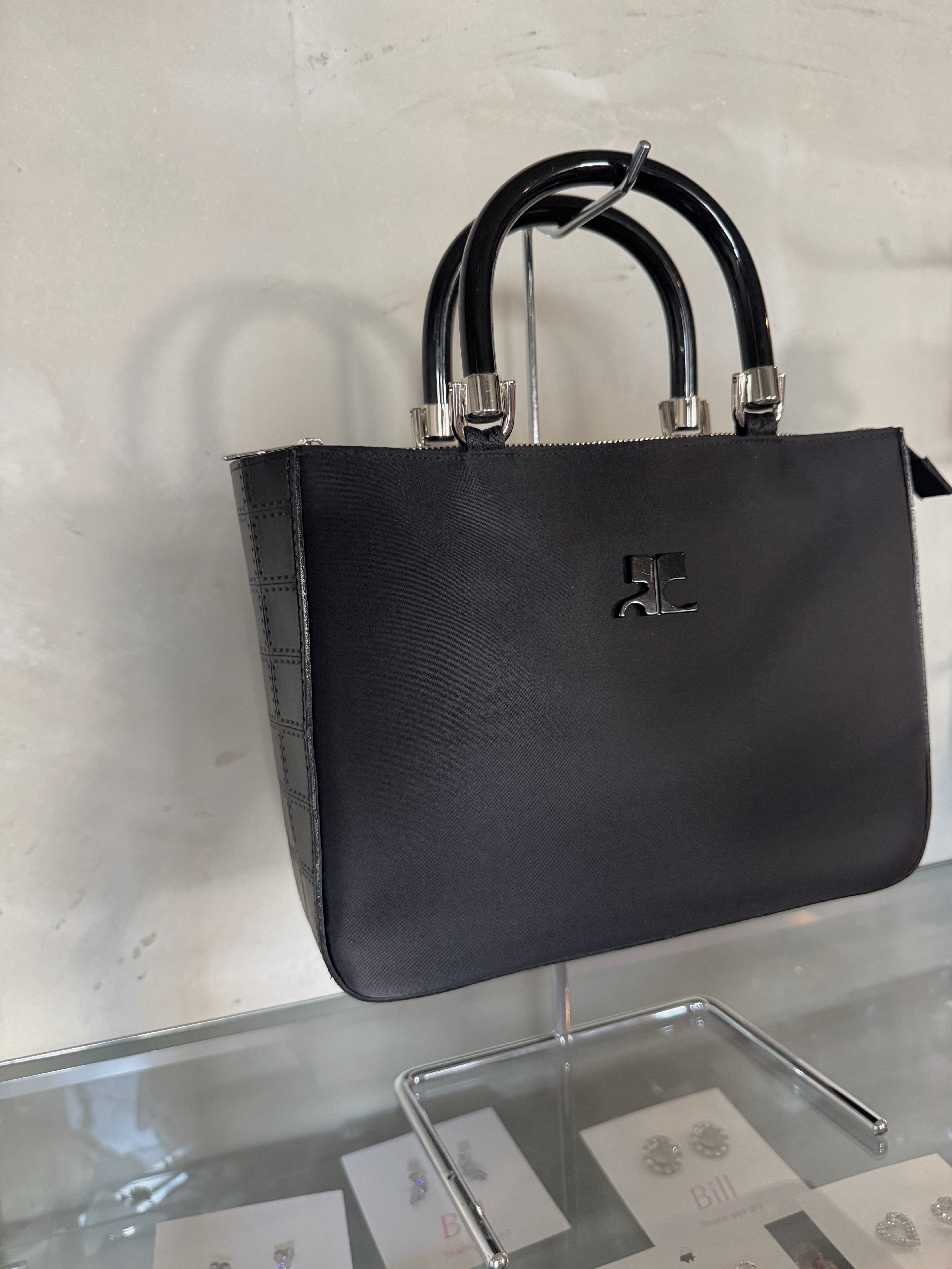 プラスチックのハンドルとロゴがとても可愛いハンドバッグです♪サイドがリアルレザーになっていてこだわりのデザインになってます♪♪