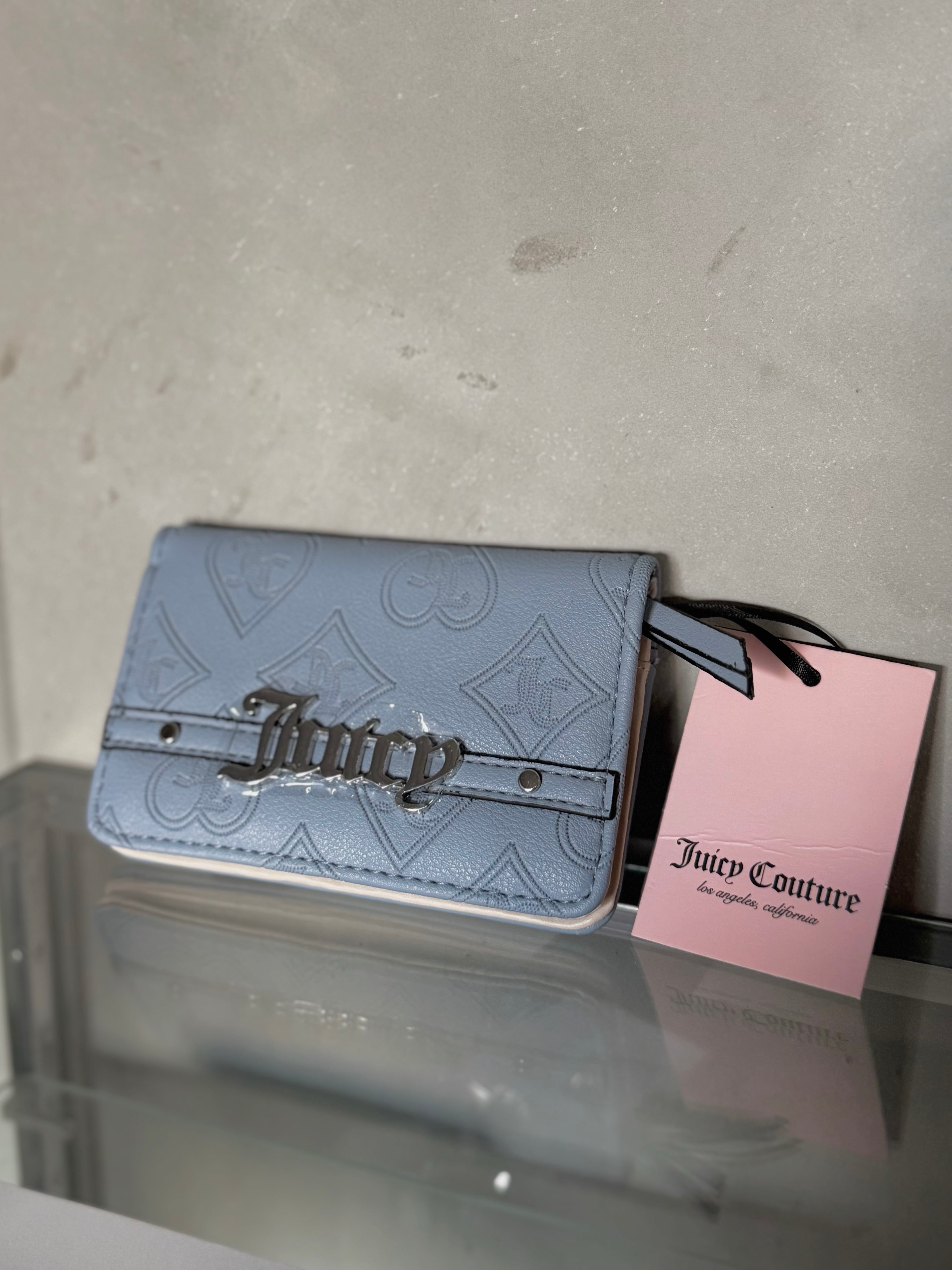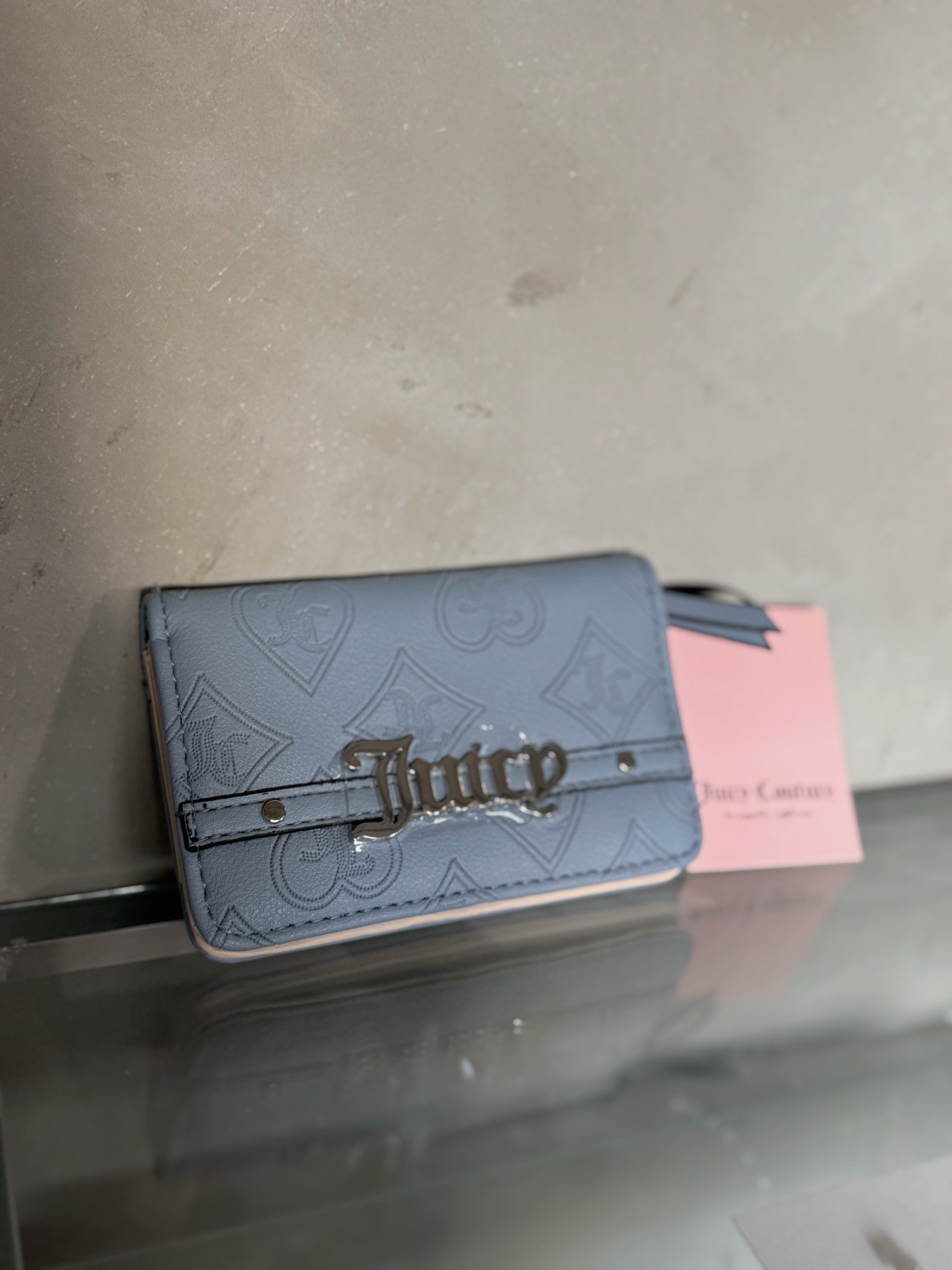 Juicy Couture silver logo ice blue card case