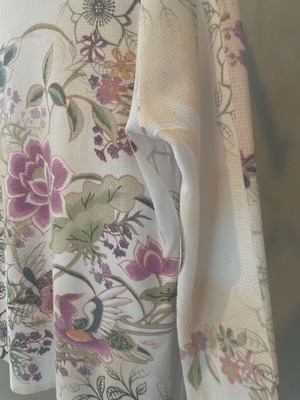 蓮の花や鳥が可愛く描かれているAsiaライクなシャツです。