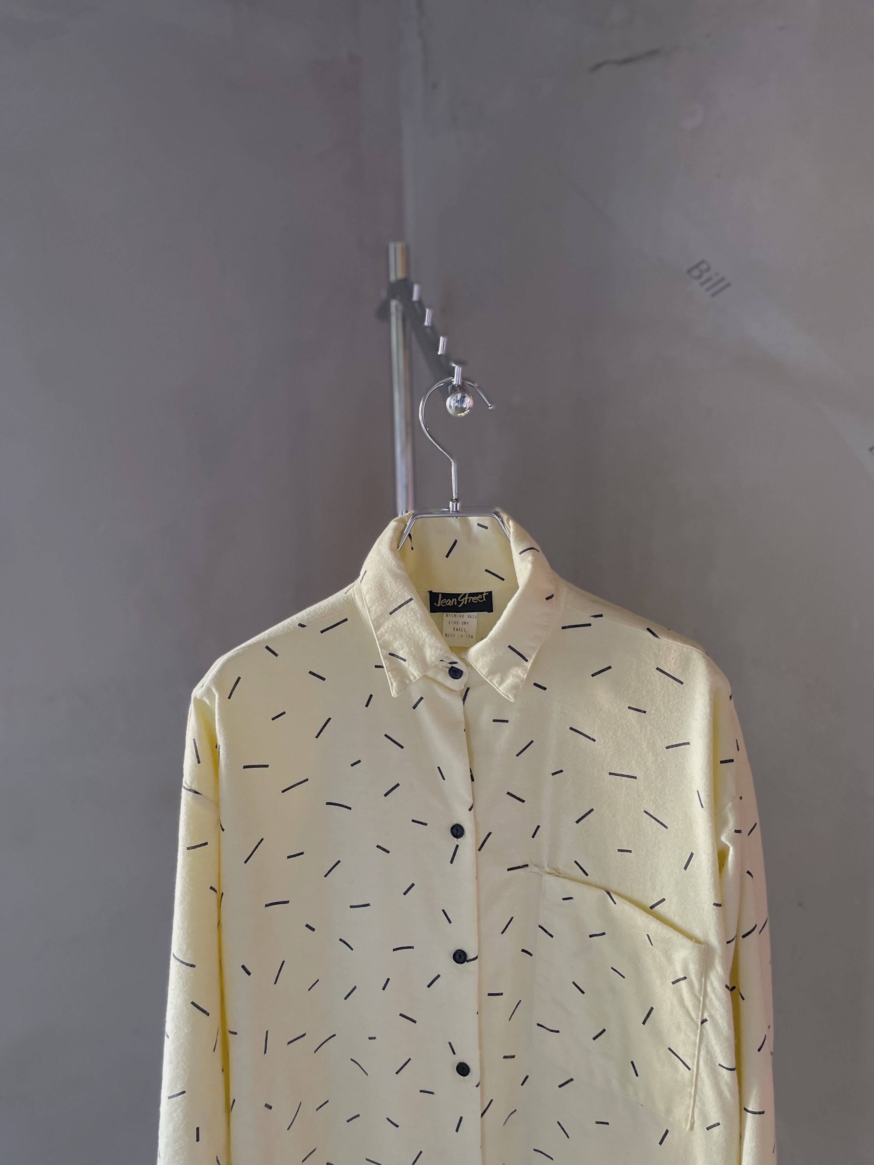 クリームイエローにブラックのコントラストがかわいいシャツです。