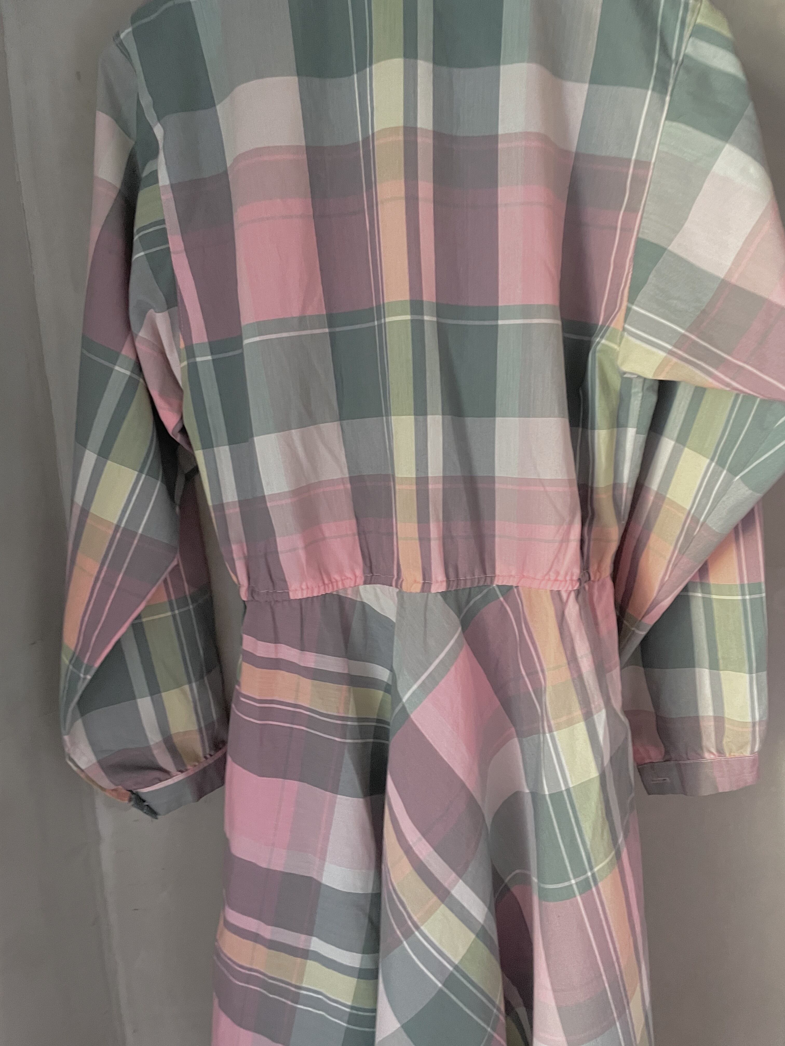 ピンクとグリーンの色味がとても可愛いチェックのワンピースです。
