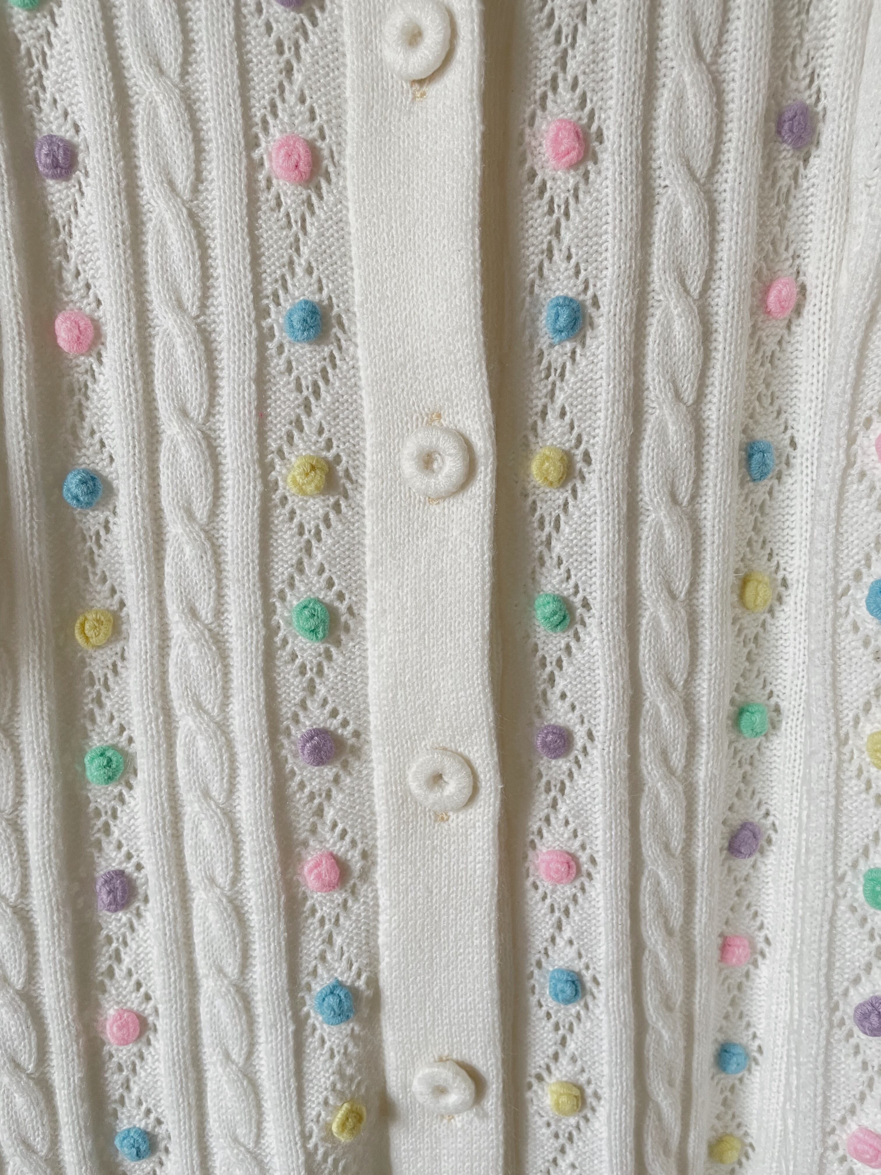 パステルカラーのボンボンがたくさん付いてるカーディガンです♪
