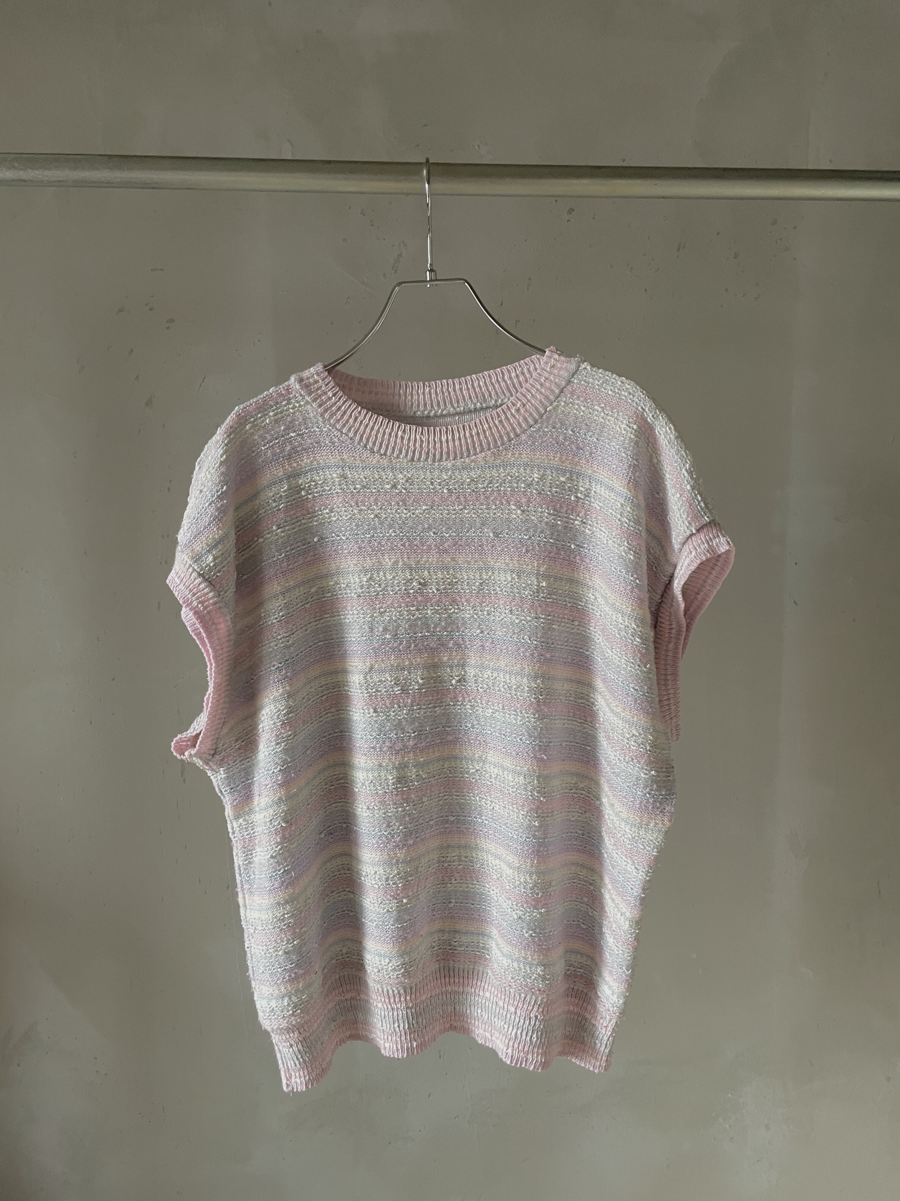 パステルカラーの細かいボーダーがとても可愛いニットです。