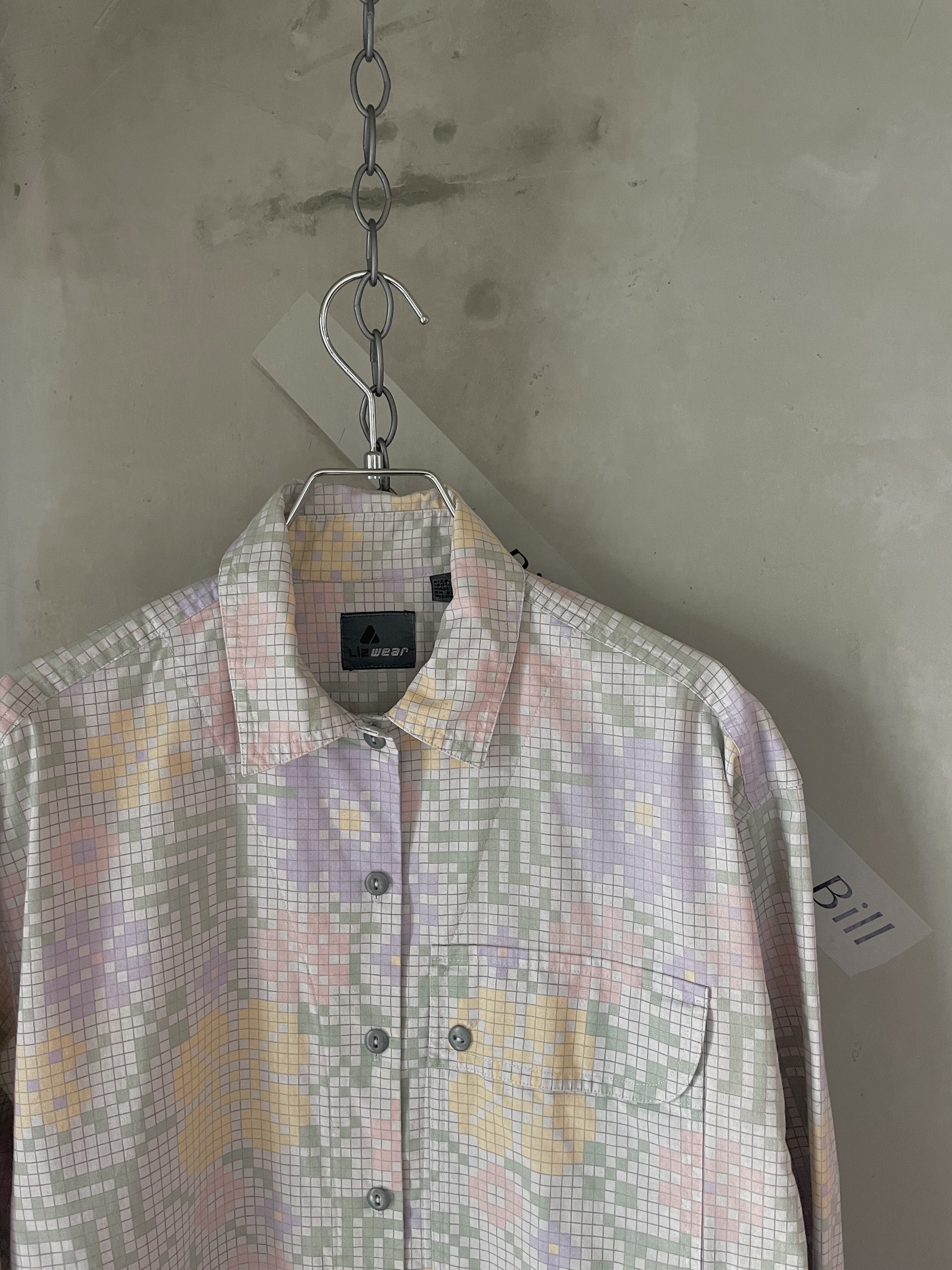 淡い色味がとても可愛いモザイクフラワーのシャツです。