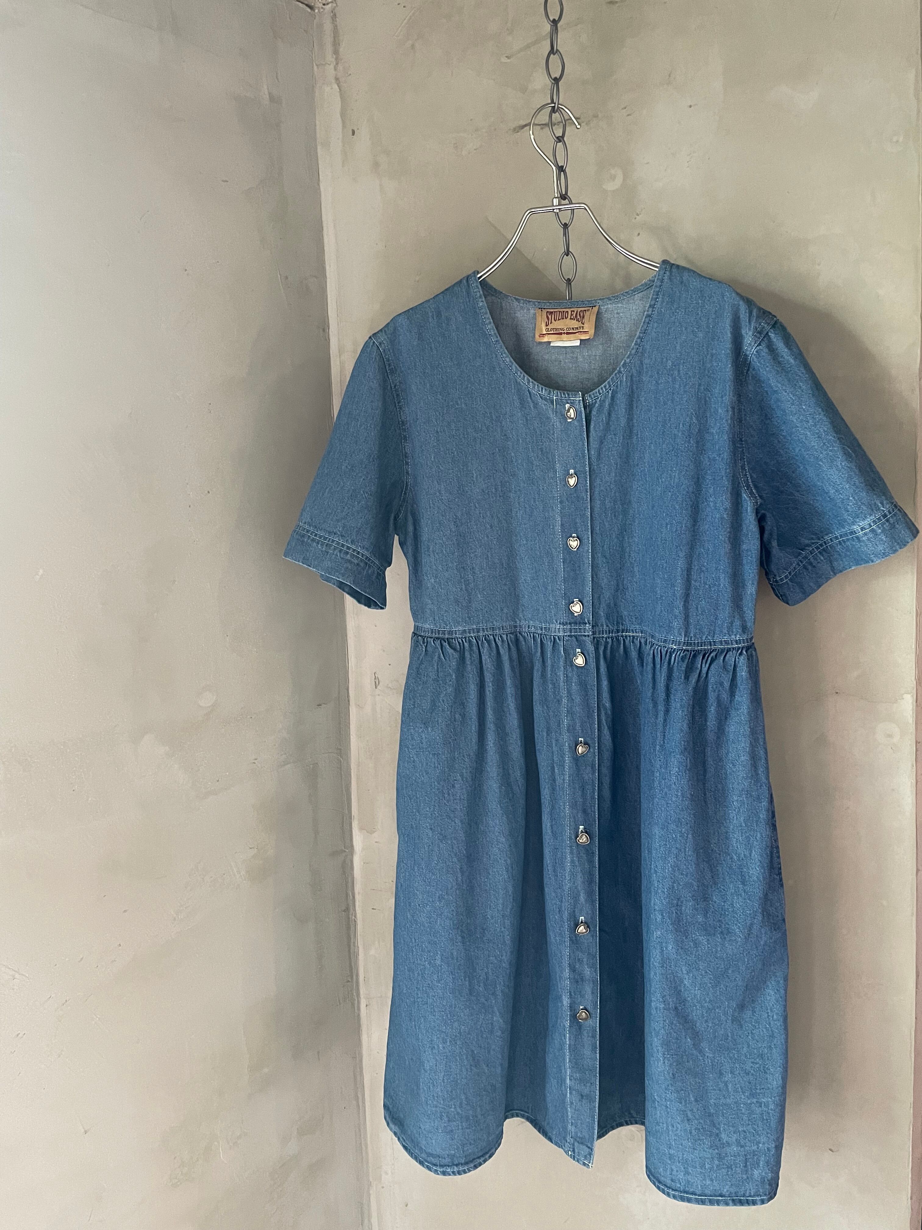 シルバーのハートボタンが可愛いmade in USAのデニムワンピースです。