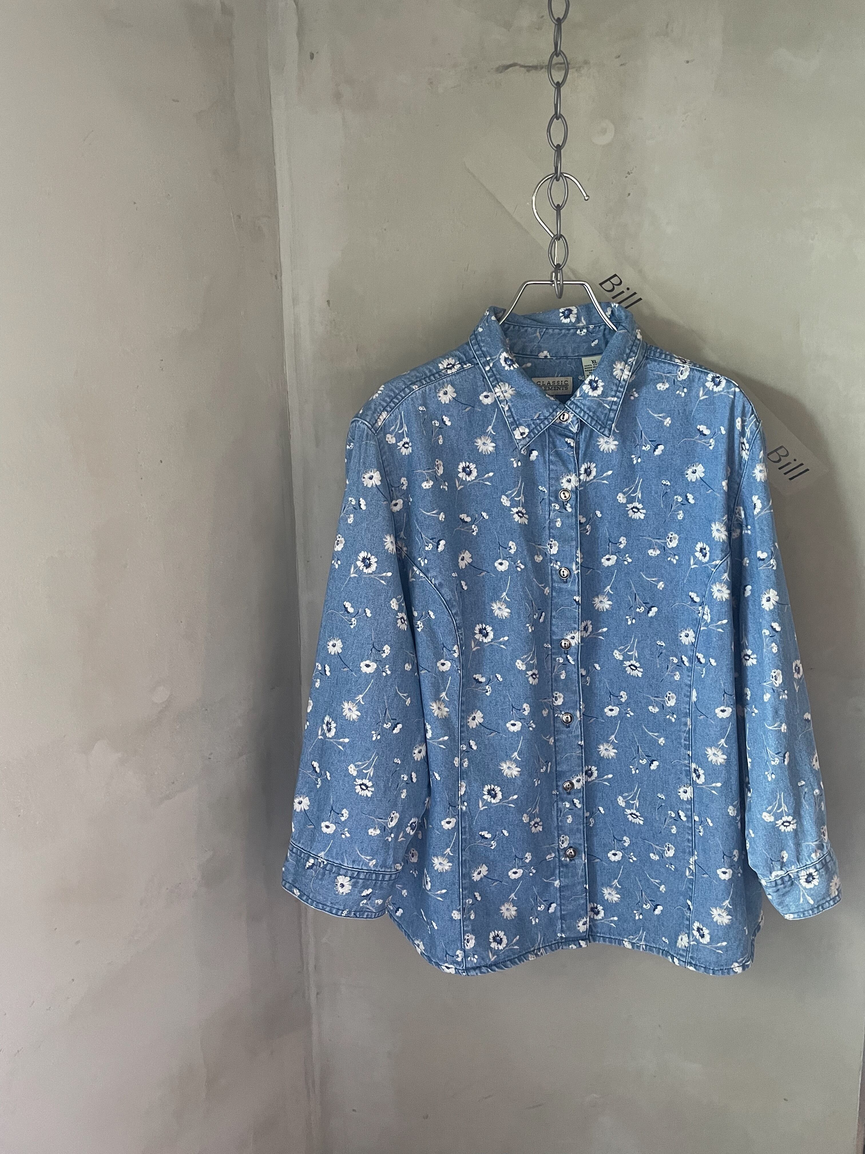 ホワイトフラワーのプリントがとても可愛いシャツジャケットです。