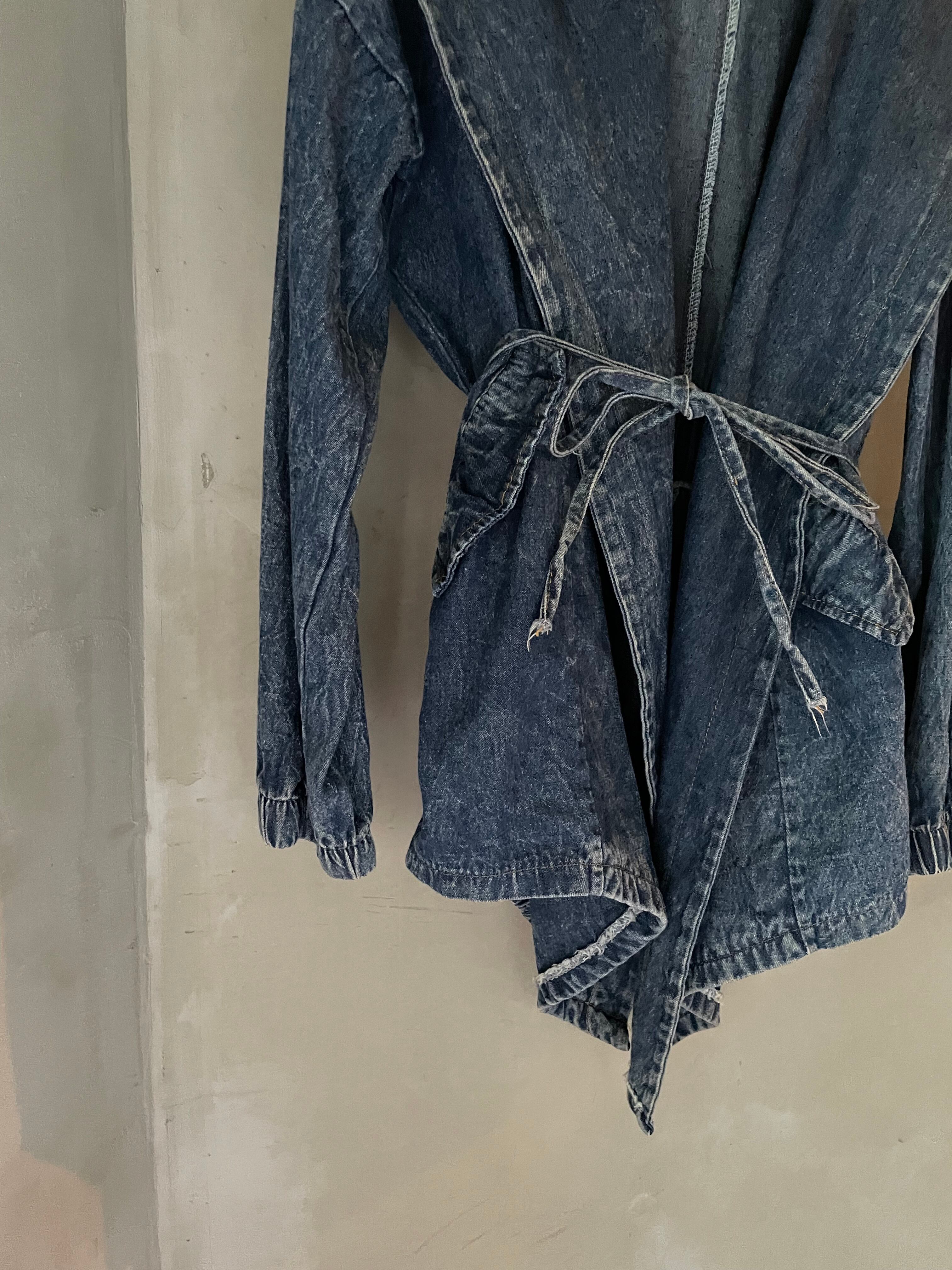 ウェストのリボンがとても可愛いデニムジャケットです。