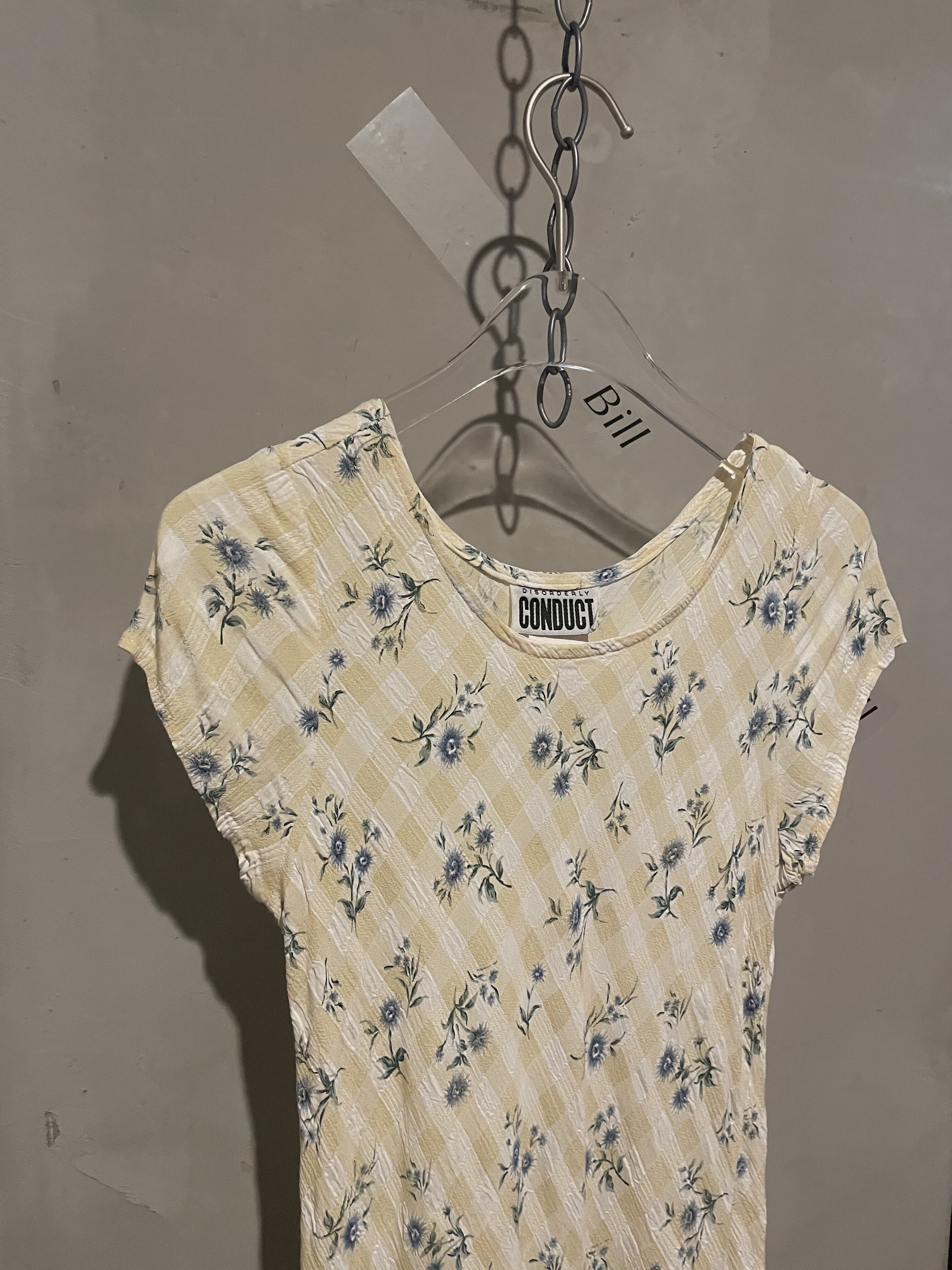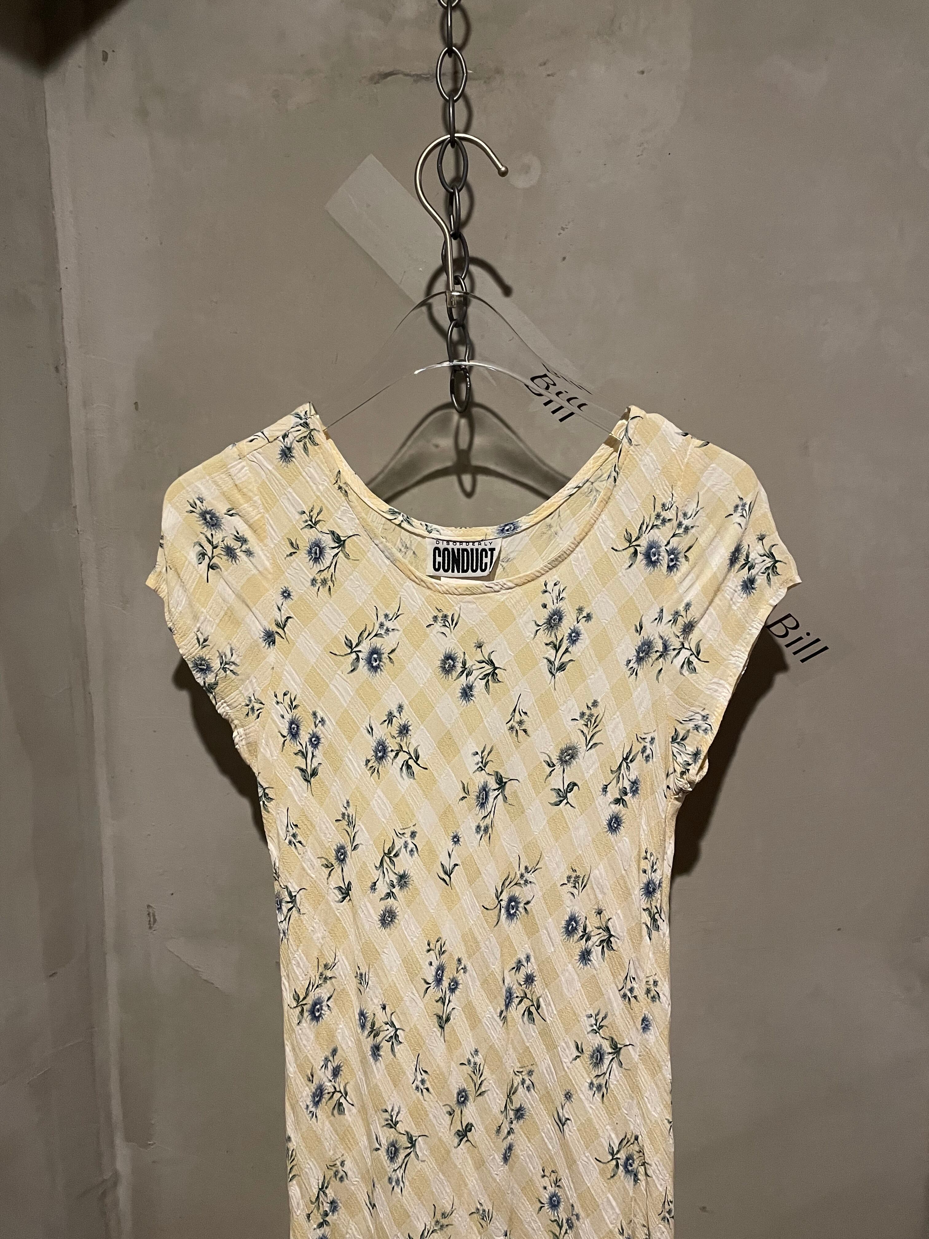 ブルーのサンフラワーとクリームイエローにホワイトのチェック柄がとても可愛いワンピースです。