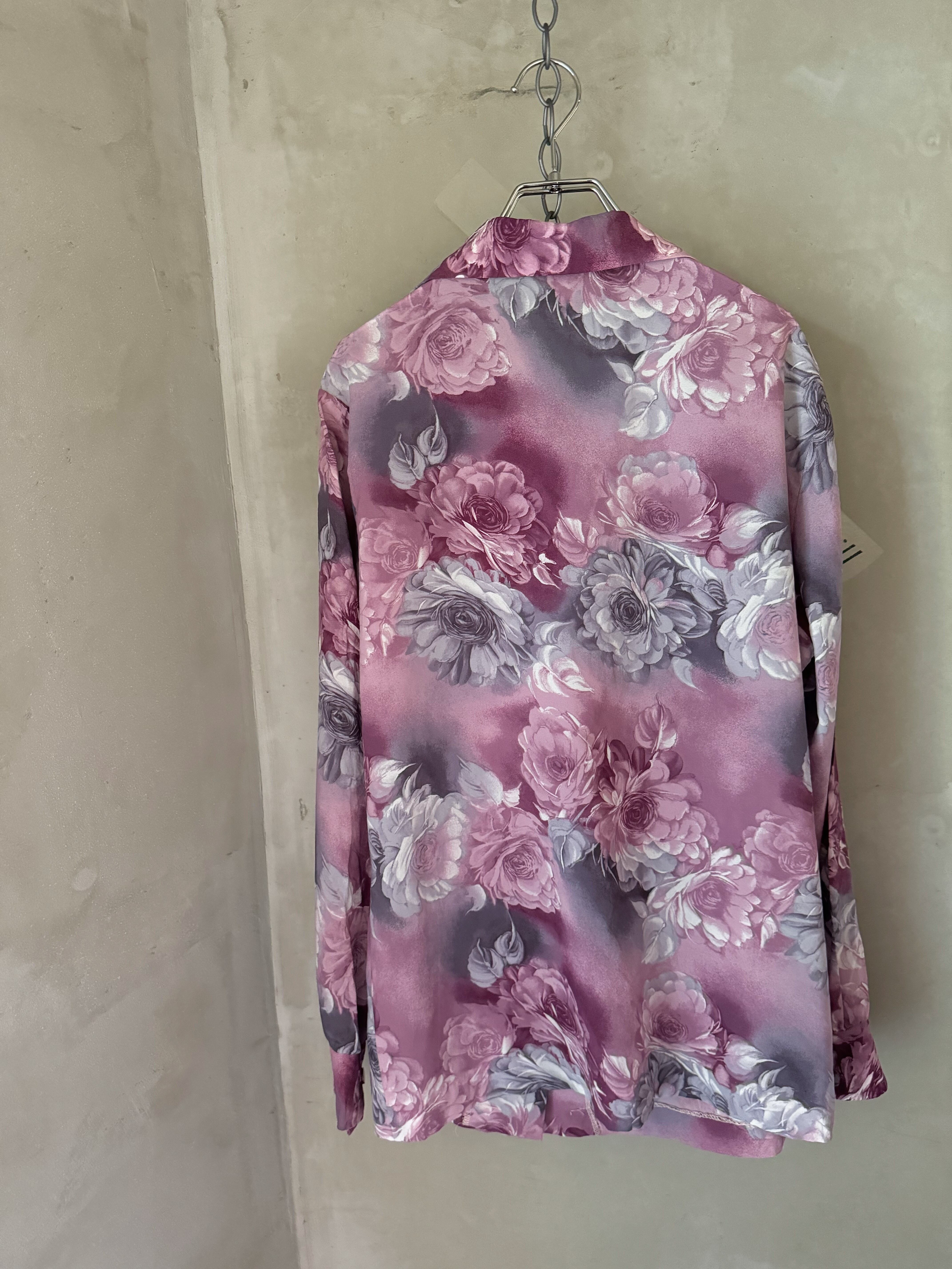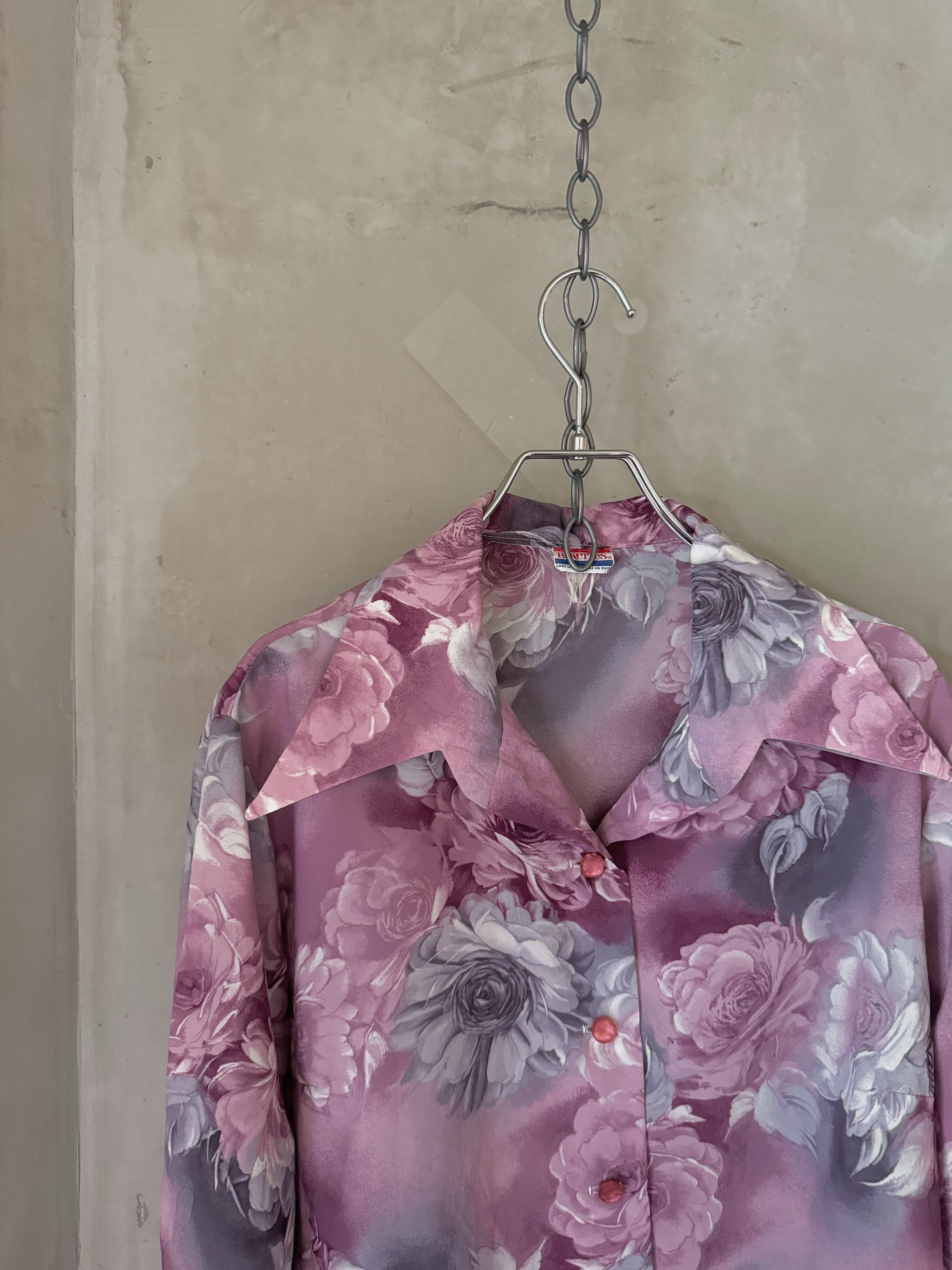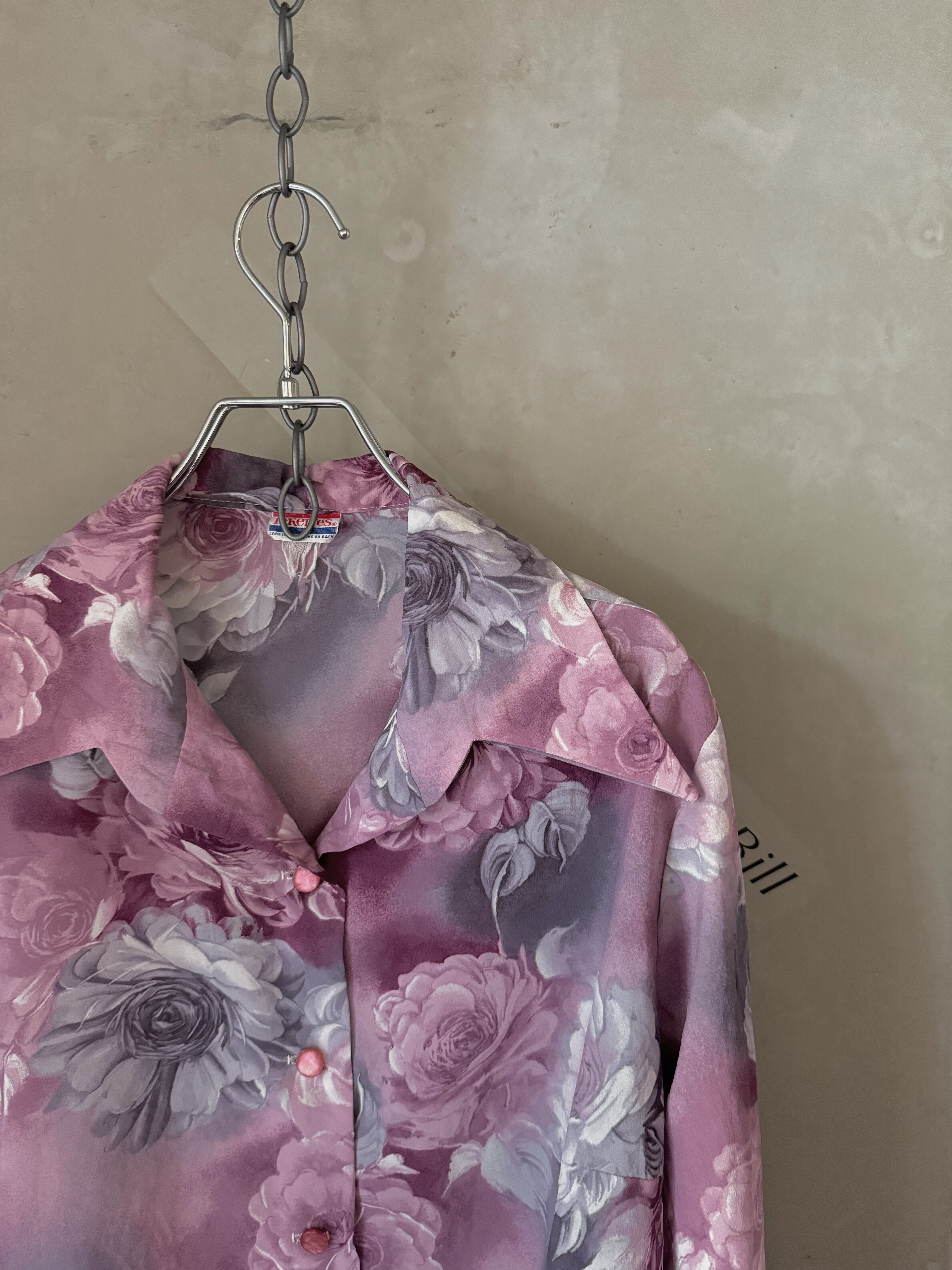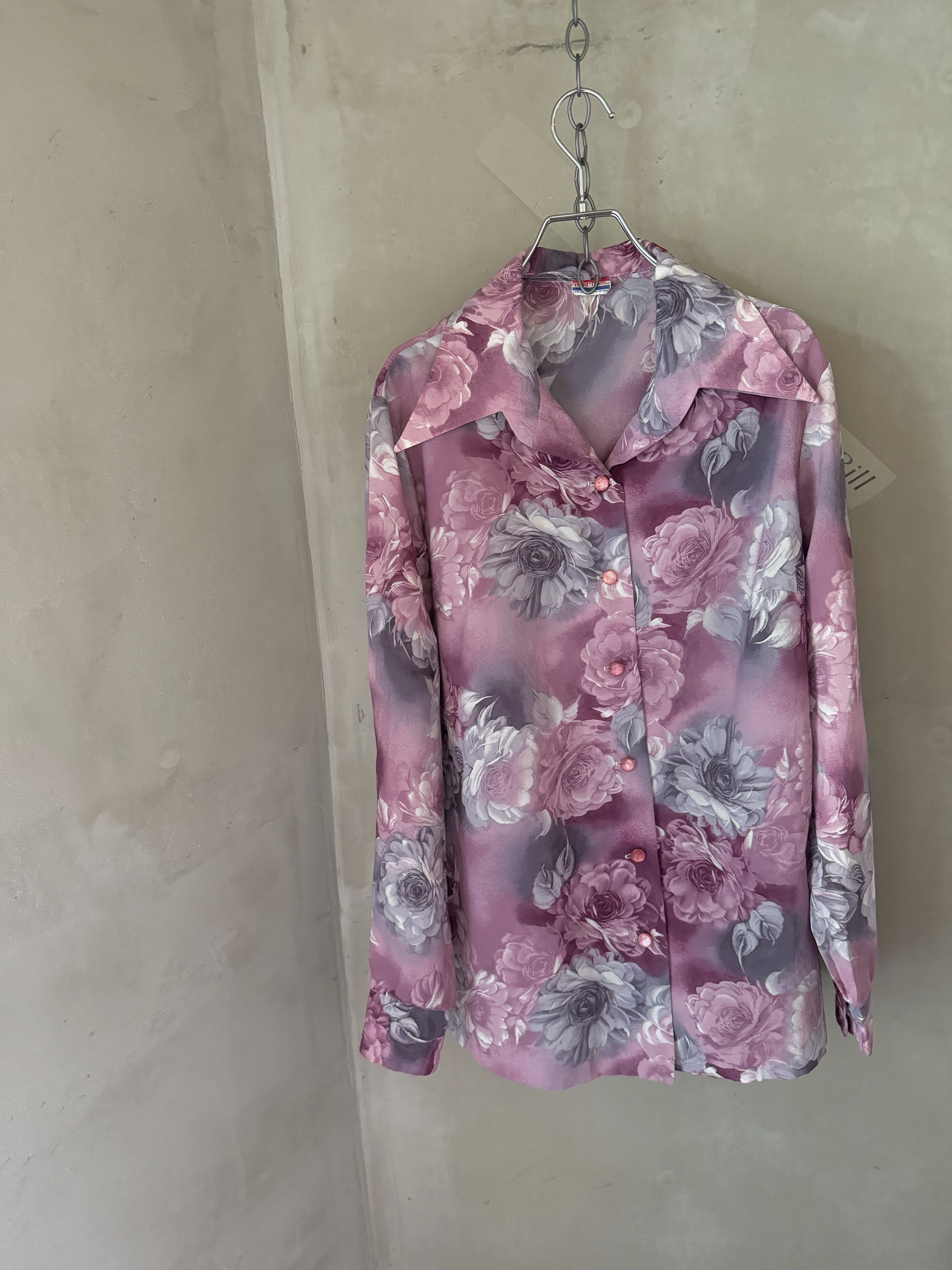 made in USA crystal button flower shirt(Bill vintage)