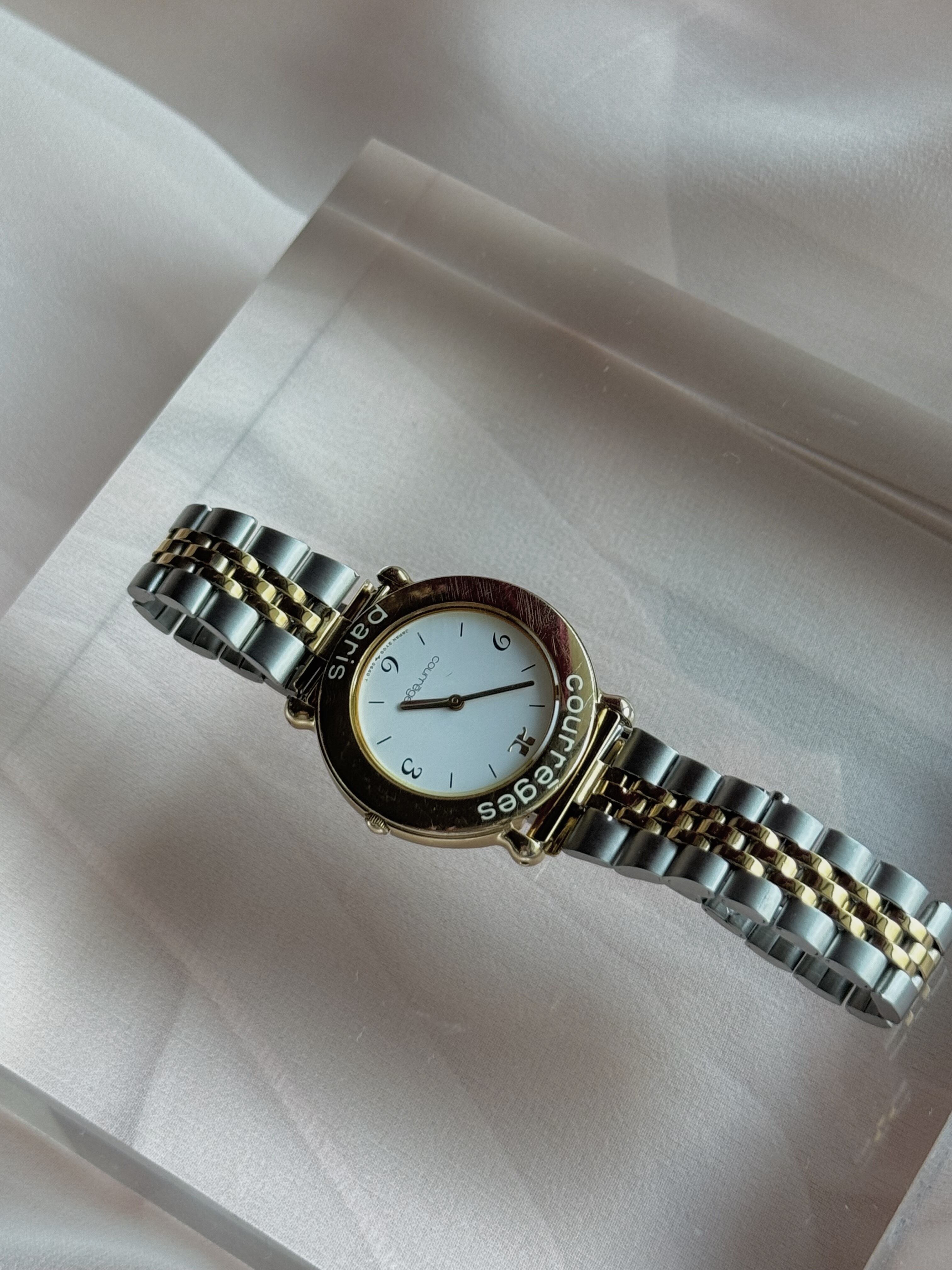 Courrèges silver × gold combi logo wrist watch