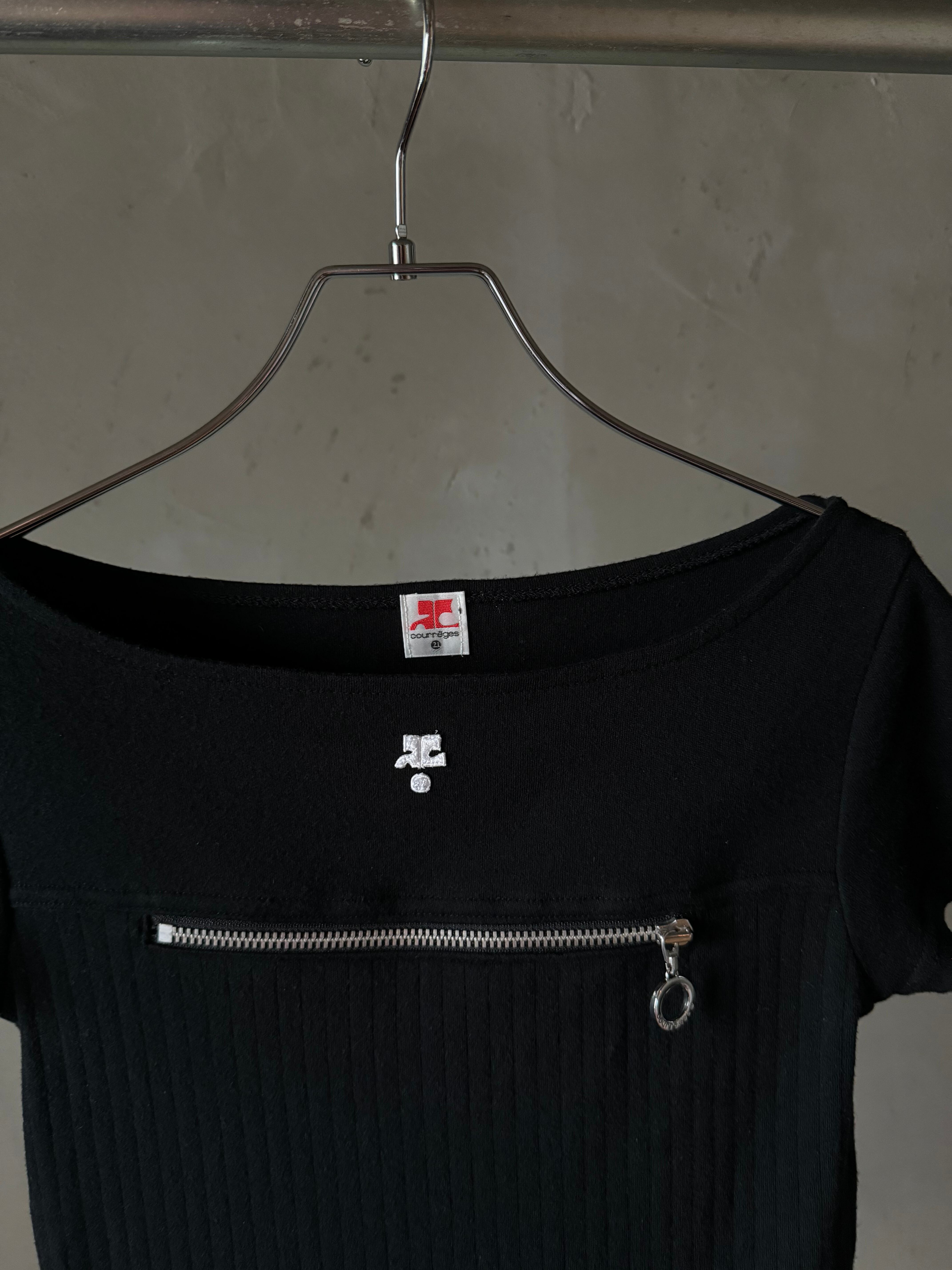 Courrèges silver zipper logo black T