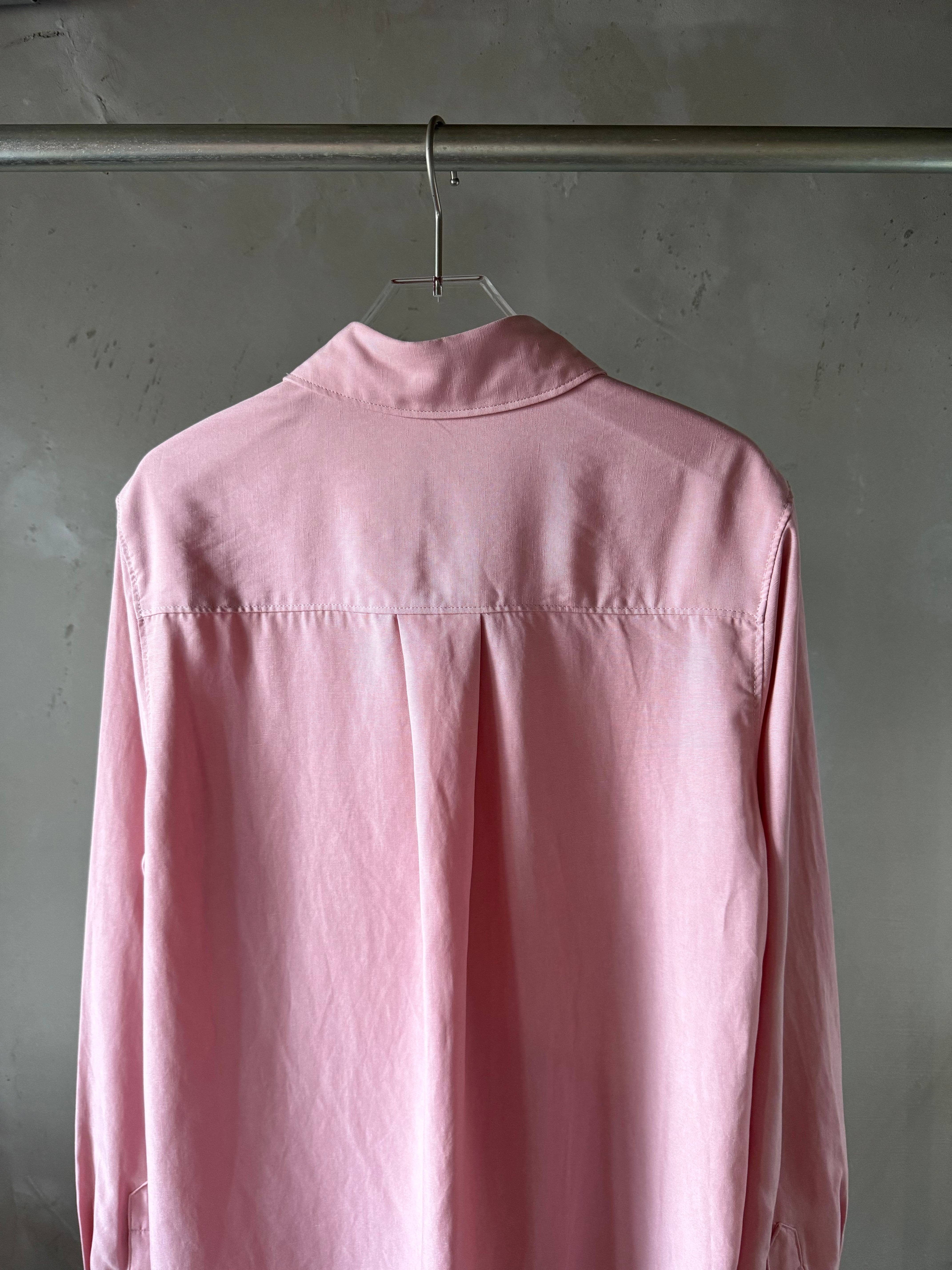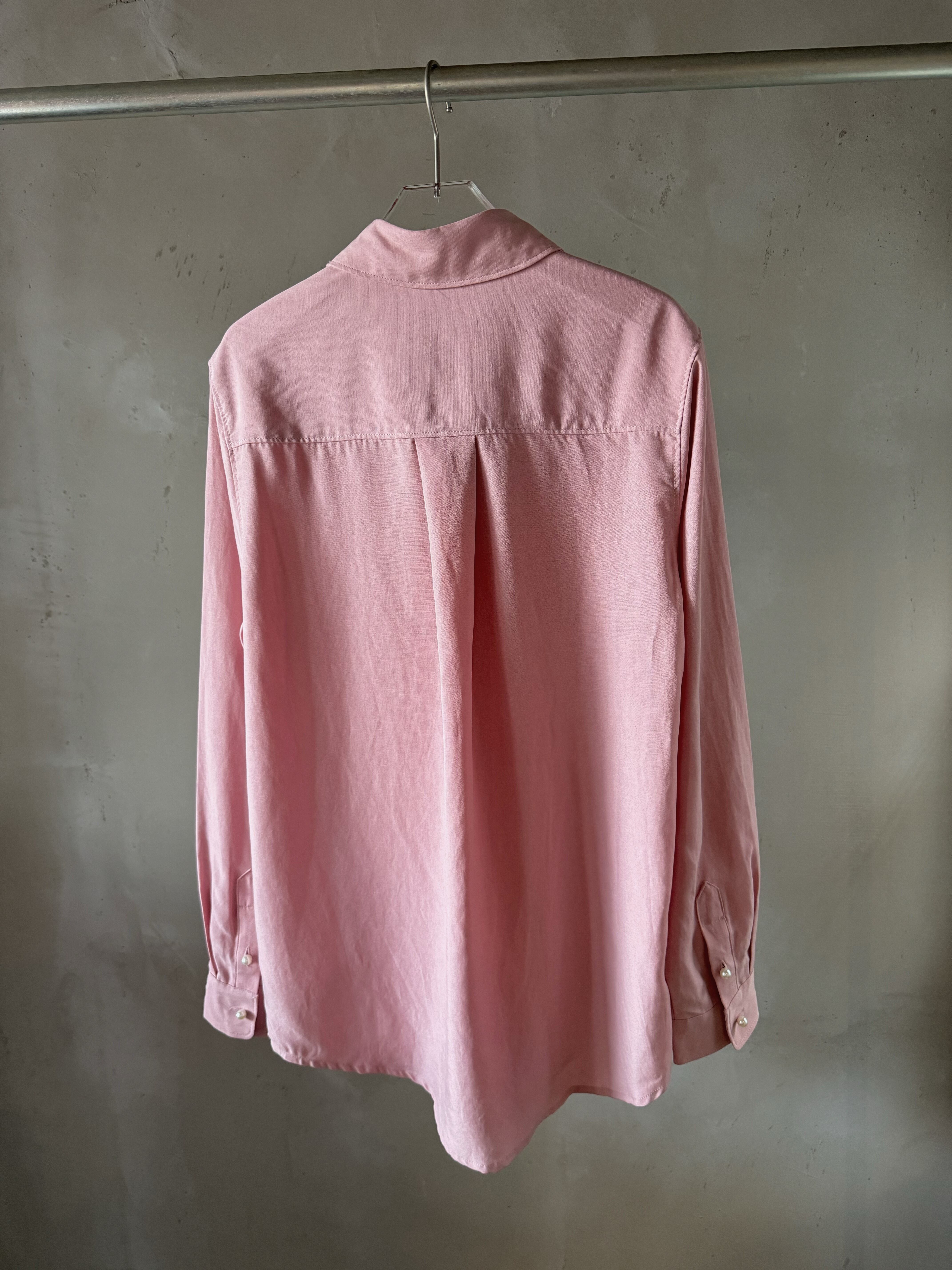 レギュラーフィットのこのシャツは、柔らかな布帛生地で仕立てられ、前立てには光沢のあるパールボタンがポイントに。華やかなで洗練された輝きを放つマストアイテム!