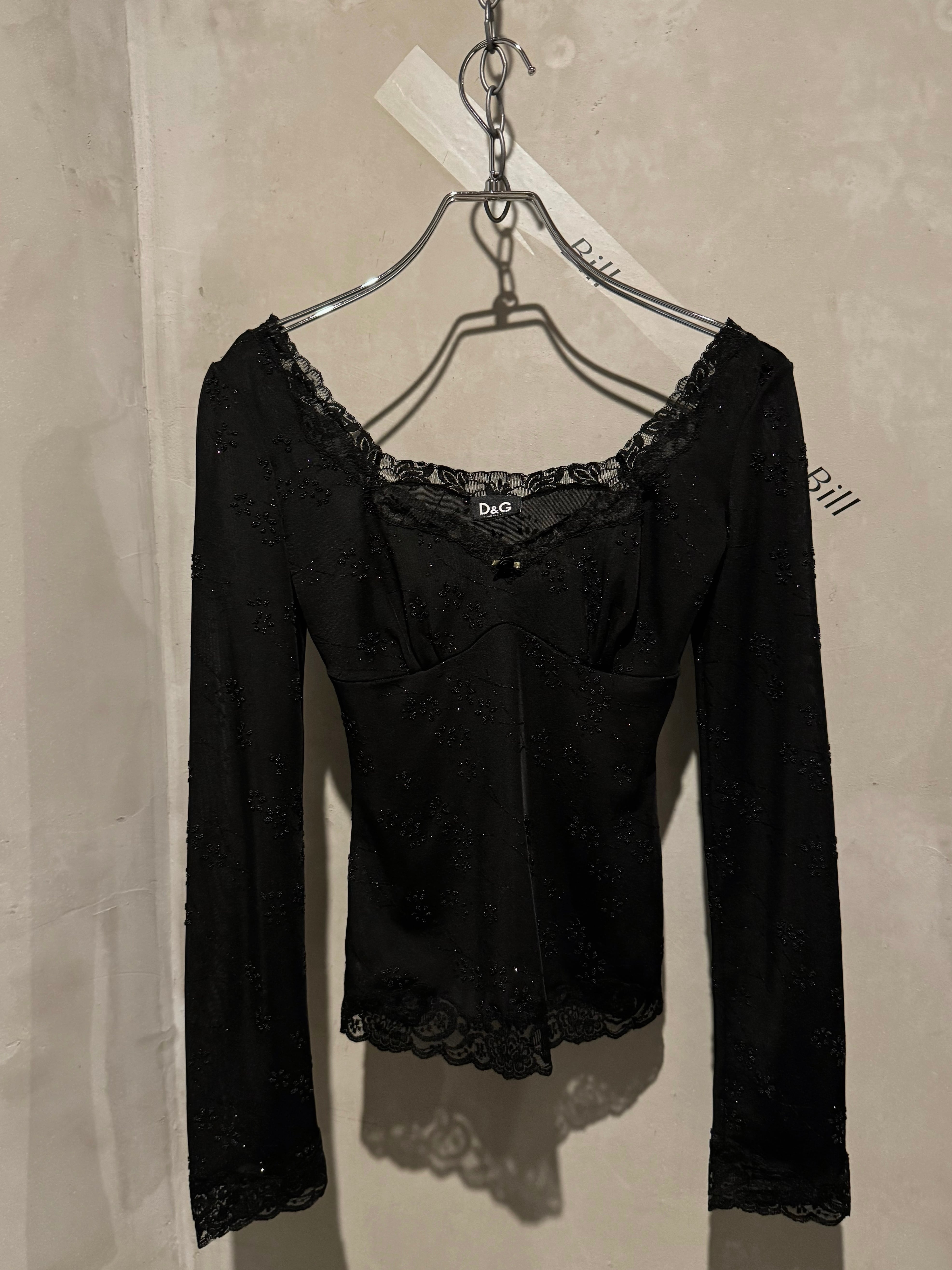 胸元のローズとキラキラビーズの刺繍がとっても可愛いドルガバのブラックトップスです♪
