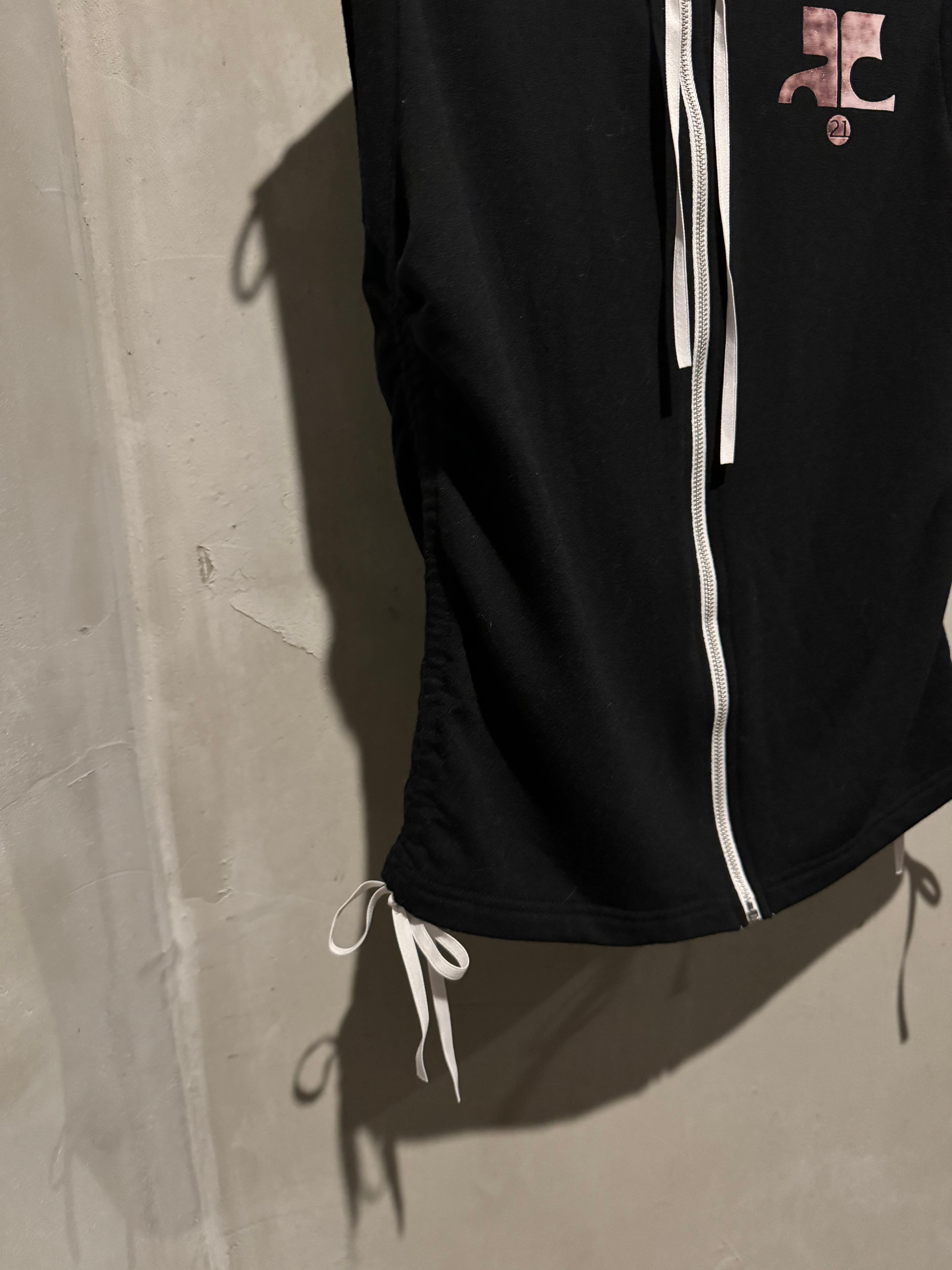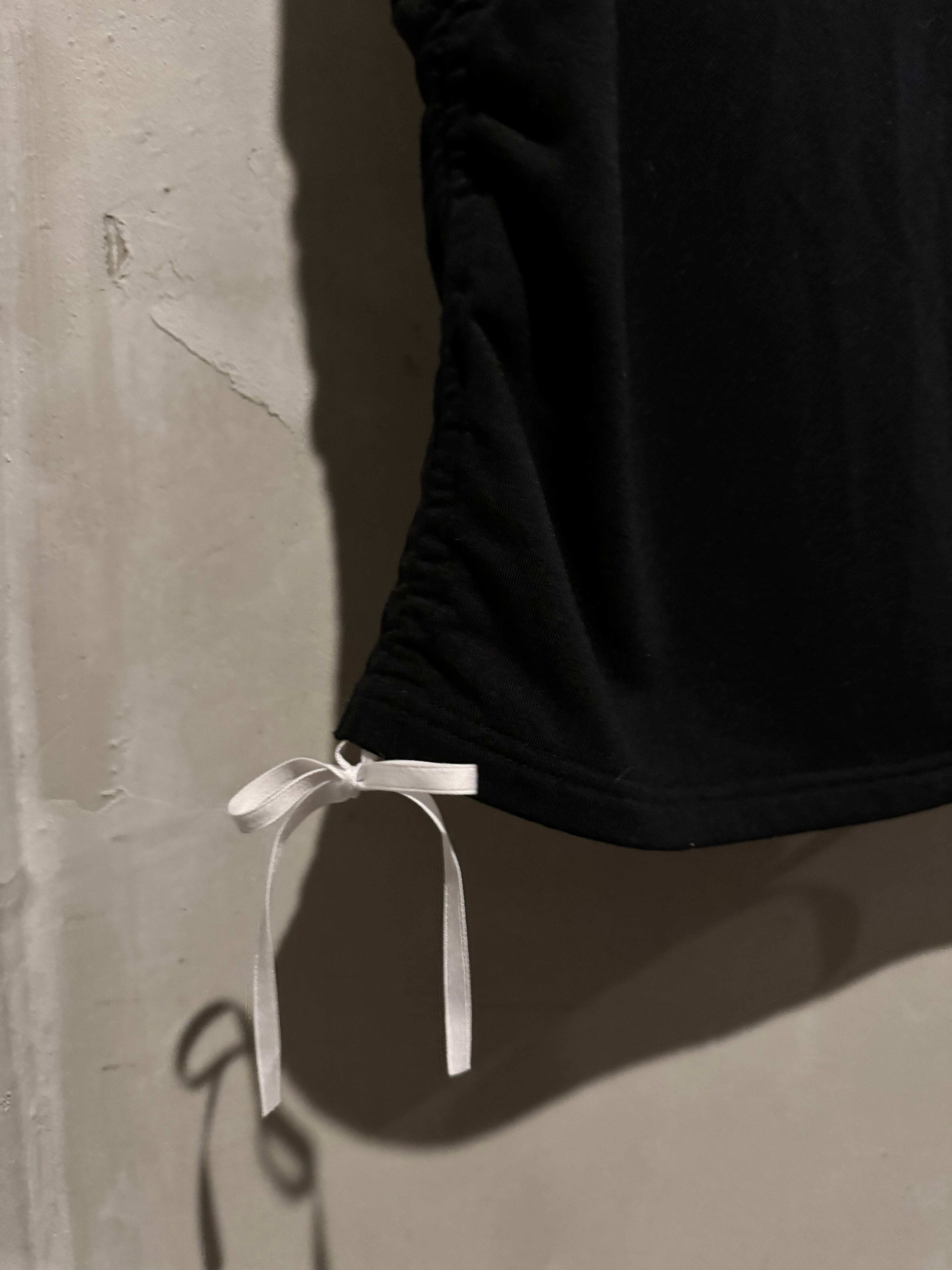 サイドのシャーリングとキラキラのグラデーションロゴがとても可愛いブラックベストです♪